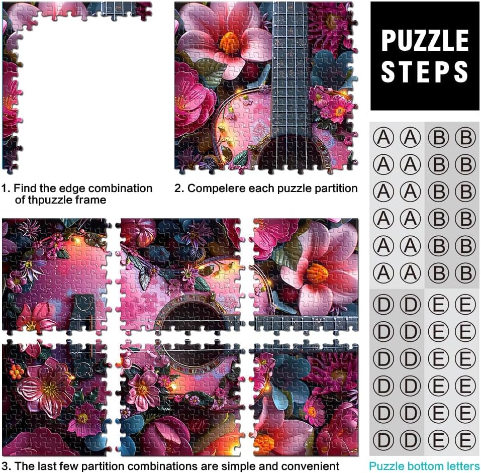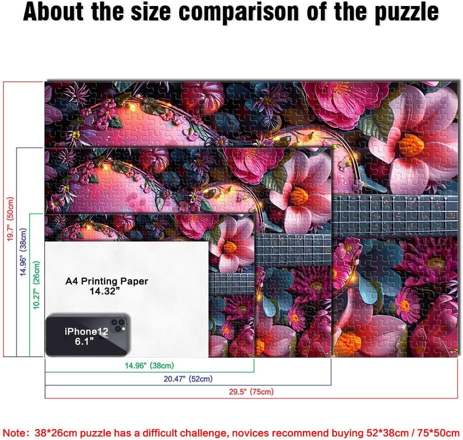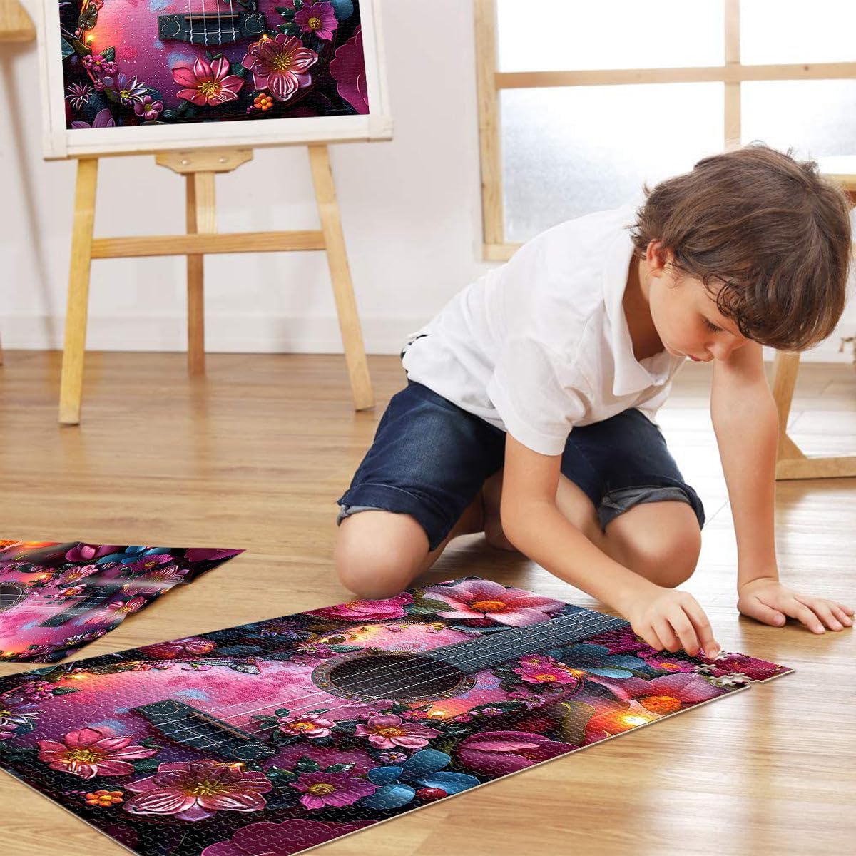 Puzzle per adulti 2000 pezzi Ukulele floreale Fatto di cartone per età 14+ Giocattolo educativo antistress Regalo di compleanno, regali, arte murale misurare:70x100cm