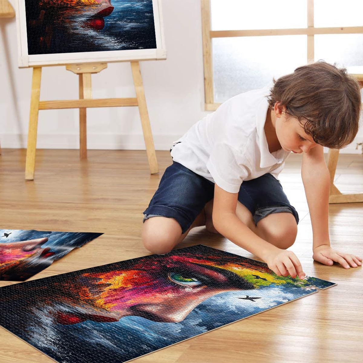 Puzzle per adulti da 1000 pezzi Donna con occhio paesaggistico Fatto di legno da 14 anni in su giochi divertenti per famiglie Regali difficili per donne e uomini misurare:50x75cm