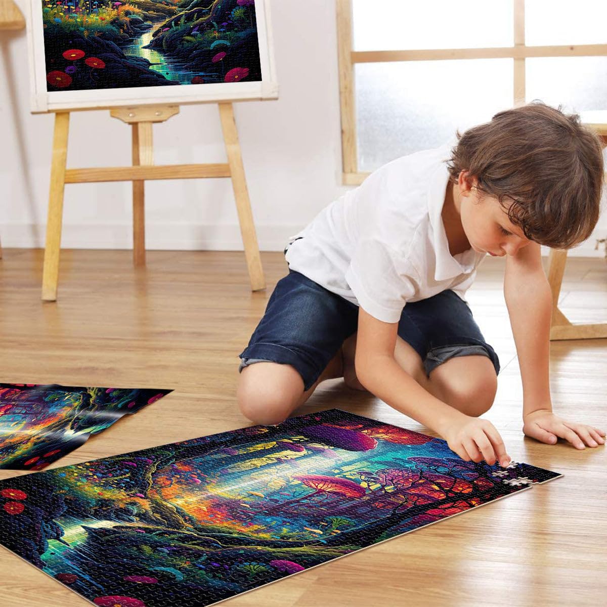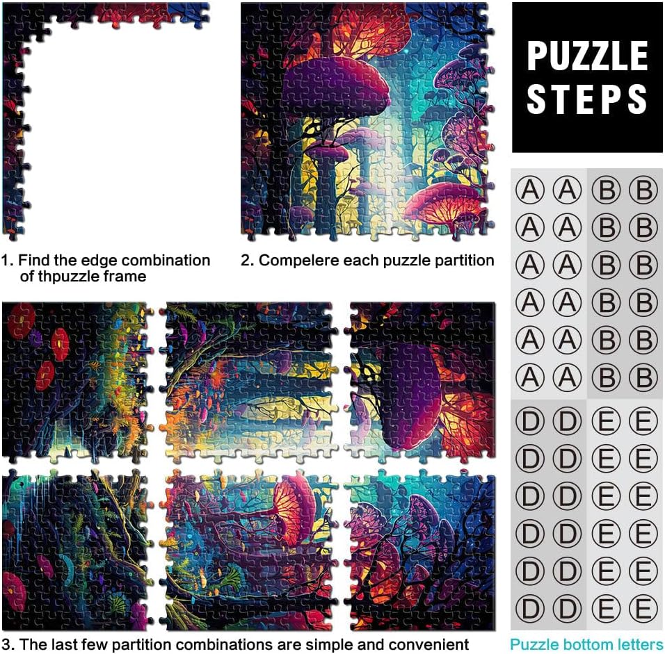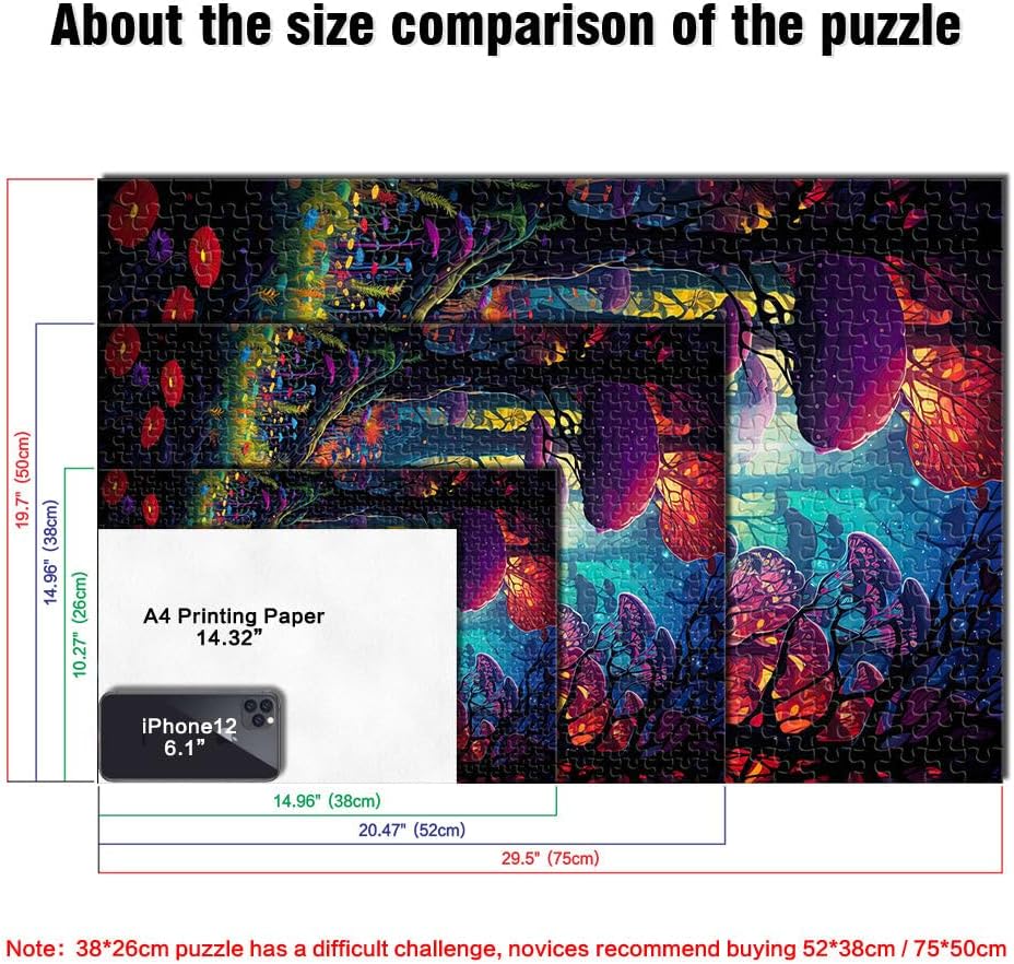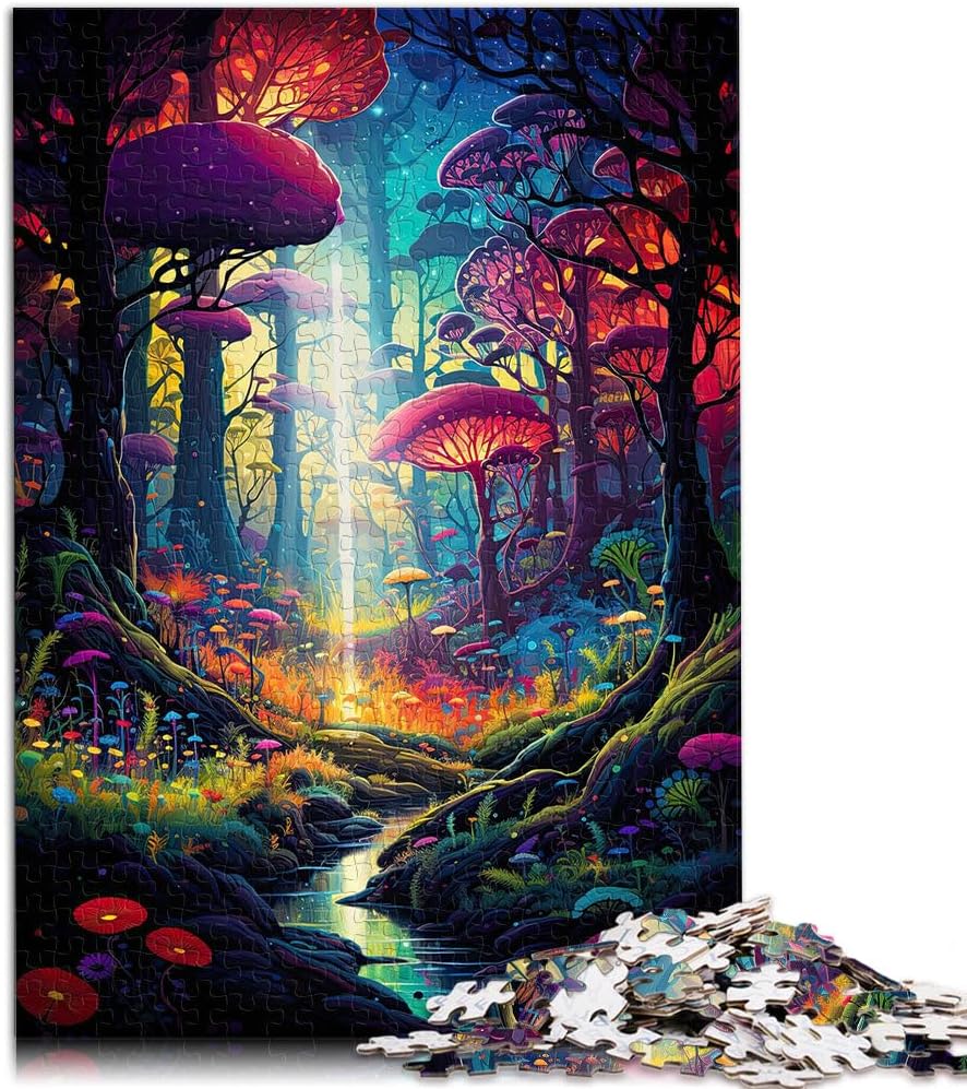 Puzzle per adulti da 1000 pezzi Foresta psichedelica Fatto di legno per e da 14 anni in su per il gioco educativo sfida giocattolo Regalo per i compleanni misurare:50x75cm