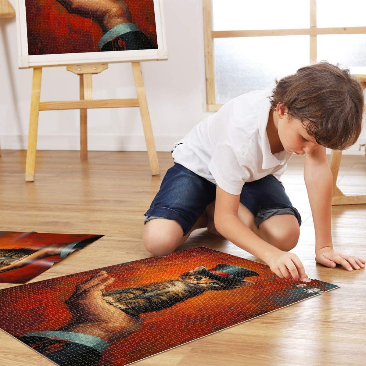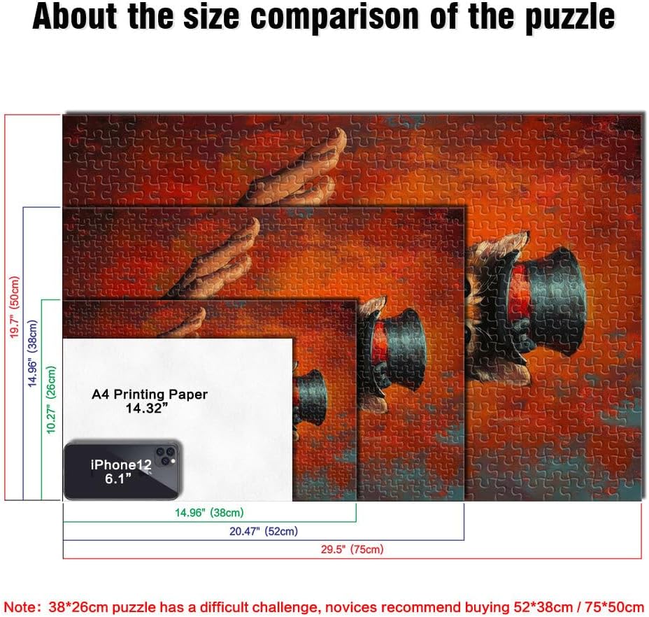Puzzle per adulti da 1000 pezzi Gattino con cappello a cilindro Fatto di legno per e da 14 anni in su Gara di velocità a mano Regali di compleanno di Natale misurare:50x75cm