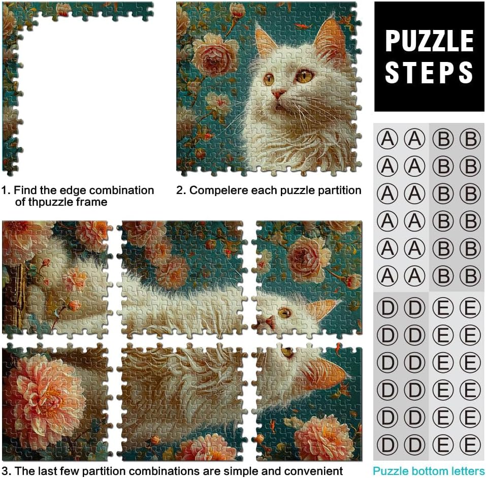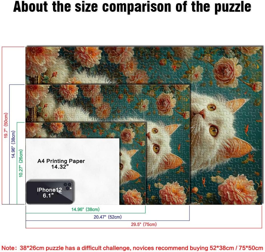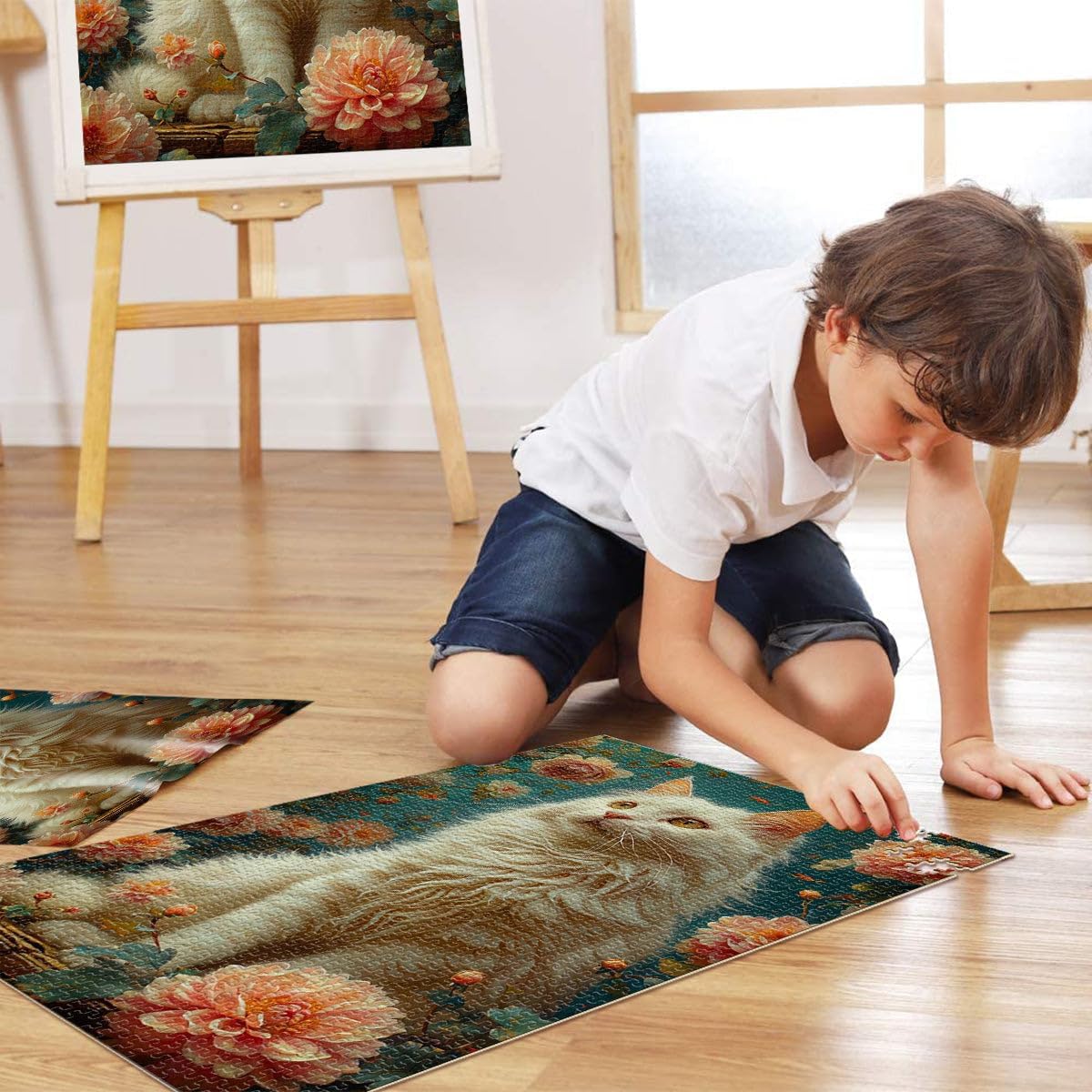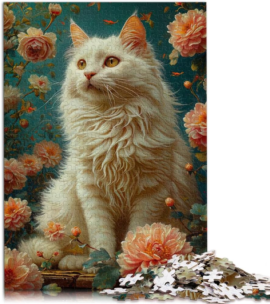 Puzzle per adulti da 1000 pezzi gatto e fiore Fatto di legno per età 14+ Vacanza a casa: uccidere il tempo Idee regalo misurare:50x75cm