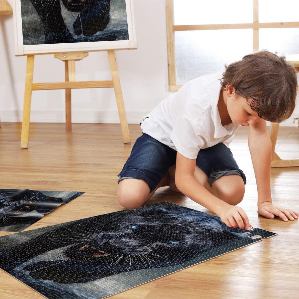 Puzzle per adulti da 1000 pezzi occhio potente della pantera nera Fatto di legno per 14+ Puzzle per Gioco educativo per compleanno e Natale misurare:50x75cm
