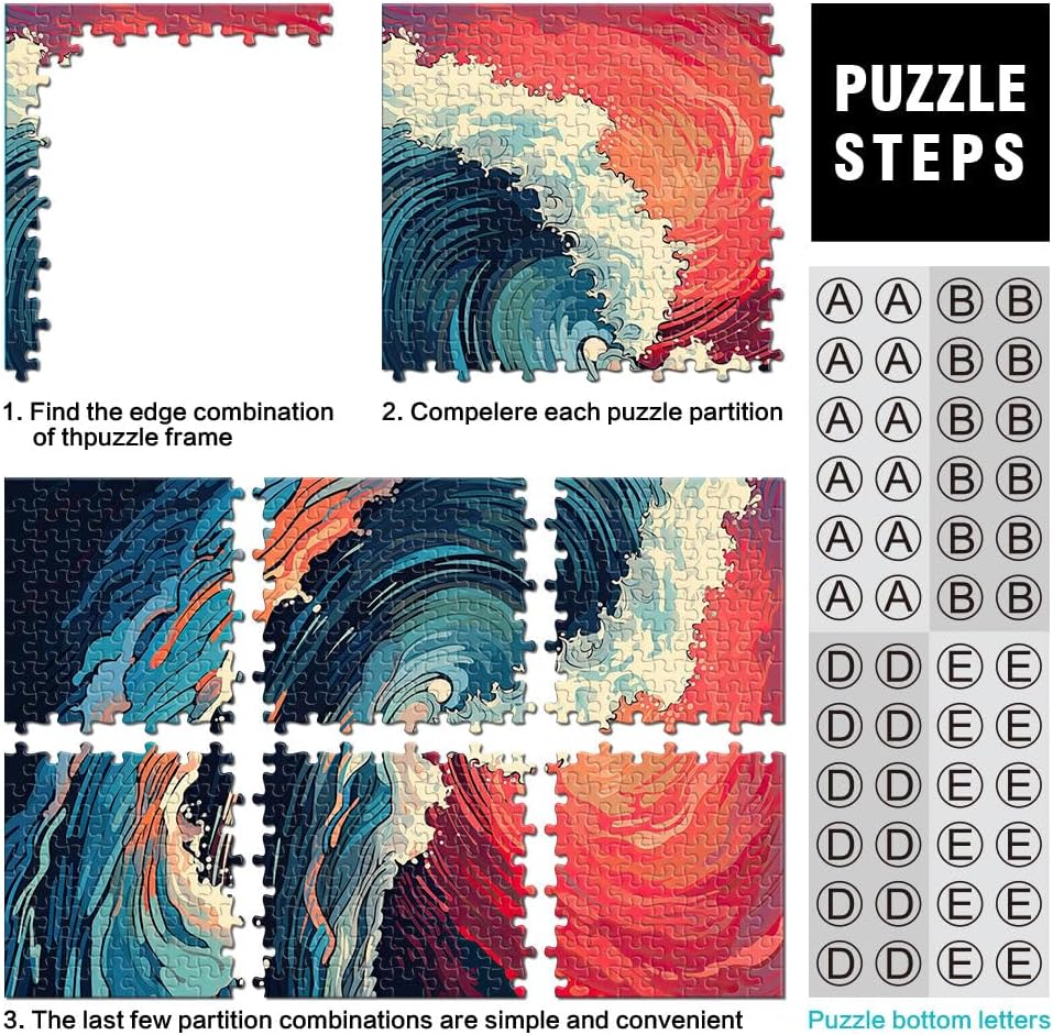 Puzzle per adulti da 1000 pezzi Onde dell'oceano Pop Art Fatto di legno per età pari o superiore a 14 anni Attività per famiglie regalo di compleanno misurare:50x75cm