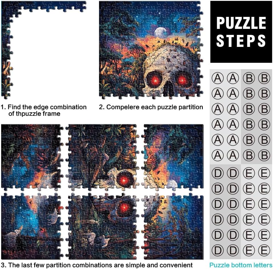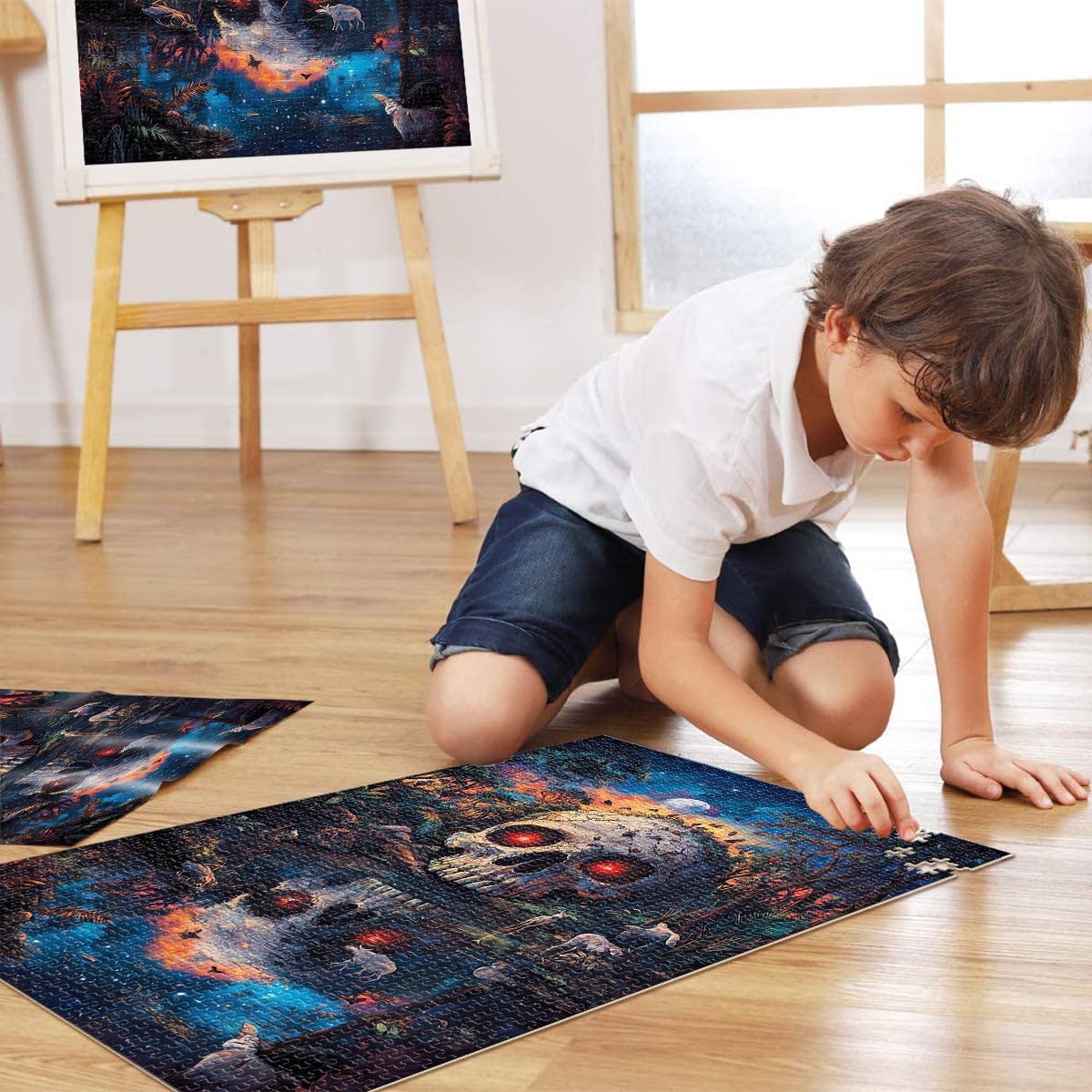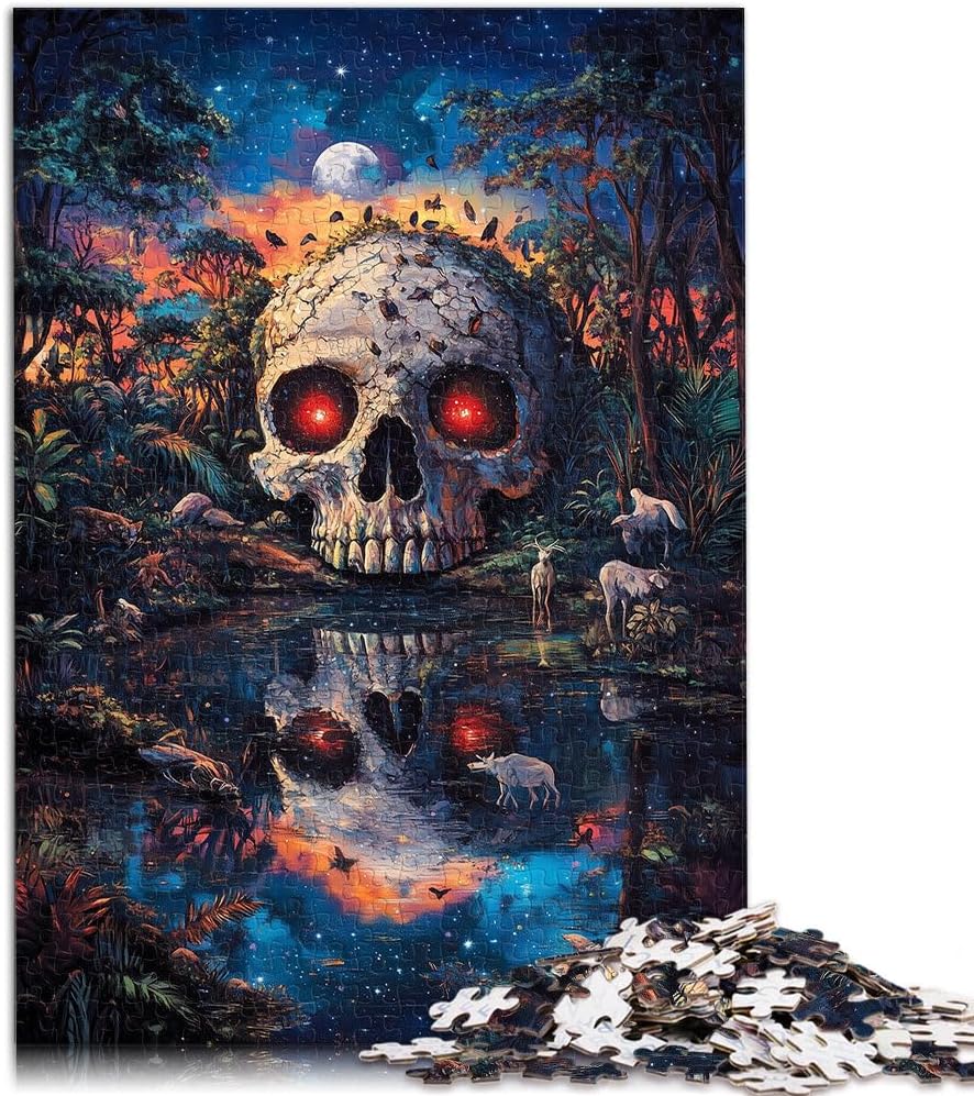 Puzzle per adulti da 1000 pezzi Teschio con occhi luminosi Fatto di legno per e da 14 anni in su Giochi educativi per adulti e adolescenti Regalo di opere d'arte misurare:50x75cm