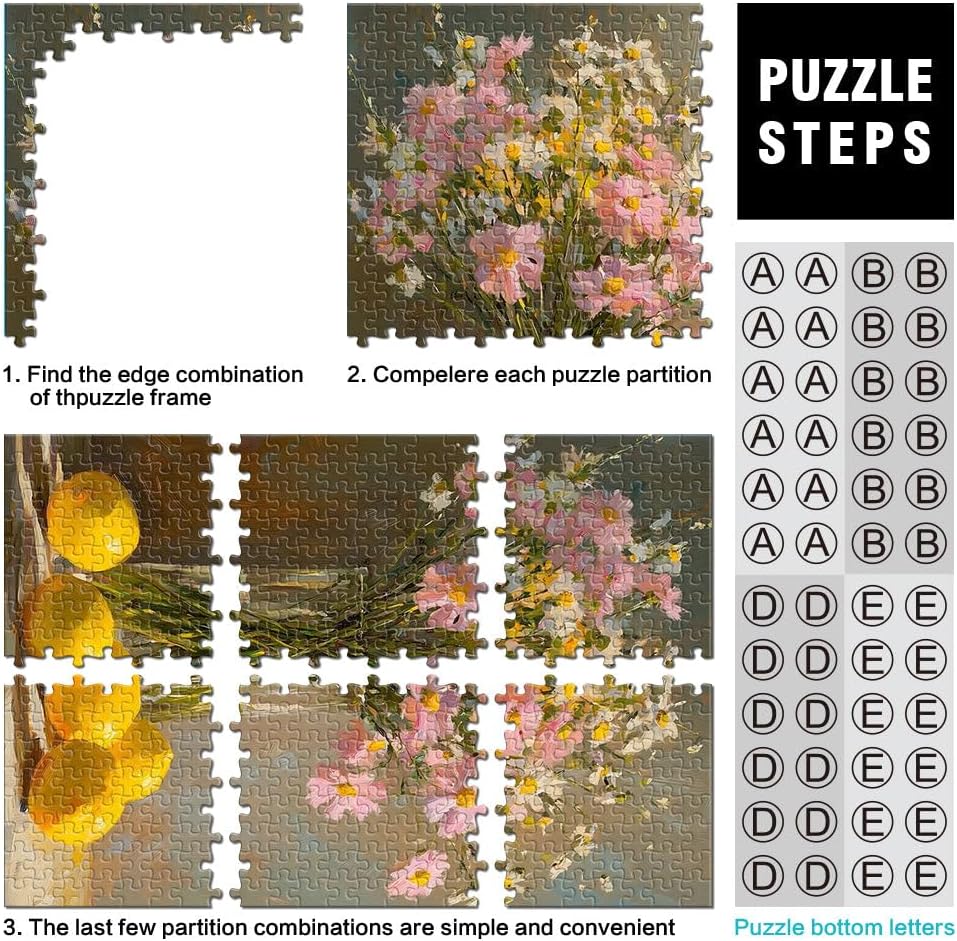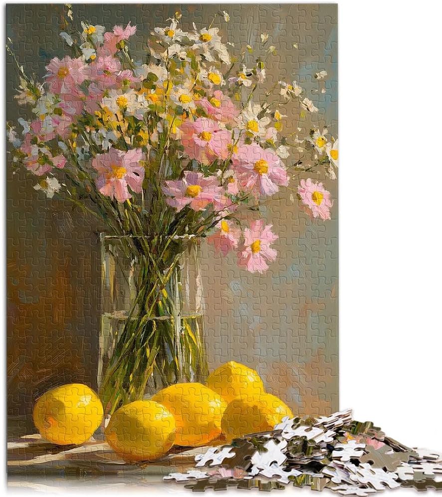 Puzzle per adulti da 2000 pezzi Natura morta floreale con limoni Fatto di cartone per età pari o superiore a 14 anni Difficile e impegnativo Decorazioni e regali unici per la casa misurare:70x100cm