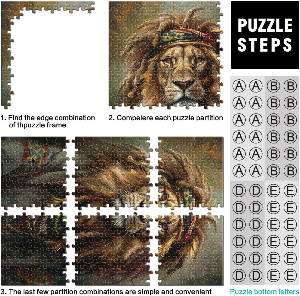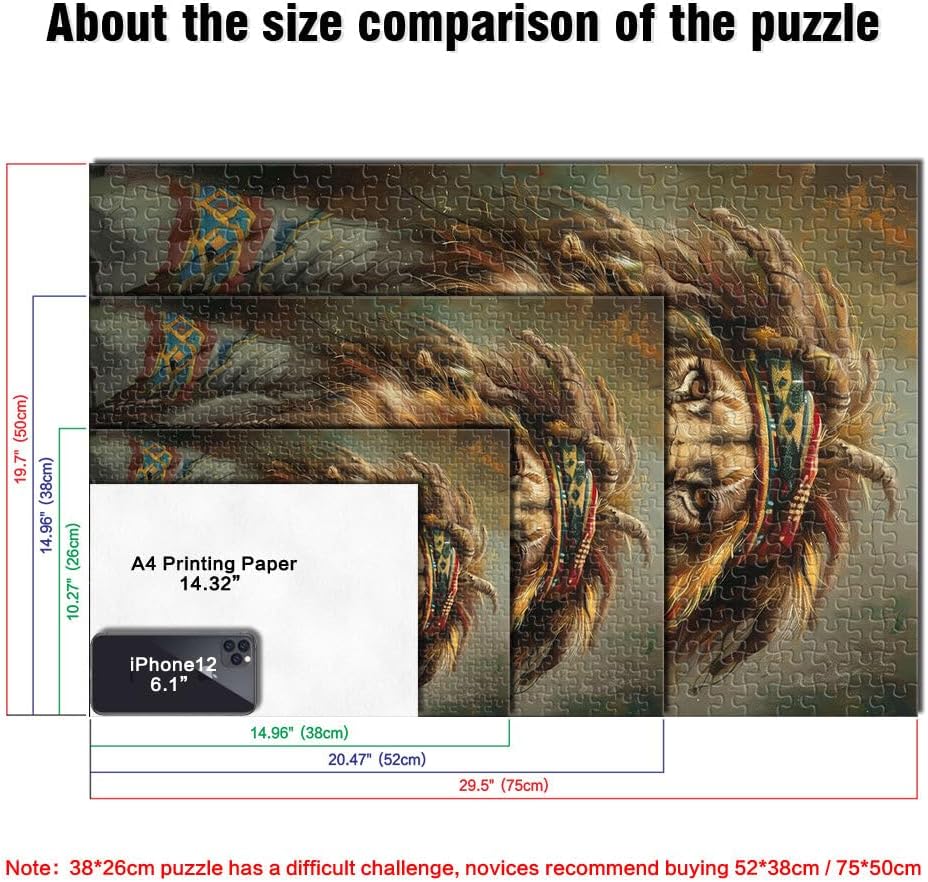 Puzzle per adulti da 2000 pezzi Reggae giamaicano Rasta Lion Fatto di cartone per età pari o superiore a 14 anni Decorazione perfetta Regalo di opere d'arte misurare:70x100cm