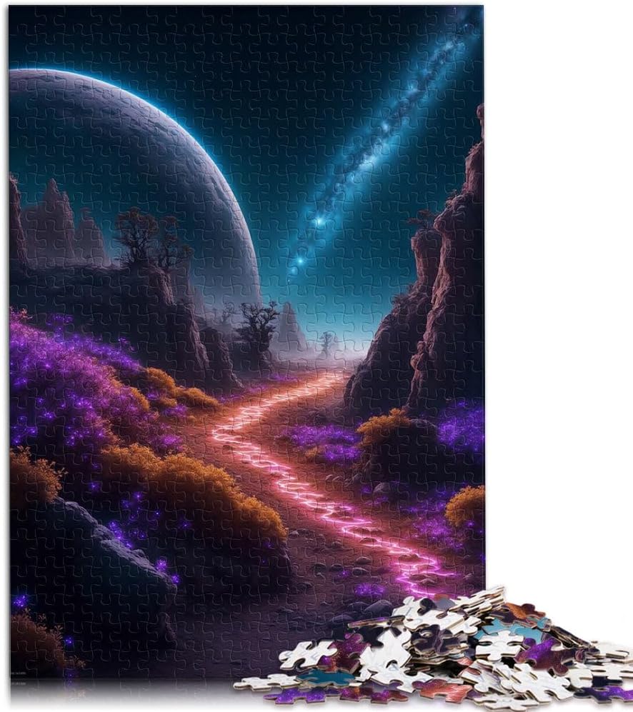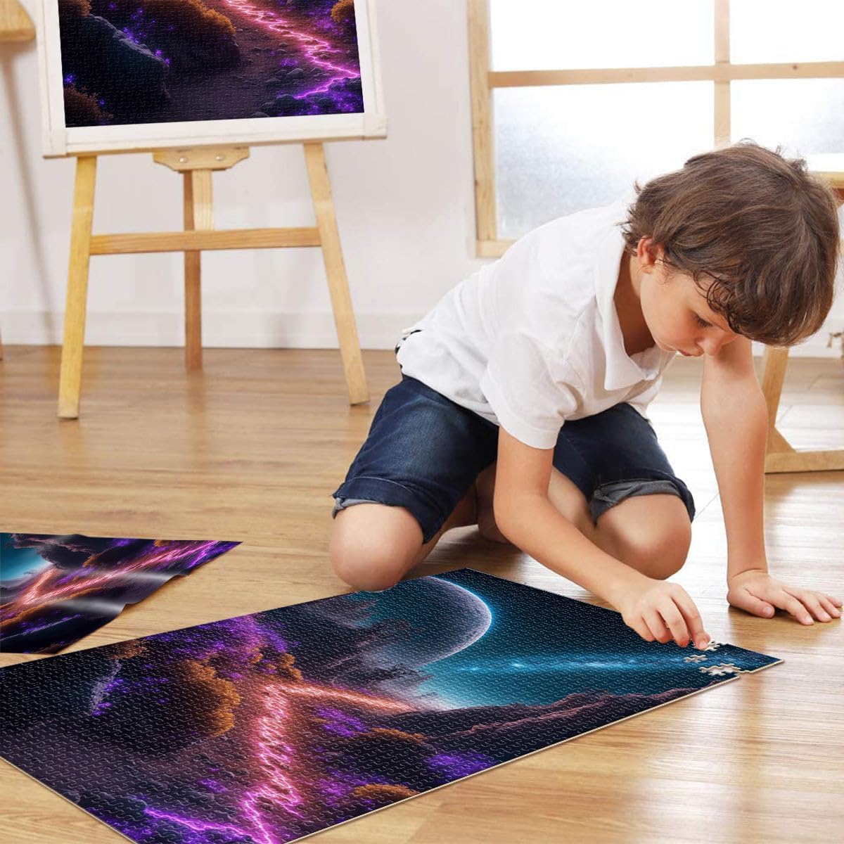 Puzzle per adulti e ragazzi 1000 pezzi Scia al neon nello spazio Fatto di legno Adatto a persone dai 14 anni in su Gioco antistress per famiglie, sfida difficile Idee regalo misurare:50x75cm