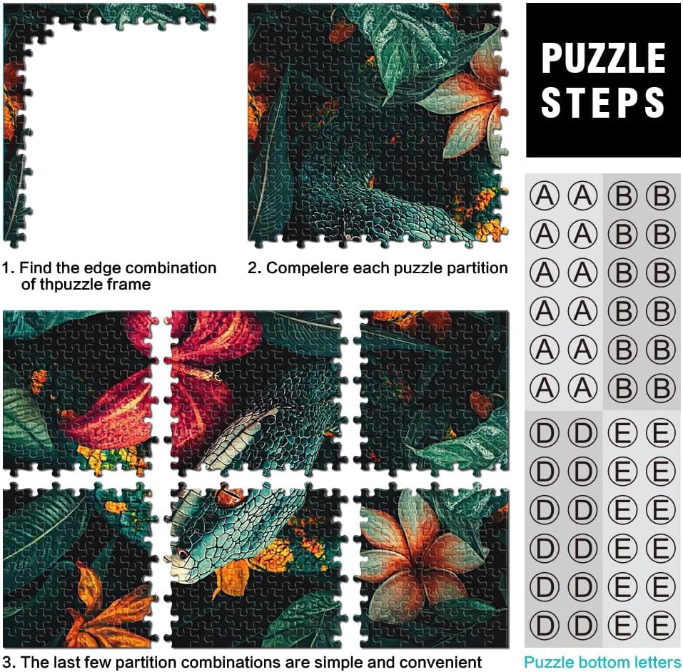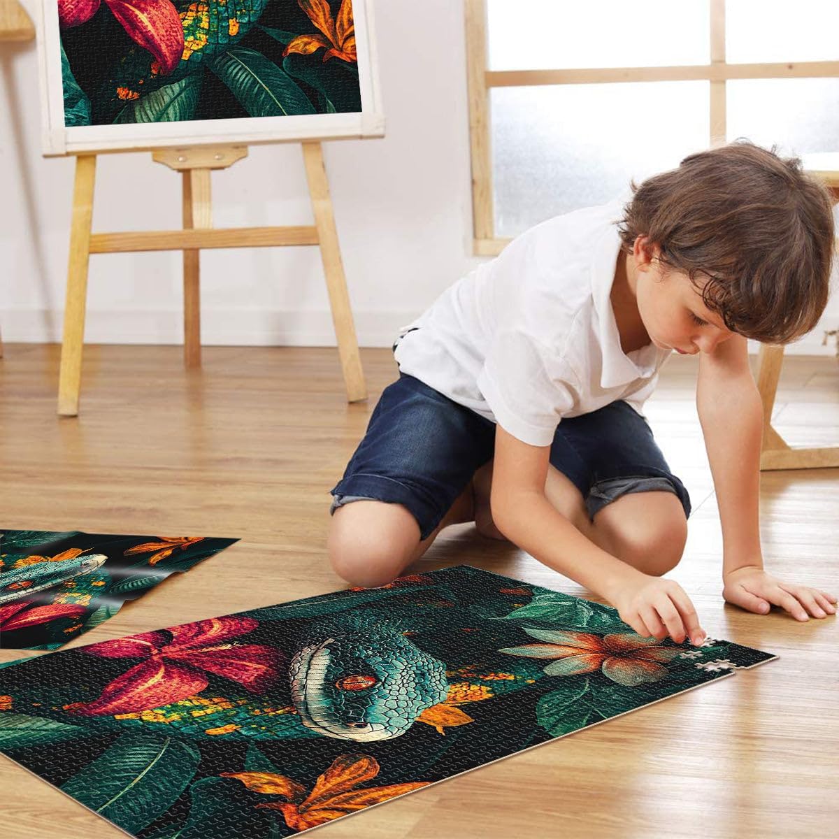 Puzzle per adulti e ragazzi 1000 pezzi Serpente nei fiori Fatto di legno Adatto a persone dai 14 anni in su Giocattoli per la decorazione della casa Regalo divertente misurare:50x75cm