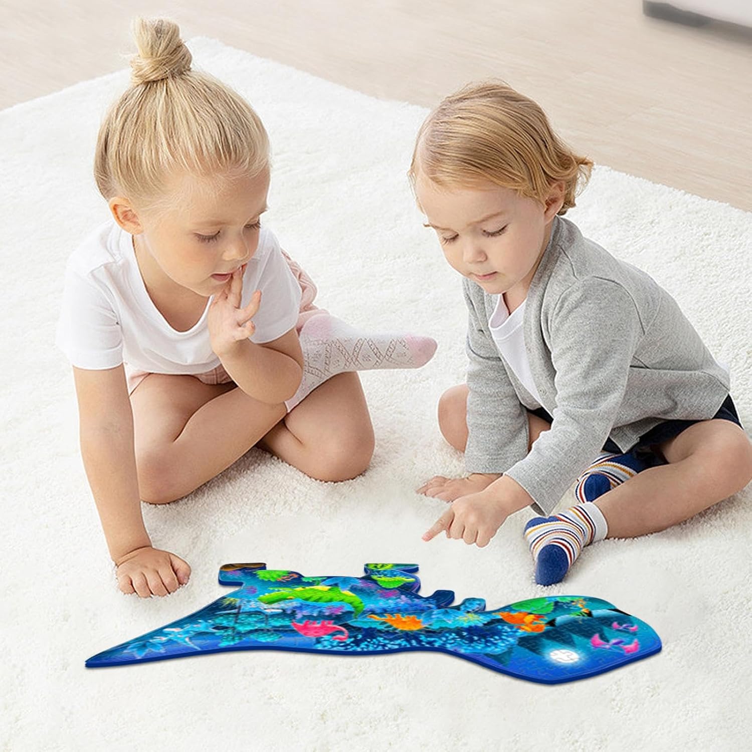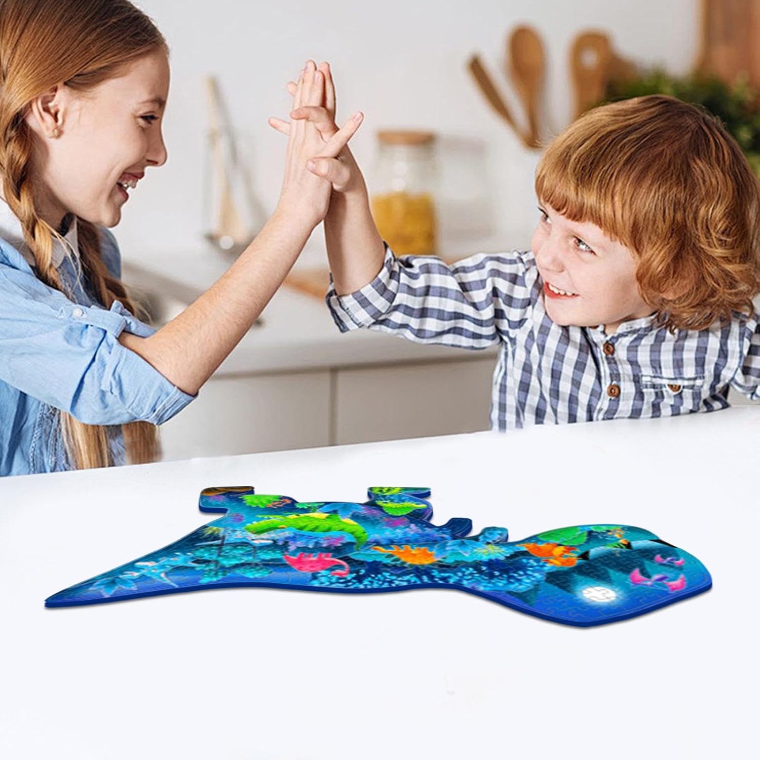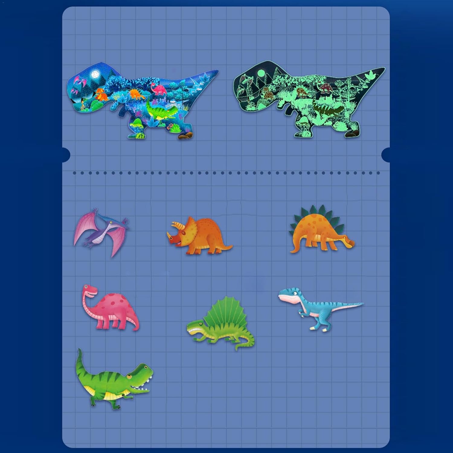 Meraviglia luminosa: i nostri puzzle di dinosauri prendono vita di notte con una lucentezza affascinante che ti lascerà a bocca aperta. Il fosforo immagazzina l'energia luminosa sotto l'irradiazione della luce, apportando fantastici effetti visivi alla tua esperienza di risoluzione dei puzzle. Miglioramento delle abilità: il nostro puzzle sui dinosauri promuove la crescita cognitiva migliorando il pensiero logico e le capacità di risoluzione dei problemi. Esercita anche la coordinazione occhio-mano e l'immaginazione spaziale migliorando la pazienza e la concentrazione. Collaborazione genitore-figlio: il nostro puzzle di dinosauri non solo migliora l'interazione genitore-figlio, ma fornisce anche un senso condiviso di realizzazione mentre lo assemblano, rafforzando il legame tra loro. Materiale eccellente: i nostri puzzle di dinosauri offrono un'esperienza tattile eccellente con un processo di superficie unico. Il materiale di alta qualità e il cartone extra spesso e resistente sono facili da impugnare e privi di spine, garantendo un'avventura nella risoluzione dei puzzle. Regalo perfetto: ideale sia per ragazzi che per ragazze, questo puzzle con dinosauri è il regalo perfetto per suscitare gioia in qualsiasi festa, compleanno celebrazione di Natale dei bambini.