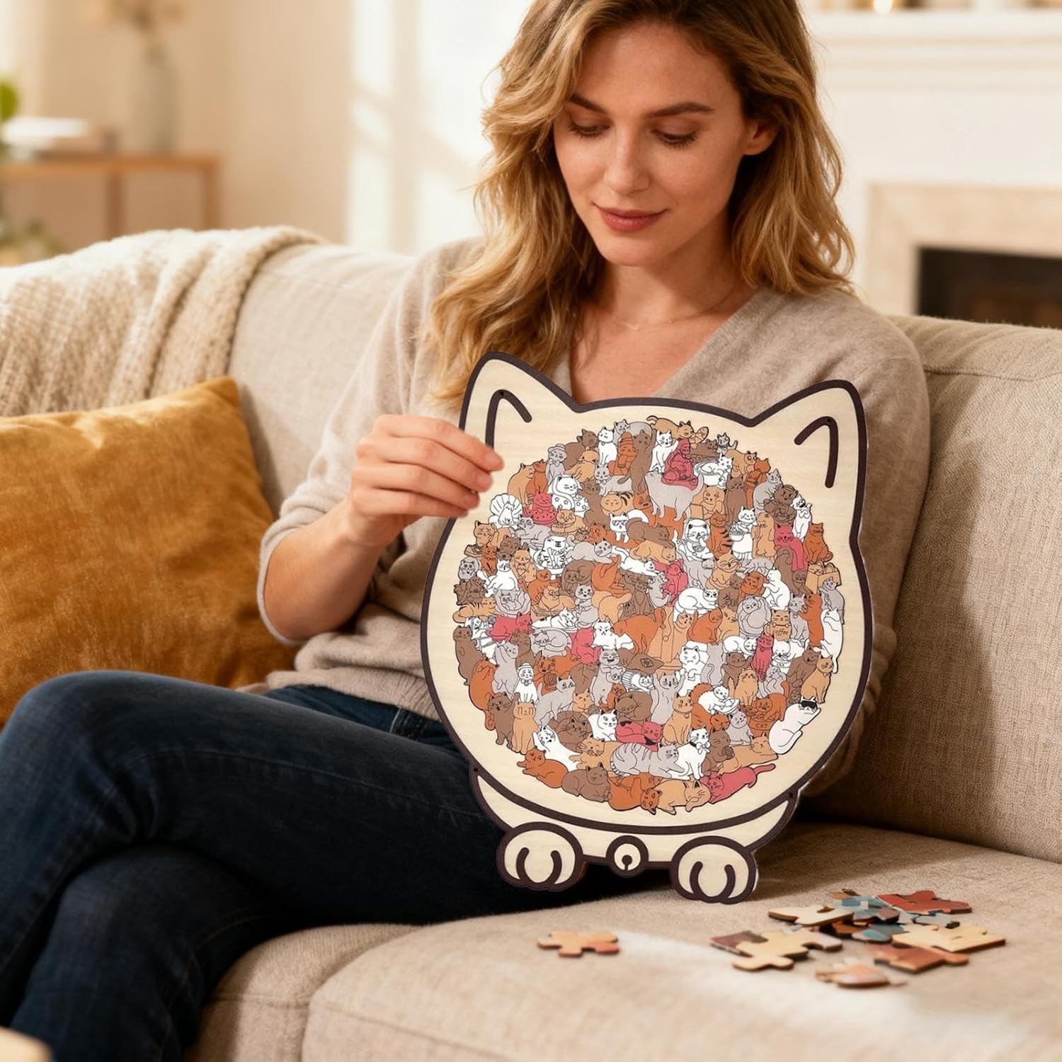 Ottimo regalo: questo puzzle per gatti in legno è realizzato a mano con cura, offrendo un modo distintivo per esprimere affetto attraverso il suo design accurato, per sorprendere le persone care durante riunioni o celebrazioni come ricordo memorabile Intricati modelli di puzzle con gatti: caratterizzato da tecniche di taglio raffinate e una cornice a tema felino, questo puzzle in legno offre disegni dettagliati con texture di pelliccia, garantendo una sessione coinvolgente e sconcertante che aggiunge fascino ai tuoi progetti di artigianato del fine settimana Durabilità assicurata: i puzzle in legno per gatti sono realizzati in legno naturale, offrendo una struttura forte e robusta che resiste alla deformazione, garantendo un uso duraturo con la loro consistenza liscia e di schegge, che li rende ideali per momenti di gioco rilassati o occasioni di presentazione Design consapevole in legno: questo puzzle per gatti in legno supporta il rilascio graduale dello stress con il suo feedback tattile in legno, consentendo agli utenti di entrare in stato calmo e concentrato alleviando stesso lo stress lavorativo e di studio, per rilassarsi in serate tranquille o durante programmi frenetici Uso versatile: trasforma il ambiente con il puzzle in legno a forma di gatto, che offre più divertimento e funge anche da arredamento di buon gusto per il soggiorno o da posizionamento in camera da letto, adattandosi perfettamente a dormitori, comodini e aree studio, completando il spazio con un accattivante centrotavola espositivo per libreria