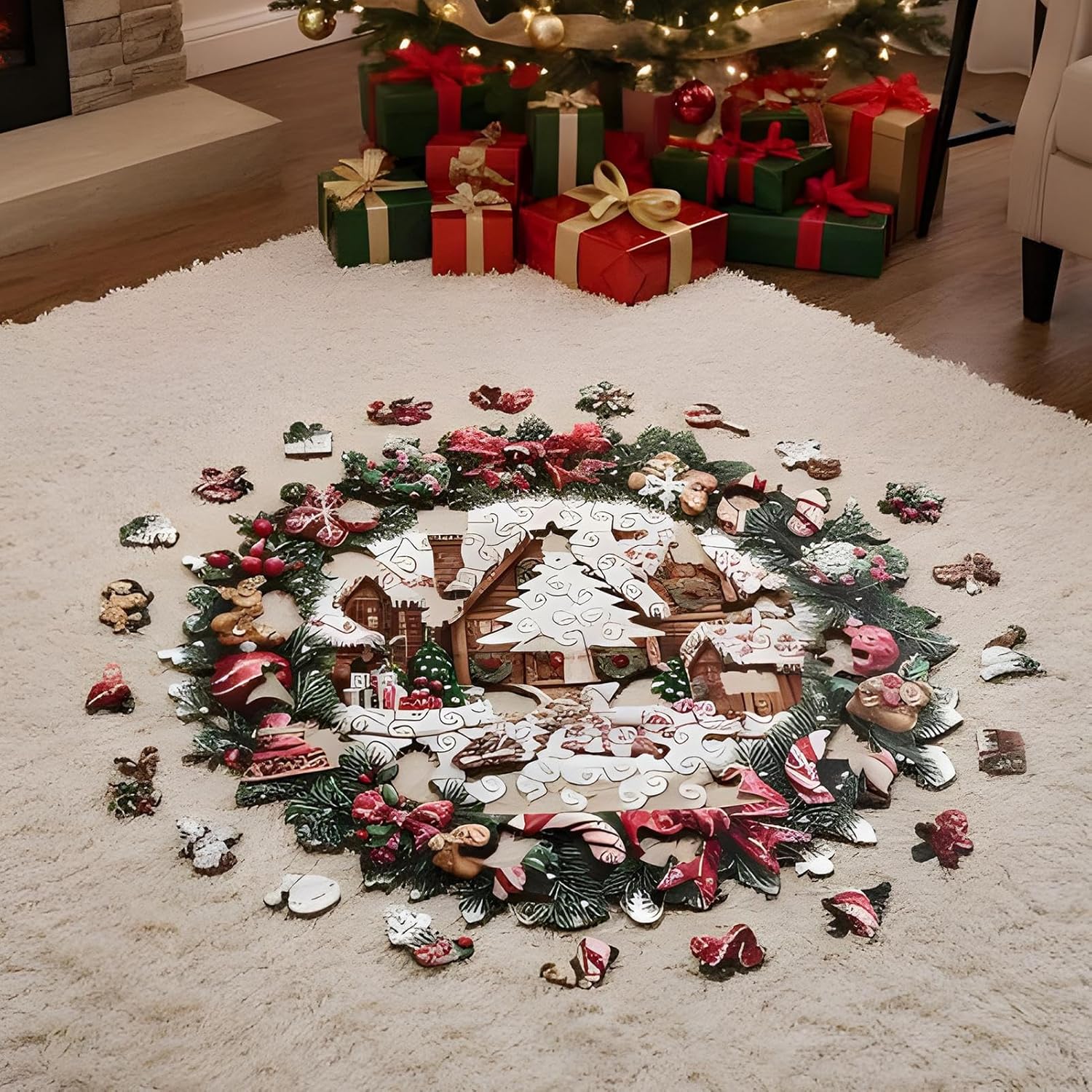 Varietà creativa di forme: con diverse forme di pezzi del puzzle modellate su rami e bacche di pino, questi puzzle ridefiniscono la tradizionale esperienza del puzzle; Utilizzando la tecnologia di taglio di precisione, garantiscono un assemblaggio fluido e promuovono un coinvolgimento profondo: perfetti per gli hobbisti che esplorano progetti fantasiosi durante piacevoli serate o attività del fine settimana. Puzzle per bambini durevoli: realizzati in legno di alta qualità, questi puzzle per bambini mantengono la stabilità del colore, sono resistenti all'usura e forniscono una consistenza calda e liscia per esperienze piacevoli e durature durante le attività di gioco o familiari. Incoraggia il divertimento collaborativo: i puzzle per adulti sono progettati per incoraggiare la pazienza e il lavoro di squadra. Offrono alle famiglie un modo entusiasmante per socializzare e offrire momenti di qualità senza schermo in occasioni speciali e relax quotidiano. Soluzione regalo per le celebrazioni: il puzzle per adulti è progettato per esprimere amore e cura. È un regalo eccellente per bambini, ragazze e bambini in occasione di eventi come compleanni, festival, Natale o Capodanno, riavvicinando le famiglie attraverso esperienze di gioco interattive. Decorazione artistica natalizia: questo puzzle presenta un elegante design a ghirlanda natalizia con elementi festivi classici come rami di pino, fornendo un oggetto artistico da collezione completo che porterà calore e fascino alla tua casa ed è perfetto per decorazioni natalizie e riunioni di famiglia.