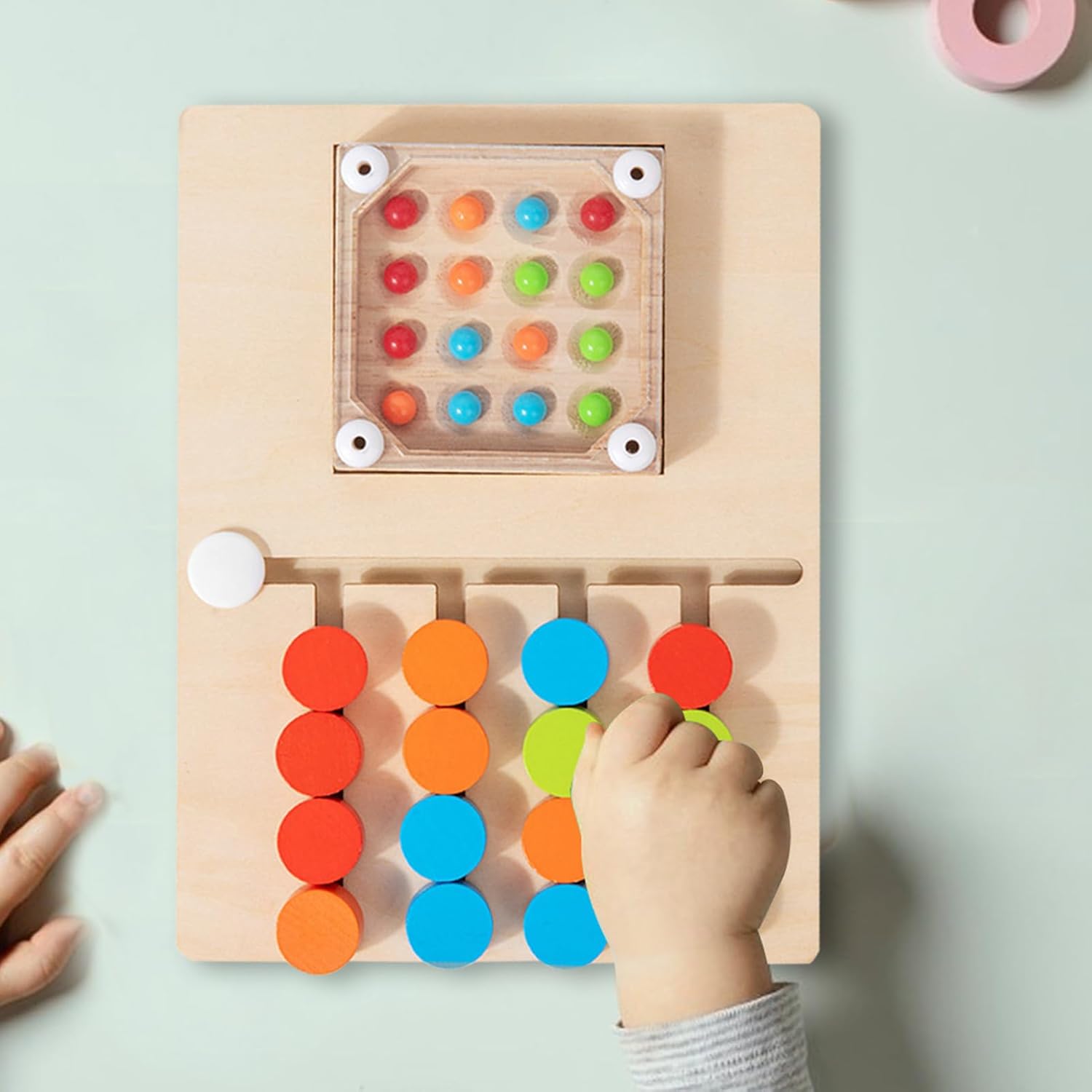 Rafforzamento del pensiero strategico: Questo puzzle scorrevole in legno promuove il ragionamento logico e la pianificazione strategica, mentre i giocatori analizzano i percorsi di spostamento delle sfere per sviluppare consapevolezza spaziale avanzata e abilità decisionali. Ideale per il gioco educativo o il tempo libero a casa, offre un'esperienza stimolante che perfeziona il pensiero strategico e la risoluzione dei problemi in un ambiente divertente. Puzzle in legno portatile: questo puzzle in legno di colori assortiti è facile da trasportare e funziona come un piccolo gioco da tavolo, offrendo intrattenimento e apprendimento in qualsiasi momento e in qualsiasi luogo, sia durante i giochi familiari che in viaggio, ideale per un divertimento moderato in vari ambienti grazie al suo design portatile e versatile che favorisce i momenti di gioco in famiglia o in viaggio senza problemi. Puzzle in legno ecologici: questi puzzle scivolosi utilizzano materiale in legno di alta qualità trattato con lucidatura fine per una finitura liscia e senza scheggiature, sicurezza, durata e rispetto dell'ambiente. Ideali per stimolare le abilità cognitive durante l'apprendimento in classe o le attività giocose a casa, offrono un'esperienza educativa e divertente. Supporta la crescita dello sviluppo: il puzzle di scorrimento del colore aiuta a migliorare le capacità motorie e la coordinazione del corpo incoraggiando gli utenti a scuotere il dispositivo per navigare le perle in pista, creando un'esperienza dinamica e coinvolgente. Ciò promuove lo sviluppo fisico e cognitivo fondamentale durante gli scenari di gioco quotidiani, sostenendo naturalmente l'evoluzione delle capacità motorie e il coordinamento globale attraverso un giocattolo giocoso Strumento di apprendimento Colori vivaci: il giocattolo puzzle scorrevole incorpora un design vibrante a quattro colori che rafforza la distinzione delle tonalità attraverso colori vivaci e un contrasto distinto, permettendo ai colori di riconoscere efficacemente durante i giochi interattivi al coperto o all'aperto. Incoraggia l'esplorazione cromatica attraverso un gameplay accattivante, ideale per sessioni di apprendimento giocoso in cui i colori vivaci promuovono la discriminazione visiva e