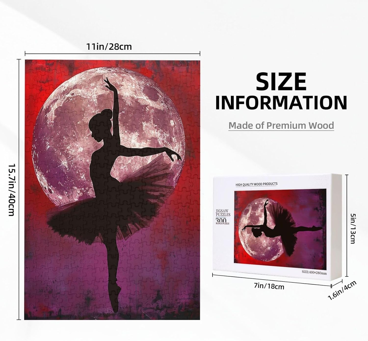 【Artigianato ecologico e di alta qualità】 I nostri puzzle in legno sono realizzati con materiali di alta qualità che garantiscono una perfetta vestibilità ogni volta. Il design attento all'ambiente garantisce l'assenza di odori sgradevoli, rendendolo sicuro e confortevole per tutte le età. Goditi la soddisfazione di completare questo straordinario capolavoro di 28x40 cm con i tuoi cari.,Design unico per un intrattenimento senza fine: ogni pezzo di questo puzzle da 300 pezzi ha una forma unica, eliminando il fastidio di trovare duplicati. Questa funzione migliora l'esperienza complessiva, permettendoti di concentrarti sulle intricate opere d'arte mentre crei un momento indimenticabile di legame con la famiglia o gli amici.,Regalo perfetto per tutte le occasioni: questo puzzle dal design accattivante è un regalo ideale per compleanni, inaugurazioni di casa, vacanze o semplicemente come gesto premuroso per gli appassionati di puzzle. Utilizzato come gioco o incorniciato come arte murale, aggiungerà fascino a qualsiasi stanza. 【Sollievo dallo stress e benefici cognitivi】 La partecipazione ai nostri puzzle in legno favorisce il rilassamento e riduce i livelli di stress. Stimola anche l'agilità mentale incoraggiando capacità di risoluzione dei problemi, creatività e pazienza, perfetto per adulti e bambini che cercano sfide intellettuali.,Facile da riporre e mantenere: il puzzle viene fornito ben confezionato in un sacchetto a rete in una scatola robusta con immagine di riferimento. Inoltre, è inclusa una guida pratica. La pulizia è semplice; Se necessario, pulire semplicemente la superficie con un panno asciutto