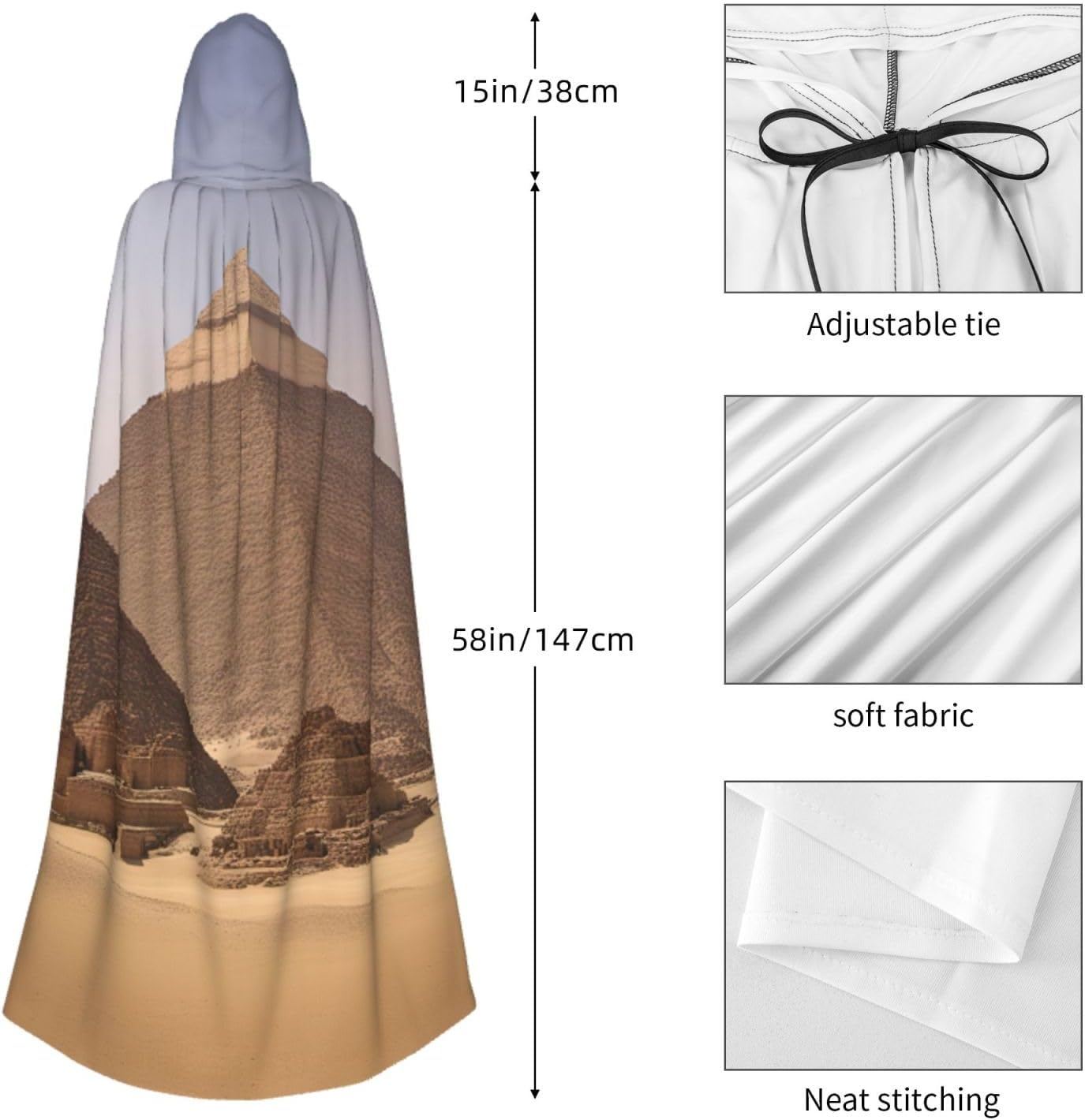 Pyramids of Egypt - Mantello lungo con cappuccio, per adulti, per feste a tema, giochi di ruolo