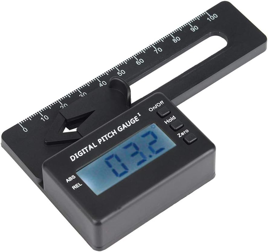 Con funzione di mantenimento, indicatore di batteria scarica, funzione di calibrazione, display a rotazione automatica, funzione di spegnimento automatico Mini di dimensioni e leggero, facile da trasportare Il misuratore del passo è alimentato da 2 batterie a bottone (non incluse) e consente lame da 200 a 800 mm Questo nuovo misuratore di passo digitale offre 'elevata precisione e una misurazione 'angolo di passo ultraveloce Adatto per le solite pale dei modelli di elicotteri RC