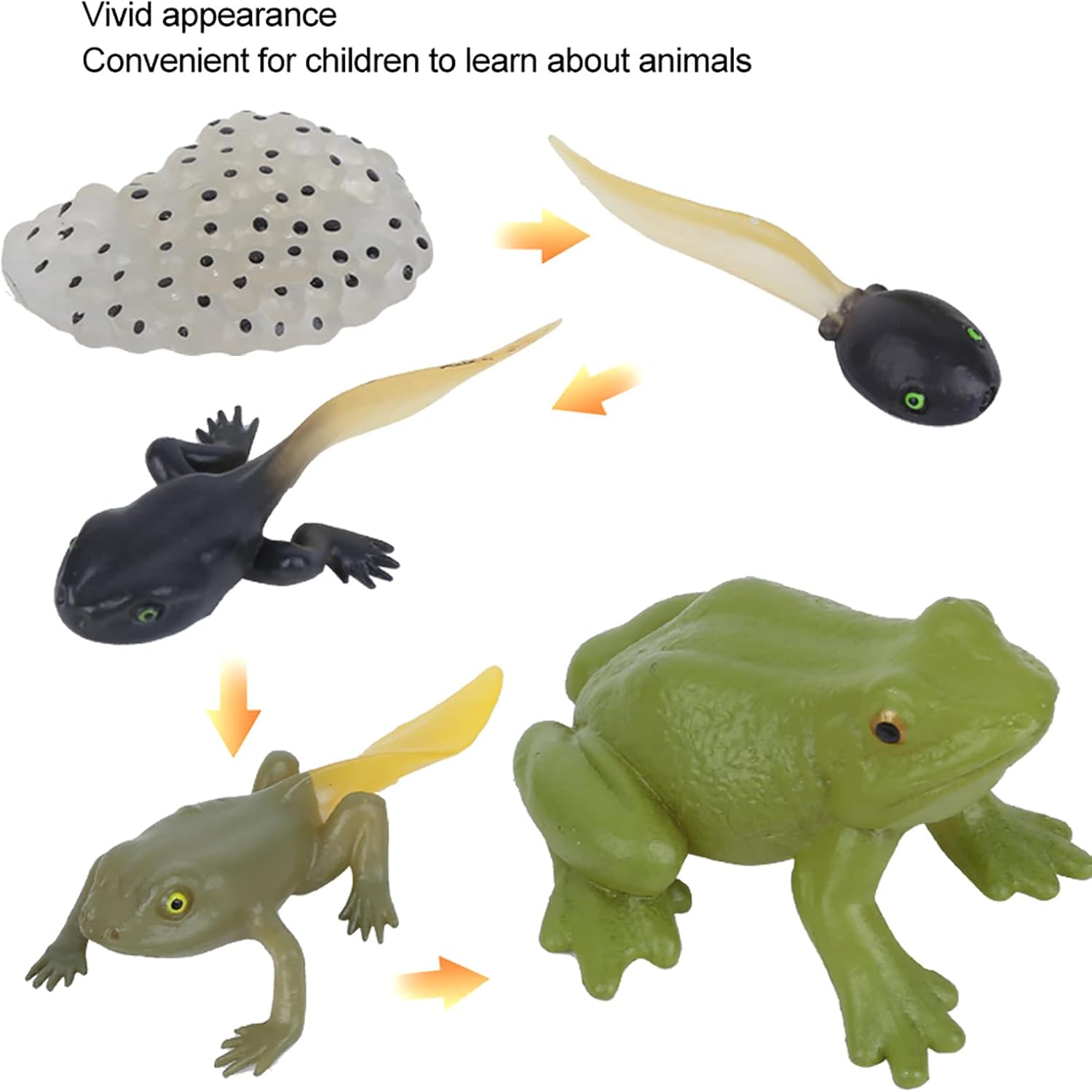 [Materiale di alta qualità] Realizzato in plastica sicura e non tossica, garantisce durata e idoneità per bambini dai 3 anni in su. [Simulazione realistica degli animali] Il vivido modello del ciclo di crescita delle rane in miniatura aiuta i bambini ad apprendere in modo efficace le fasi della vita delle rane. [Artigianato squisito] L'attenzione ai dettagli nel design rende questi modelli ideali per oggetti di scena fotografici e giochi fantasiosi. [Divertimento educativo] Questo set di modelli animali è adatto per l'educazione precoce e promuove l'apprendimento pratico e la curiosità per la natura. [Uso versatile] Ideale per aule, programmi educativi o decorazioni domestiche per migliorare la comprensione della biologia degli anfibi.