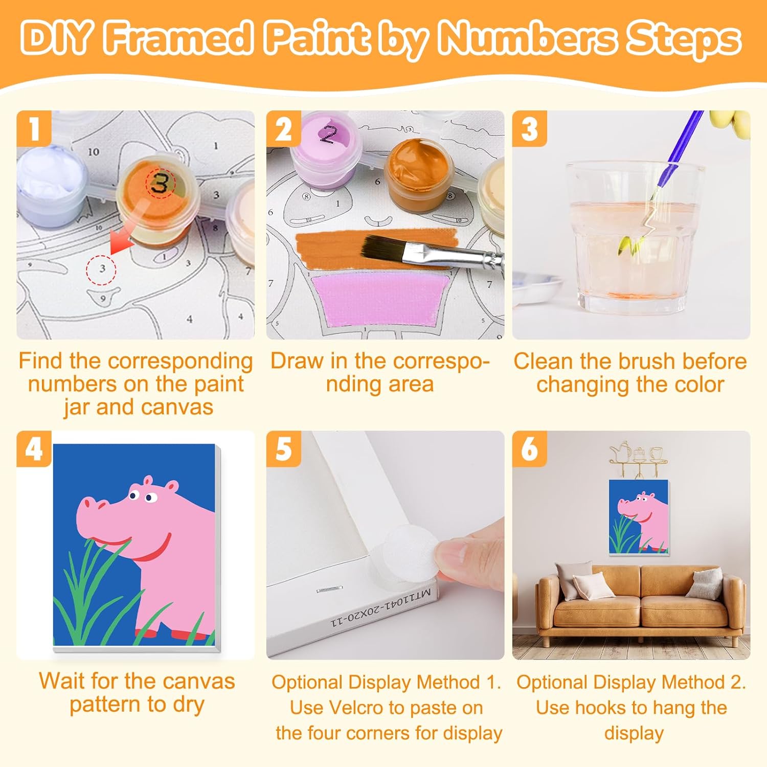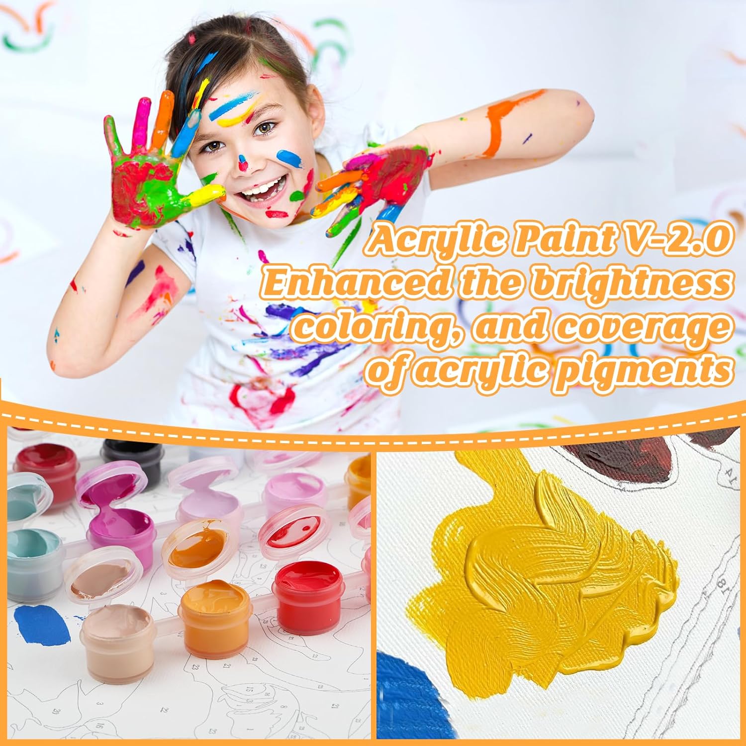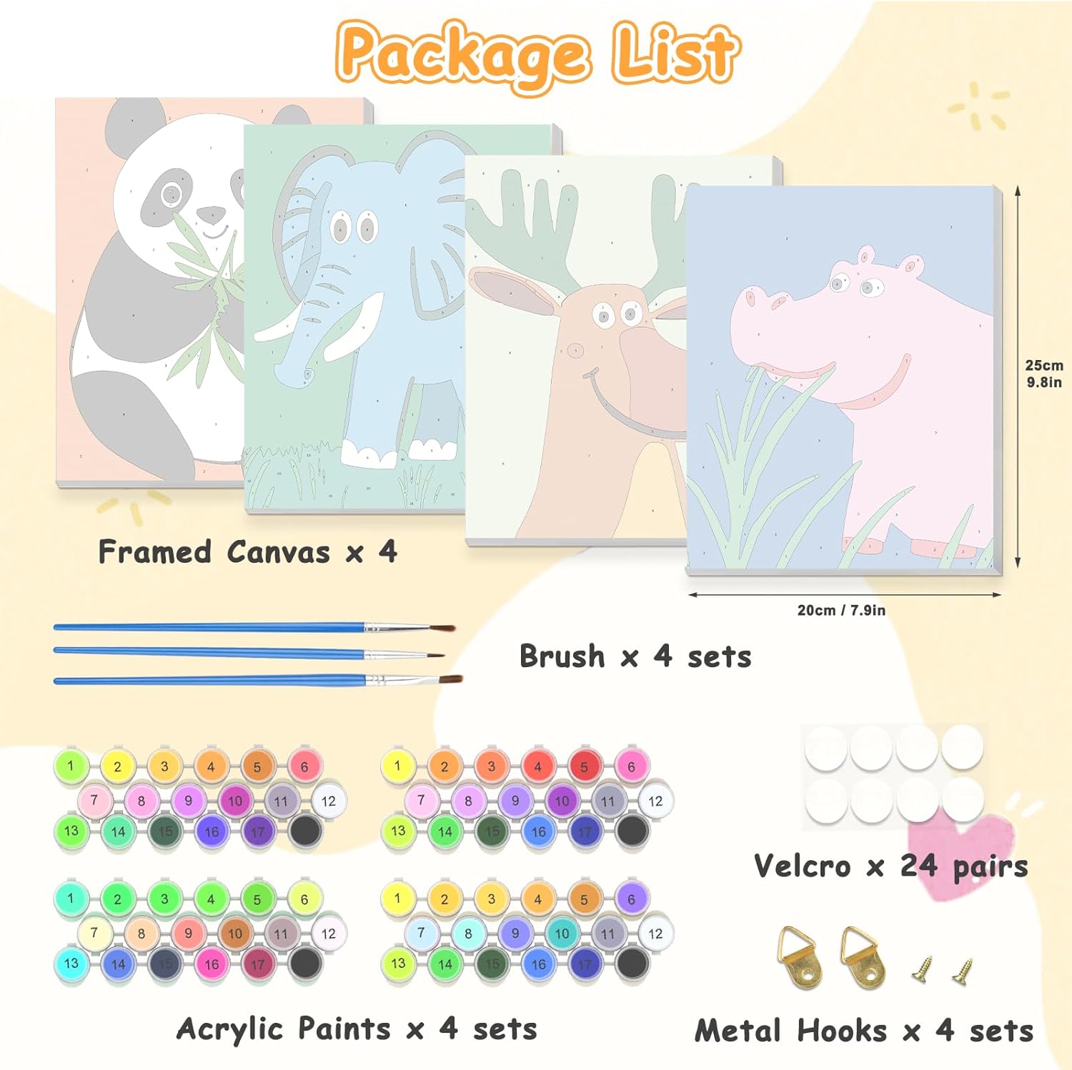 Include Tutto: Kit di pittura a olio digitale per bambini include tutto ciò di cui un principiante ha bisogno. Include 4 tele colorate, 4 cornici in legno (pre-assemblate), 4 set di colori acrilici, 4 set di pennelli, 24 paia di velcro e 4 paia di ganci. Tutto, dall'inizio alla fine, è incluso Dipingi con i Numeri Incorniciati: Dipinti numerati sono preinstallati su cornici di legno, garantendo che la tela sia senza pieghe e grinze, rendendo più facile dipingere e decorare Colori di Alta-Qualità: I nostri kit di pittura per bambini utilizzano colori acrilici di seconda generazione, che offrono una copertura elevata, colori vivaci e la consistenza perfetta, rendendo il tuo viaggio creativo più fluido Coltivare la Concentrazione e Pensiero: La pittura digitale non è solo una decorazione fai da te; ha anche un ricco valore educativo. Il tuo bambino svilupperà rapidamente l'apprezzamento artistico e la concentrazione mentre dipinge Decorazione e Regalo Significativi: Dipinti con i numeri sono regali decorativi pieni di amore e fantasia. Che si tratti di qualsiasi festività, possono diventare decorazioni accattivanti e sono il regalo perfetto per i bambini