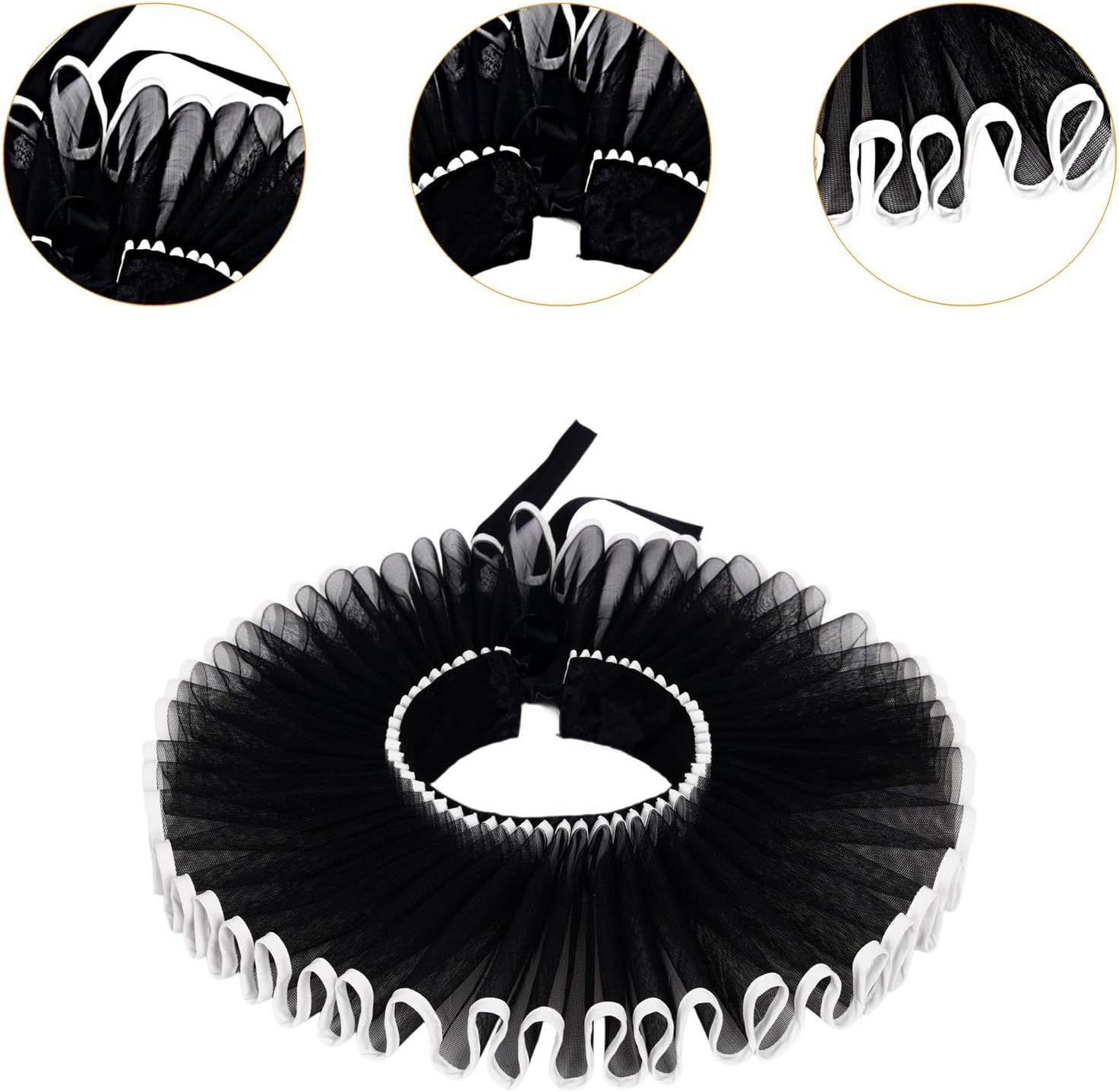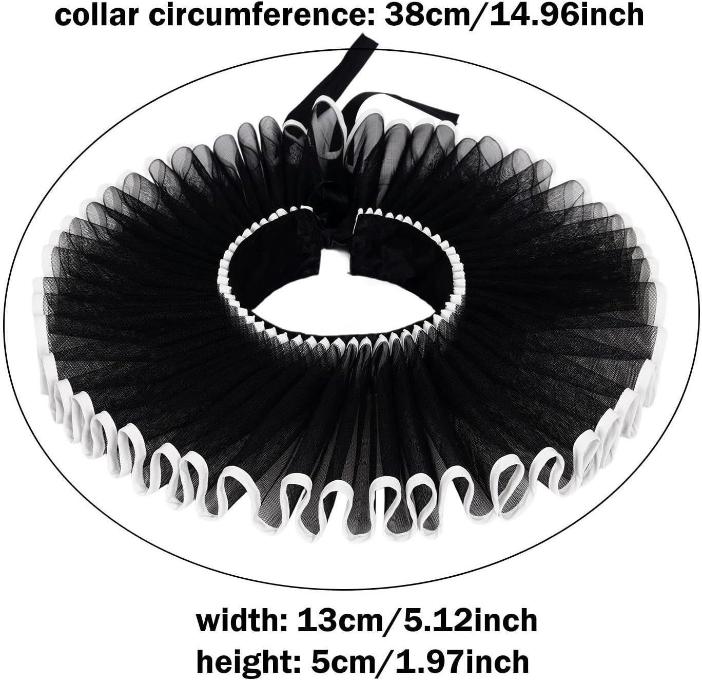 Materiale: realizzato in tessuto, questo collare per il collo garantisce comfort e longevità, rendendolo un'aggiunta affidabile al tuo guardaroba di costumi Ampia applicazione: i collari da clown con collo a balza sono ideali per valorizzare costumi elisabettiani, abiti, abiti rococò, abiti , costumi teatrali, abiti gotici Dimensioni: con volant è progettato con una circonferenza del collo di 38 cm e un'altezza di 5 cm, questo collare elisabettiano offre una vestibilità aderente ma comoda per la maggior parte delle persone che lo indossano. Facile da usare: staccabile Ruffle Clown Neck consente un'applicazione e una rimozione rapide, rendendo comodo passare da un look o costume all'altro senza sforzo Accessorio versatile per costumi: questo colletto arricciato staccabile aggiunge un tocco di stile vintage e raffinato al tuo costume. Ideale per abiti , ruoli da clown da o spettacoli teatrali.