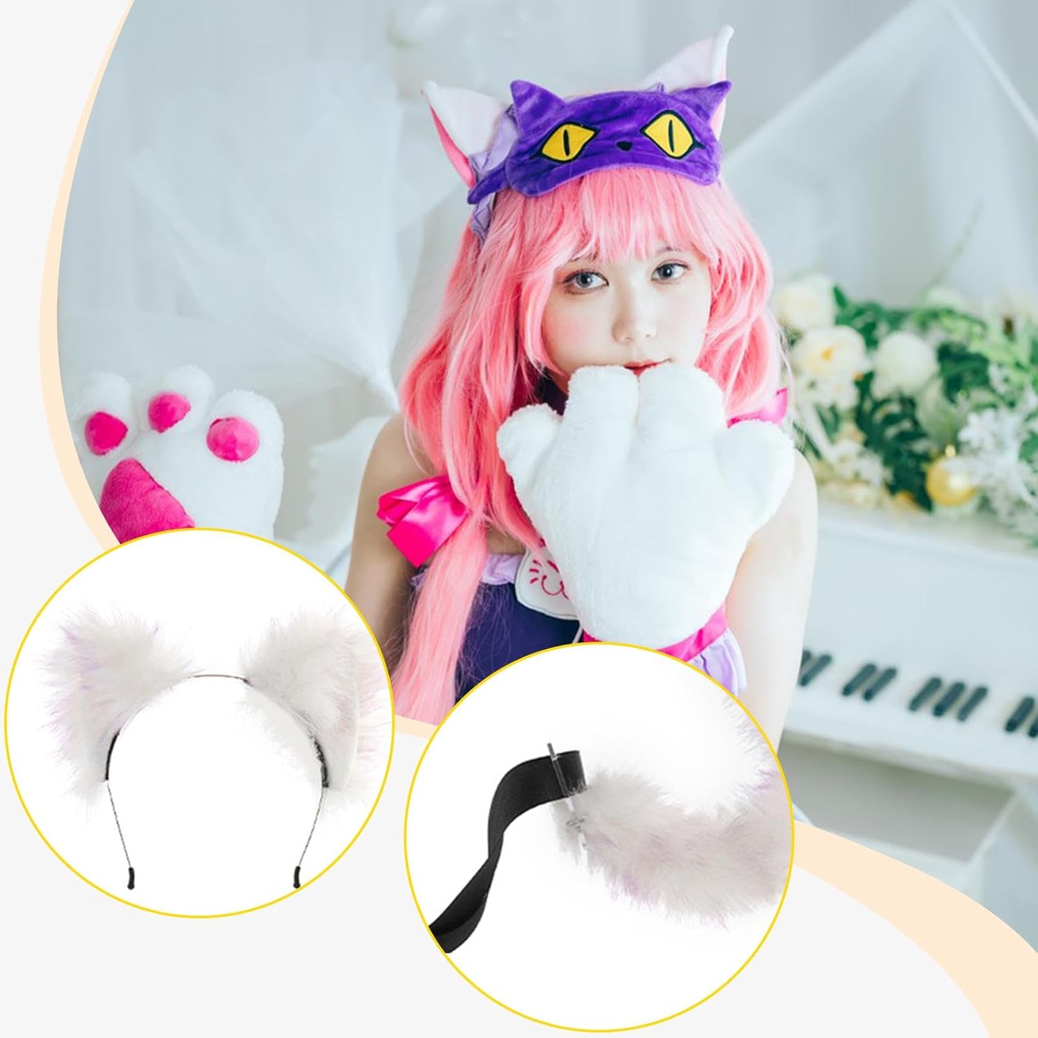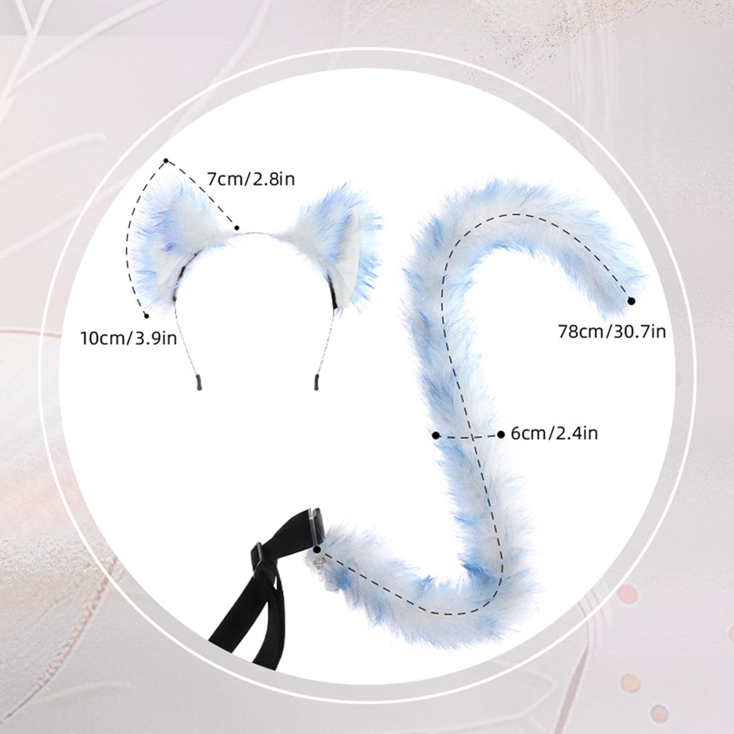 Qianly Kit con Coda e Cerchietto per Orecchie di Gatto, Adorabile e Morbido per Travestimenti, Festival, Giochi di Ruolo, Color a