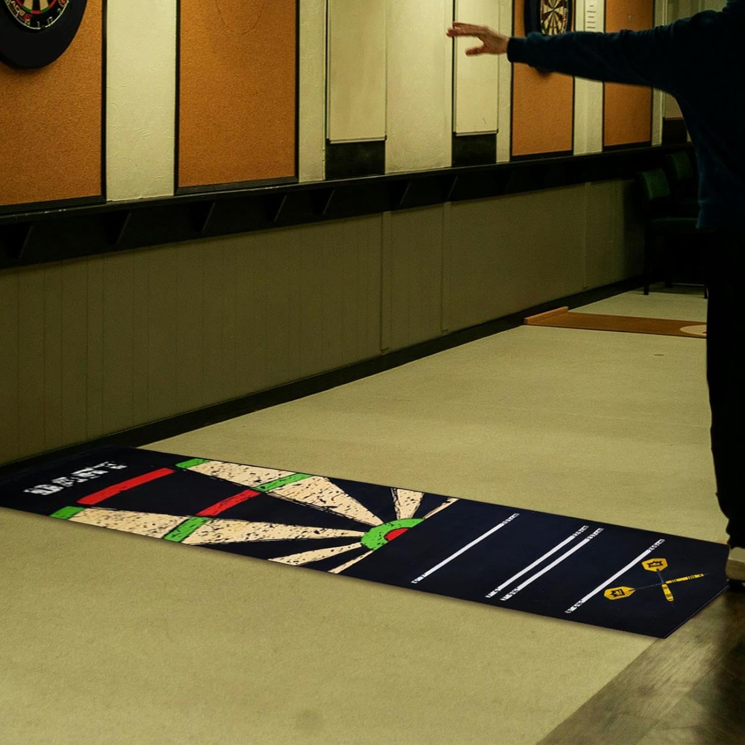 Facile da riporre e trasportare: con le sue dimensioni moderate di 66 cm x 300 cm/25,98 pollici x 118,11 pollici, questo accessorio per freccette consente di risparmiare spazio rendendolo facile da riporre e trasportare. 【Design unico】: il design del tappetino per freccette è allo stesso tempo alla moda e accattivante, attirerà sicuramente l'attenzione. 【Interno ed esterno】: adatto a casa, ufficio o spazio commerciale. Questo tappeto per freccette ti consente di divertirti giocando a freccette sia all'interno che all'esterno. La confezione include: ogni confezione contiene 1 pezzo di tappeto per freccette, è un tappetino appositamente progettato per appassionati di freccette. 【Materiale】: questo tappeto per freccette è realizzato in TPE, robusto e antiscivolo. Può proteggere efficacemente il pavimento e il dardo dai danni.