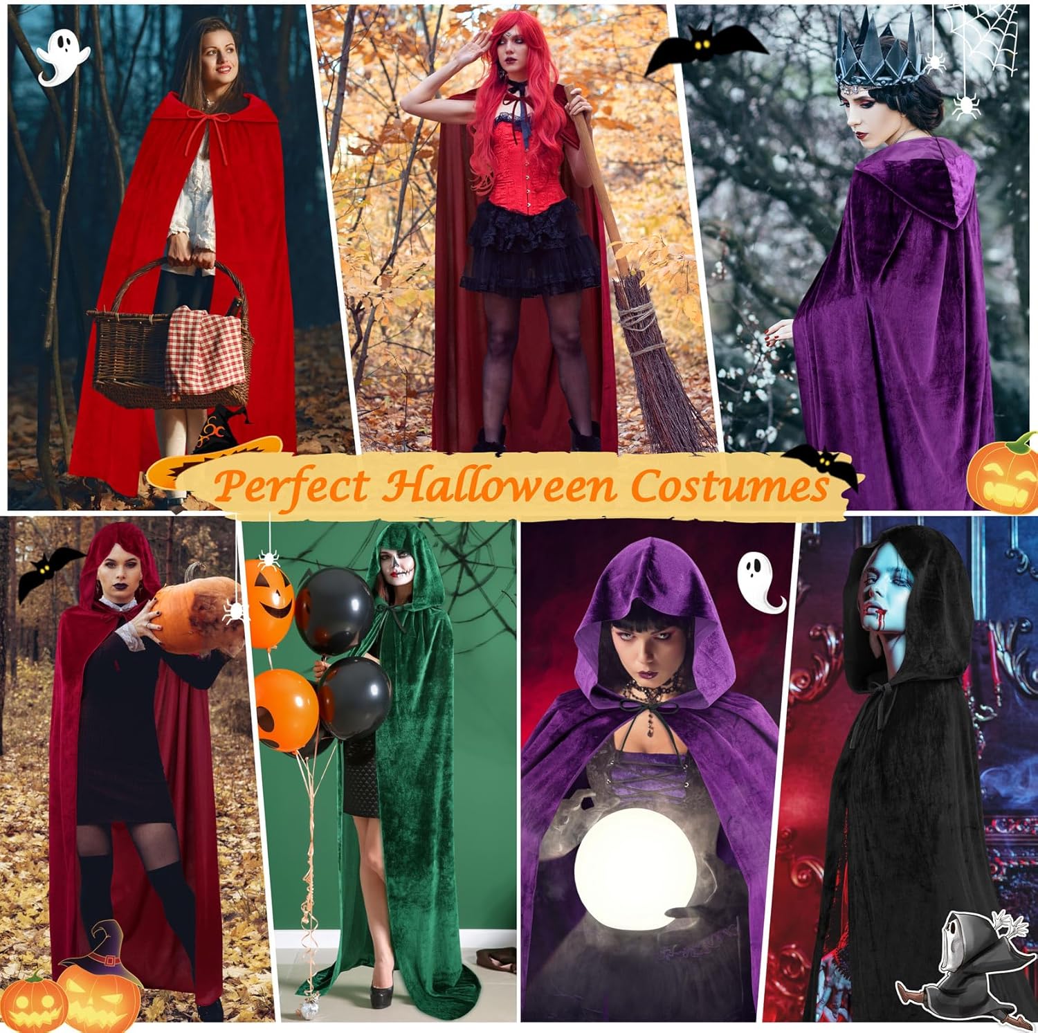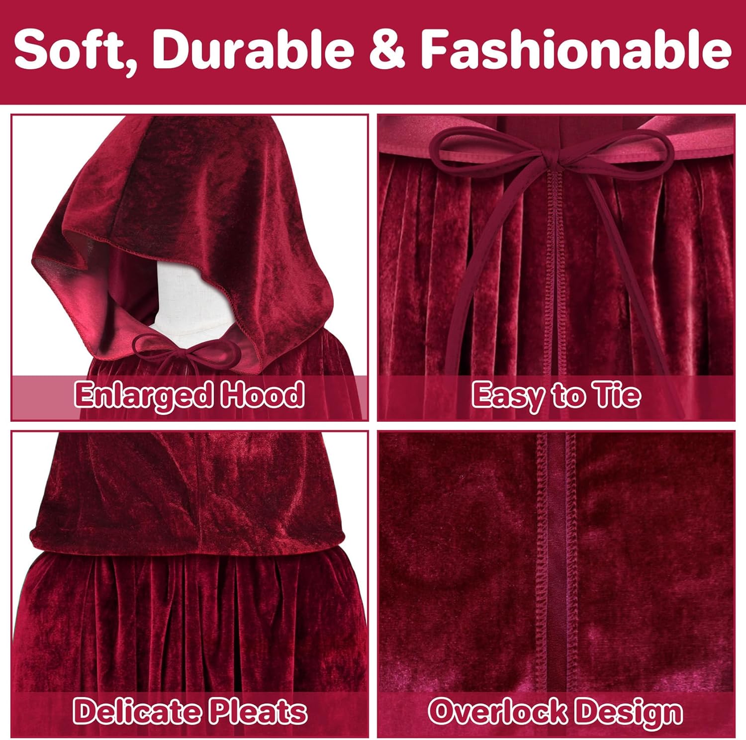qikqik Mantello con cappuccio in velluto con cappuccio mantello da strega mantello costumi di Halloween per adulti costume cosplay vampiro mantello mago veste
