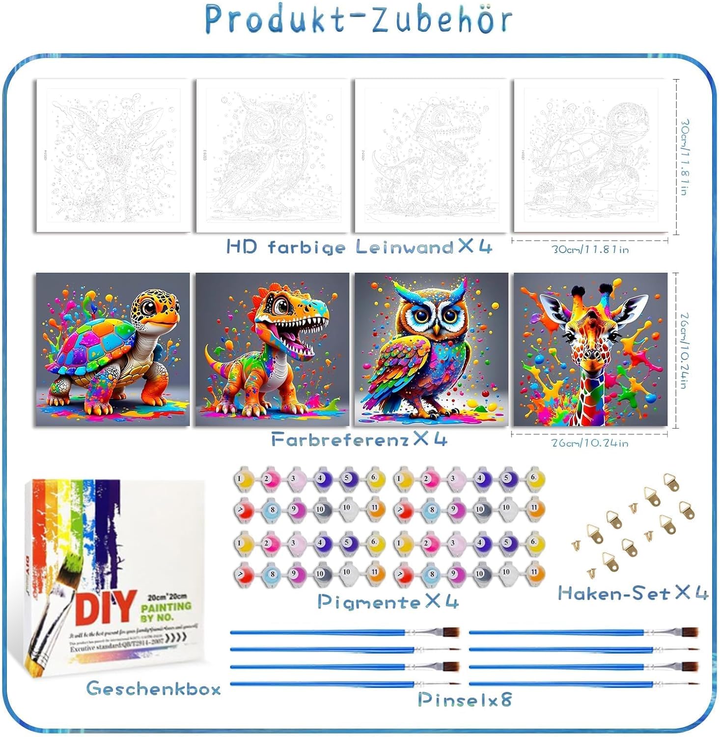 Contenuto della confezione: set da 4 pezzi per dipingere con i numeri, per bambini dai 5 anni in su, contengono tutto ciò di cui hai bisogno. 12 pennelli di alta qualità, 8 chiodi a gancio e 4 colori acrilici abbinati. 4 tele artistiche testurizzate prestampate (senza cornice) Facile da usare: che tu sia buono o cattivo nella pittura, puoi creare un'immagine bella e squisita. Non sono necessarie conoscenze di pittura, basta applicare la quantità di vernice sulla tela. I kit di pittura con i numeri per bambini possono aiutarti a migliorare le tue abilità pratiche e le tue abilità di pittura. Il set da disegno anime "Dipingere con i numeri" è perfetto per bambini, adulti e principianti nell'arte fai da te. Materiale sicuro e di alta qualità: il nostro kit per dipingere con i numeri per bambini è realizzato con vernice acrilica sicura e sana, i bambini possono usarlo senza problemi. Inoltre, la vernice acrilica non ha bisogno di essere diluita e può essere utilizzata dopo l'apertura, il che è molto conveniente. Il nostro kit di pittura con i numeri per bambini è realizzato in lino e la tecnologia di stampa ad alta risoluzione rende i numeri più chiari, il che può ridurre efficacemente l'affaticamento degli occhi. Regalo perfetto per i bambini: il kit per dipingere con i numeri per bambini è un progetto molto semplice e divertente per i principianti, perfetto per i bambini che amano disegnare a qualsiasi livello di abilità. I kit di pittura con i numeri per bambini sono il regalo perfetto per i vostri bambini per Natale o compleanno. Garanzia di soddisfazione: la qualità è il nostro vantaggio, ma attribuiamo più importanza all'esperienza del cliente. Se avete domande sul modello, sul colore o sul pennello del set di pittura con i numeri per bambini, vi preghiamo di contattarci al più presto via e-mail. Risolveremo sicuramente tutte le vostre preoccupazioni entro 24 ore.