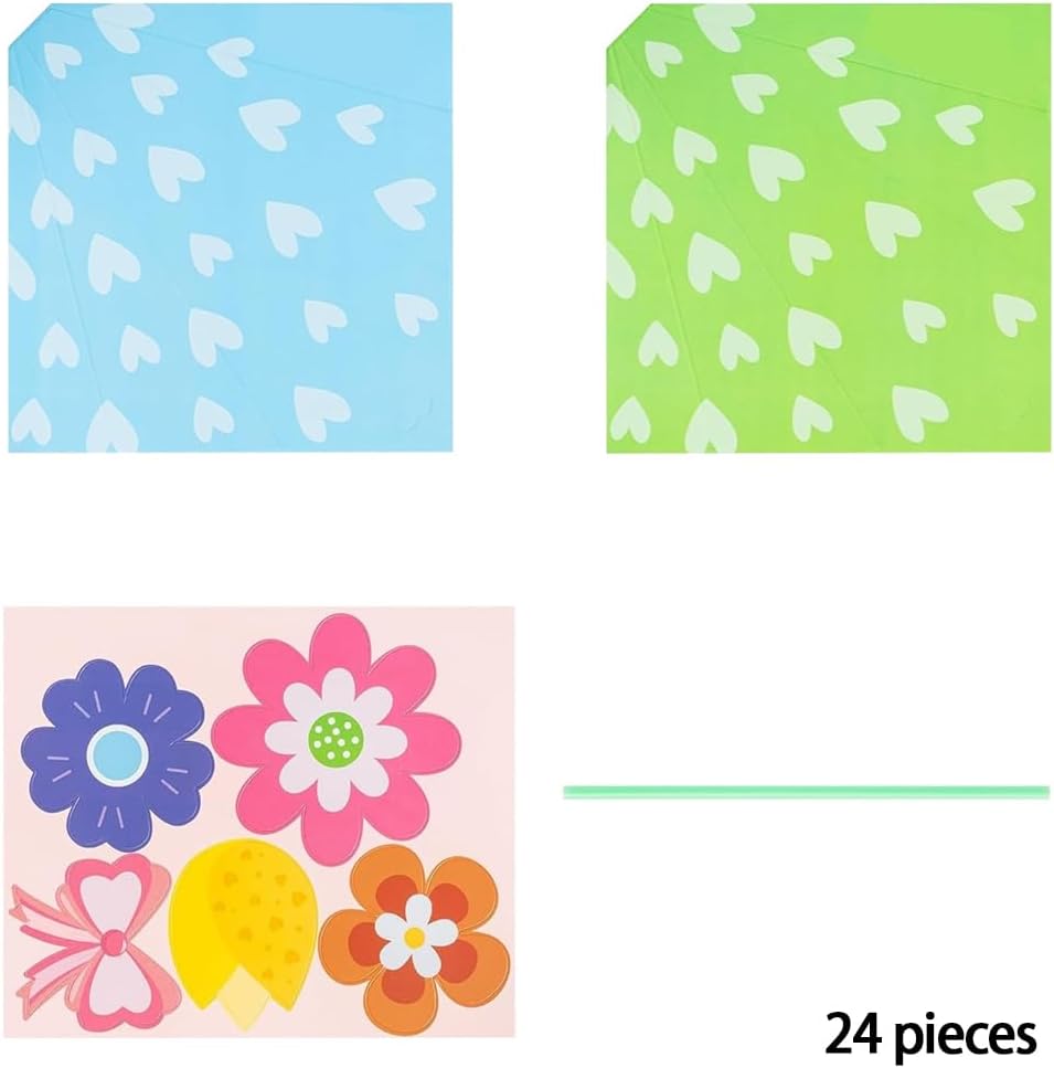 Cartoncino per fiori di alta qualità: realizzato in carta spessa e resistente, stampato con fiori luminosi e chiari, che garantisce bouquet duraturi e memorabili. Kit artigianale per bouquet di fiori: contiene 1 set di materiali creativi, tra cui cartoncino per fiori, carta kraft, carta con punti colla, plastica verde e nastro giallo, appositamente progettato per la festa della mamma per i bambini. Divertimento fai da te: il processo di produzione è semplice, con istruzioni dettagliate per promuovere la creatività e il senso di realizzazione dei bambini. Regalo per la festa della mamma: il bouquet fatto a mano esprime "ti amo", adatto a madri, insegnanti, nonne, ecc. per esprimere amore eterno Uso multifunzionale: può essere utilizzato per lezioni, feste, giochi o attività artigianali a casa, decorare camere da letto, uffici e altri spazi