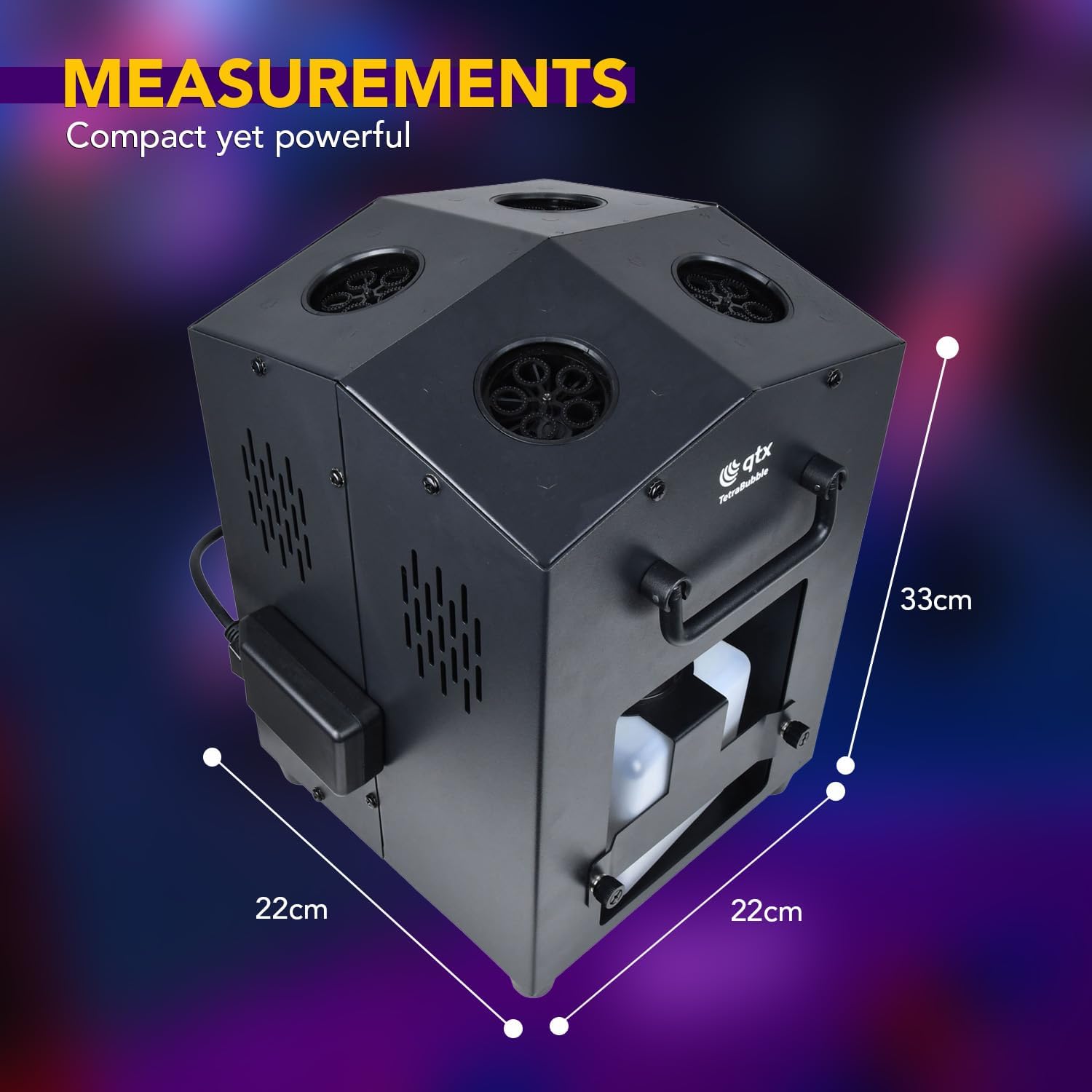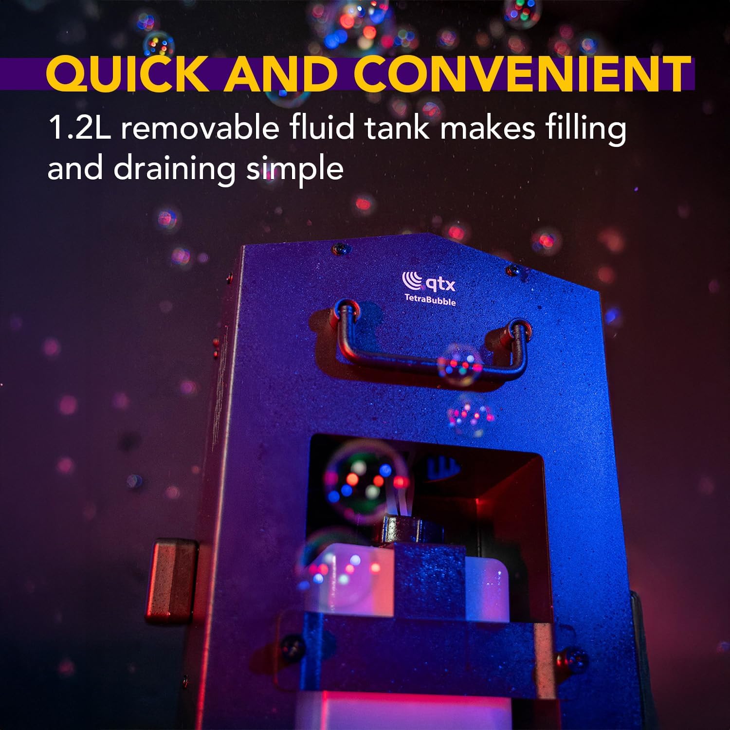 Bolle che impressionano | Il potente design a 4 ruote con 20 bacchette genera un flusso di bolle ad alta potenza che raggiunge i 3-5 metri, perfetto per affascinare bambini, ospiti e folle di feste Funzionamento con facilità | Include un telecomando wireless con telecomando e sensore cablato, che ti offre un semplice controllo a distanza per una gestione degli eventi senza stress Riempimento rapido, meno disordine | Il grande serbatoio rimovibile da 1,2 L rende facile riempire il liquido delle bolle, riducendo le fuoriuscite e mantenendo il divertimento che scorre più a lungo Portalo ovunque | Costruzione compatta con maniglia pieghevole per un trasporto senza sforzo tra luoghi, interni o esterni Risultati professionali | Progettato per matrimoni, compleanni, spettacoli teatrali e feste in giardino, offrendo una produzione continua di bolle per un intrattenimento affidabile