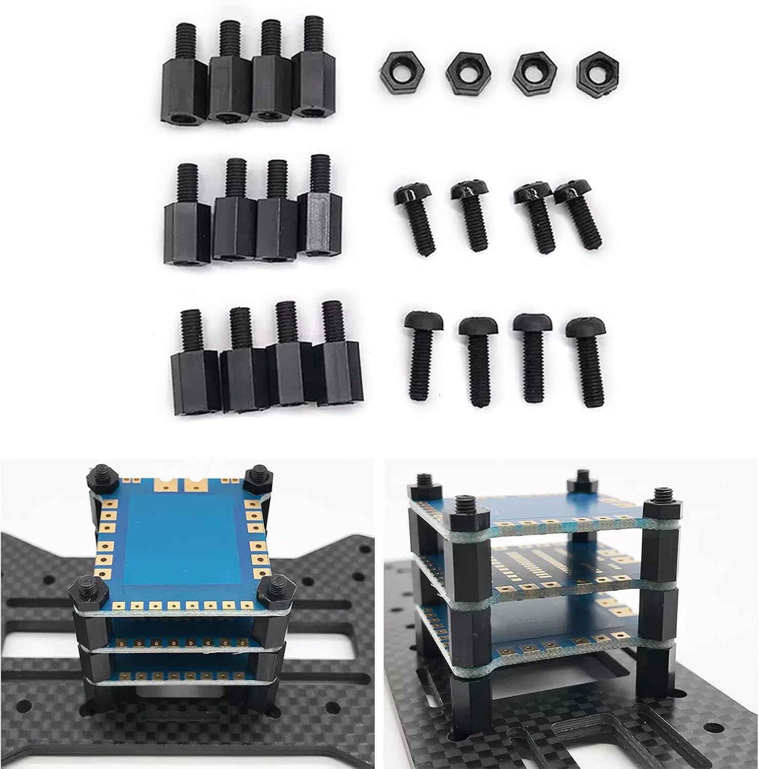 Componente in nylon, questa confezione di viti garantisce un peso leggero per fissare il tuo stack senza aggiungere peso inutile. Per una perfetta integrazione e migliora la durata della macchina trasversante. Eleva il tuo controller di volo quadricottero controller di velocità elettronico stack set di viti di montaggio. Semplificazione del processo di installazione e manutenzione del quadrirotore. Che tu stia preparando per la competizione o preparandoti per la fotografia, queste viti offrono l'affidabilità in qualsiasi ambiente di volo.