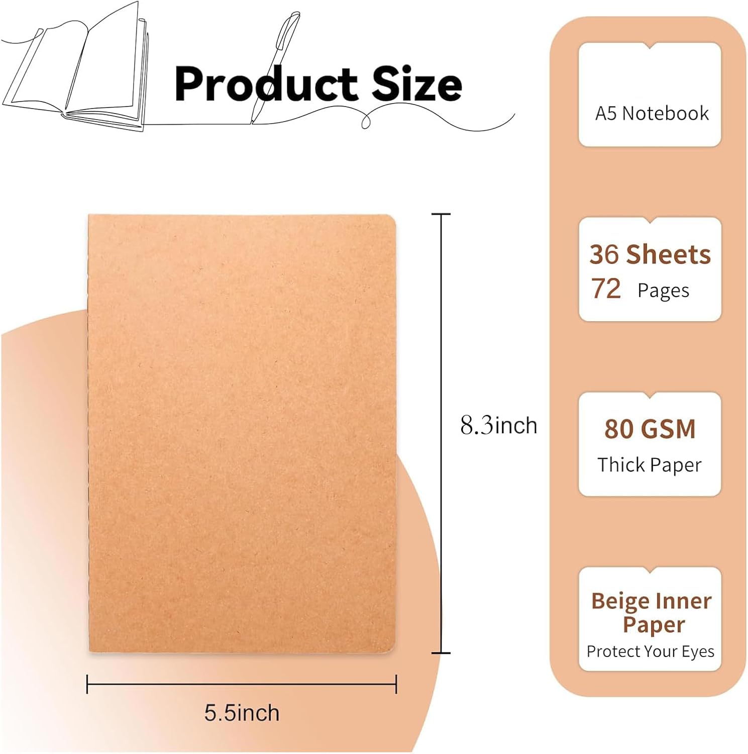 Alta qualità: la copertina del quaderno A5 a righe è realizzata in carta kraft robusta e durevole e le pagine interne sono in carta morbida. La carta è liscia e piacevole su cui scrivere. La carta beige protegge efficacemente i tuoi occhi e riduce l'affaticamento visivo. Formato: formato A5 (14 x 21 cm), 36 fogli. Formato ideale per un facile trasporto. Accessori disponibili: questi quaderni con copertina kraft semplice sono perfetti per disegnare, colorare e compilare le tue illustrazioni creative. Puoi anche scrivere lì i tuoi desideri da offrire. Comodo: La pagina bianca antiriflesso calma gli occhi, permettendoti di esprimerti liberamente e di dare libero sfogo alla tua creatività. Ampi usi: questi quaderni Kraft sono perfetti per affari, conferenze, viaggi, scrittura, lezioni, compiti a casa, tenere un quaderno di viaggio, un diario quotidiano, pianificare, prendere appunti e qualsiasi cosa importante.