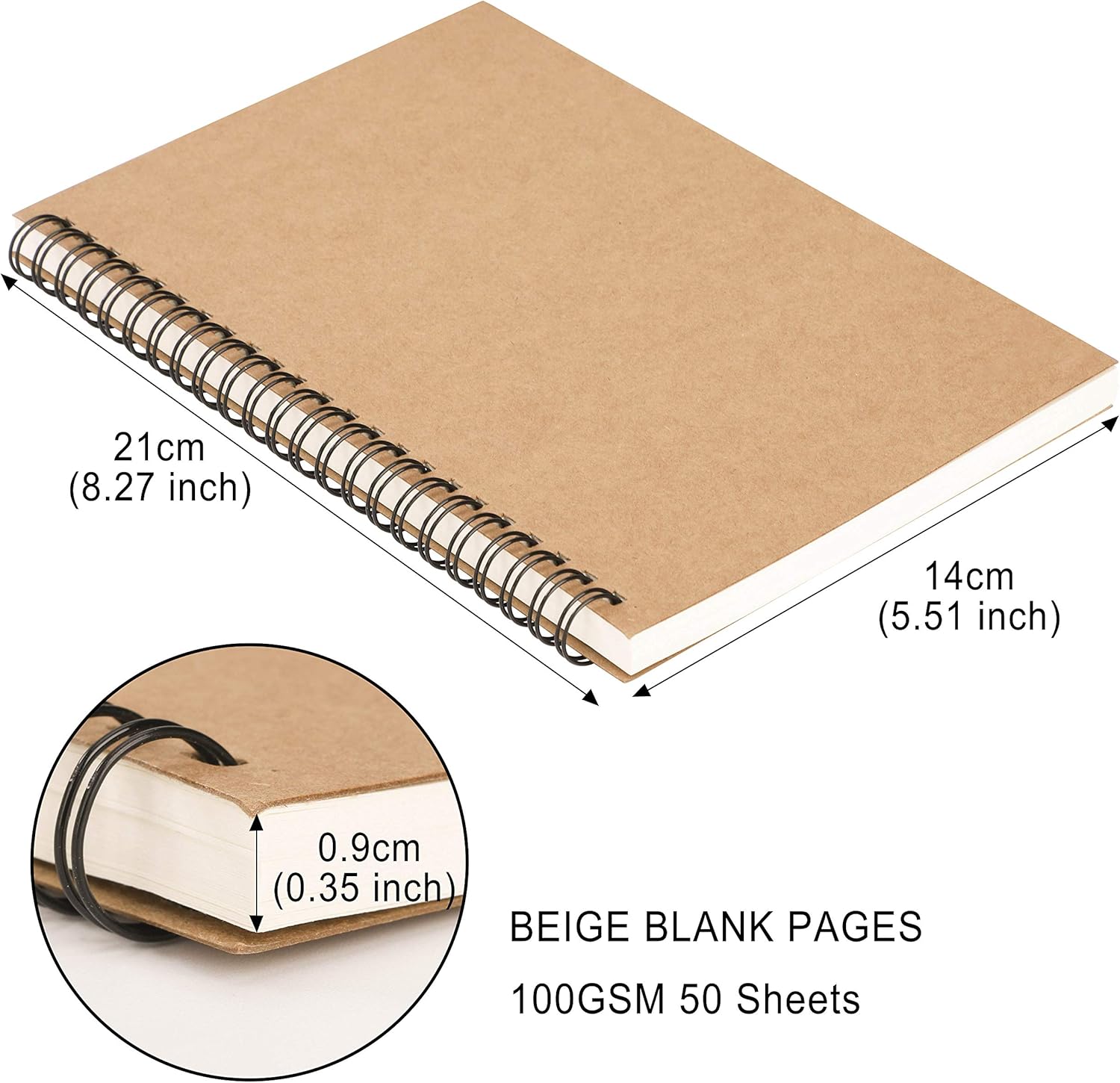 Pagine interne vuote: con 100 pagine/50 fogli completamente bianchi e senza righe in ciascuno dei libri, puoi disegnare ciò di cui hai bisogno senza limiti di riga, documentato in un quaderno da portare con te ovunque. Dimensioni portatili: le dimensioni di questo taccuino sono 8,26 x 5,51 pollici (14 x 21 cm), puoi facilmente metterlo nella borsa, nello zaino o nello zaino, permettendoti di uscire per studiare o lavorare, o trasportarlo quando viaggi. Qualità eccellente: la pagina interna del taccuino è realizzata in carta bianca spessa da 100 g/m², per offrirti una migliore esperienza di scrittura. La carta kraft esterna è realizzata in cartone di alta qualità da 350 g/m², che è più robusto e resistente all'usura e può proteggere bene le pagine interne del libro da eventuali danni. Ampia gamma di usi: questo quaderno a spirale ha una vasta gamma di usi. Puoi usarlo per file di riunioni di base, file di studio, diari di viaggio, ecc. Può anche essere usato per realizzare schizzi e disegni, soddisfacendo le tue varie esigenze di scrittura e disegno. La confezione include: viene fornito con 4 confezioni di quaderni a spirale di alta qualità, 2 copertine marroni e 2 copertine nere. La rilegatura resistente di ogni quaderno a spirale tiene insieme queste pagine saldamente e allo stesso tempo offre una superficie di scrittura piatta quando viene aperto.