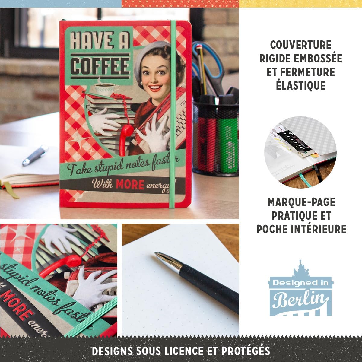 REGALO RETRO: per gli appassionati del vintage, stampa colorata di alta qualità in qualità 1A WE LOVE RETRO: quaderno in FORMATO A5 dal design vintage con copertina rigida con motivo in rilievo e chiusura elastica di sicurezza PRATICO ED ECOLOGICO: Bullet-Journal con pratica tasca interna, segnalibro colorato e 128 pagine punteggiate certificate FSC OTTIMO REGALO: quaderno bianco con tanto spazio per idee creative, appunti e Bullet-Journal PRODOTTO DI QUALITÀ: alta qualità, "Progettato a Berlino".