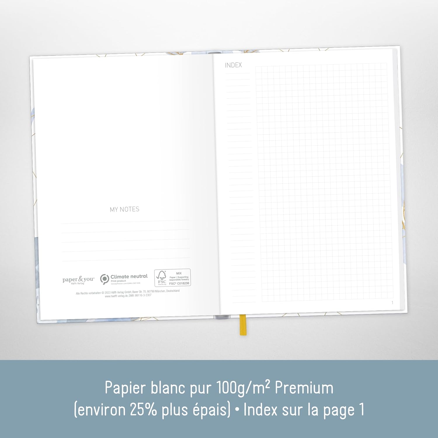 NOTEBOOK SQUADRATO - Della Häfft-Verlag, poco più grande dell'A5 (15,6 x 21,2 cm), con un pratico elastico per chiuderlo e un nastro da lettura per segnare le pagine. Libro per prendere appunti di ogni genere, obiettivi, schizzi, diario, progetti e pensieri! UN COMPAGNO FEDELE - La copertina flexo combina il meglio della copertina rigida e della copertina morbida: è robusta, flessibile, resistente agli schizzi e cancellabile. La resistente rilegatura a filo tiene insieme le pagine in modo sicuro. DIMENSIONI PRATICHE - Il quaderno è leggermente più grande del formato DIN A5 (copertina: 15,6 x 21,2 cm; interno: 15 x 21,2 cm), il che consente di inserire ordinatamente fogli A5 staccati o fogli A4 piegati, se necessario. FAI UN REGALO A TE STESSO E AGLI ALTRI - Ideale per uso personale o come simpatico regalo per i tuoi cari: questo quaderno chic ti fa venire voglia di posare lo smartphone e tirare fuori la penna! SOSTENIBILE E RISPETTOSA DEL CLIMA - Prendi appunti con la coscienza pulita: per amore dell'ambiente, la nostra carta premium da 100 g/m² è certificata FSC (FSC N004440) e stampata nel rispetto del clima.