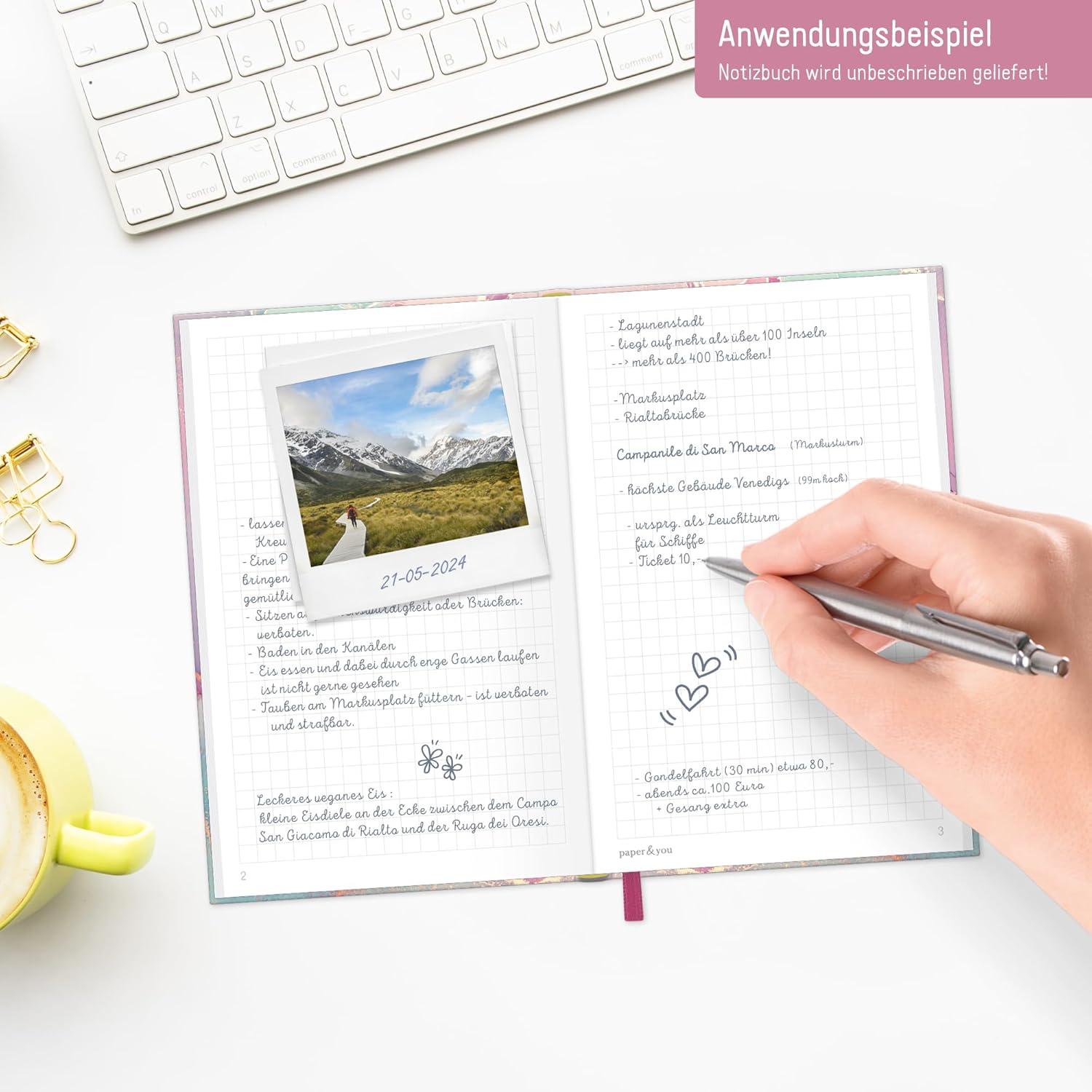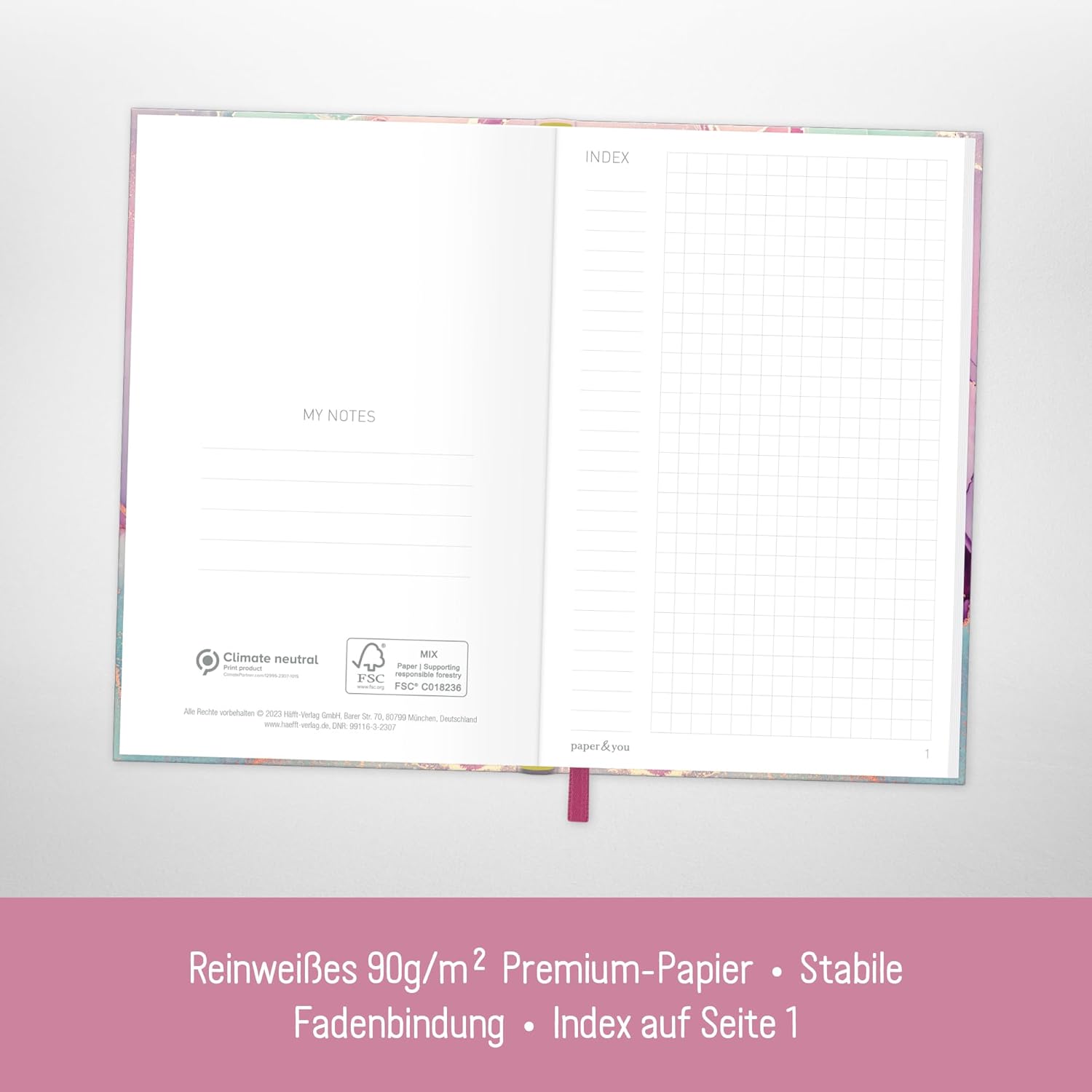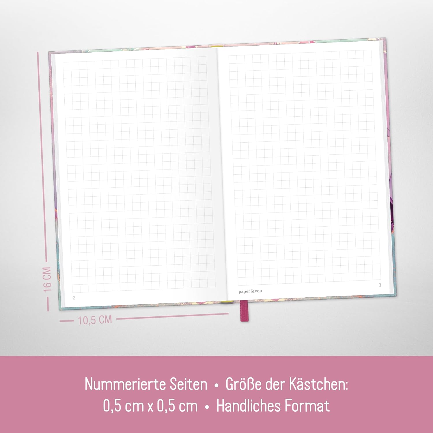 NOTEBOOK COMPATTO A quadretti A6+ della Häfft-Verlag con segnalibro a nastro ed elastico per appunti, idee, obiettivi, calligrafia, schizzi, progetti e riflessioni - sempre a portata di mano quando si annuncia un lampo di genio! IL TUO COMPAGNO FEDELE - La copertina flessografica, flessibile e resistente, combina le migliori caratteristiche della copertina rigida e della copertina morbida, è resistente agli schizzi e cancellabile. L'intricata rilegatura a filo tiene insieme le pagine in modo sicuro. FAI REGALI PER TE E PER GLI ALTRI - Ideale per i principianti o come regalo carino, questo taccuino chic ti fa venire voglia di posare lo smartphone e tirare fuori la penna! TANTI MODELLI DIVERSI - ce n'è per tutti i gusti e bello da collezionare: taccuino con 156 pagine numerate nel pratico formato A6+ (dimensioni interne: 10,5 x 16 cm) SOSTENIBILE E RISPETTOSO DEL CLIMA - Sii creativo tanto quanto la rosa di seta ama l'ambiente, la nostra carta premium da 90 g/m² è certificata FSC (FSC N004440) e stampata in modo rispettoso del clima.