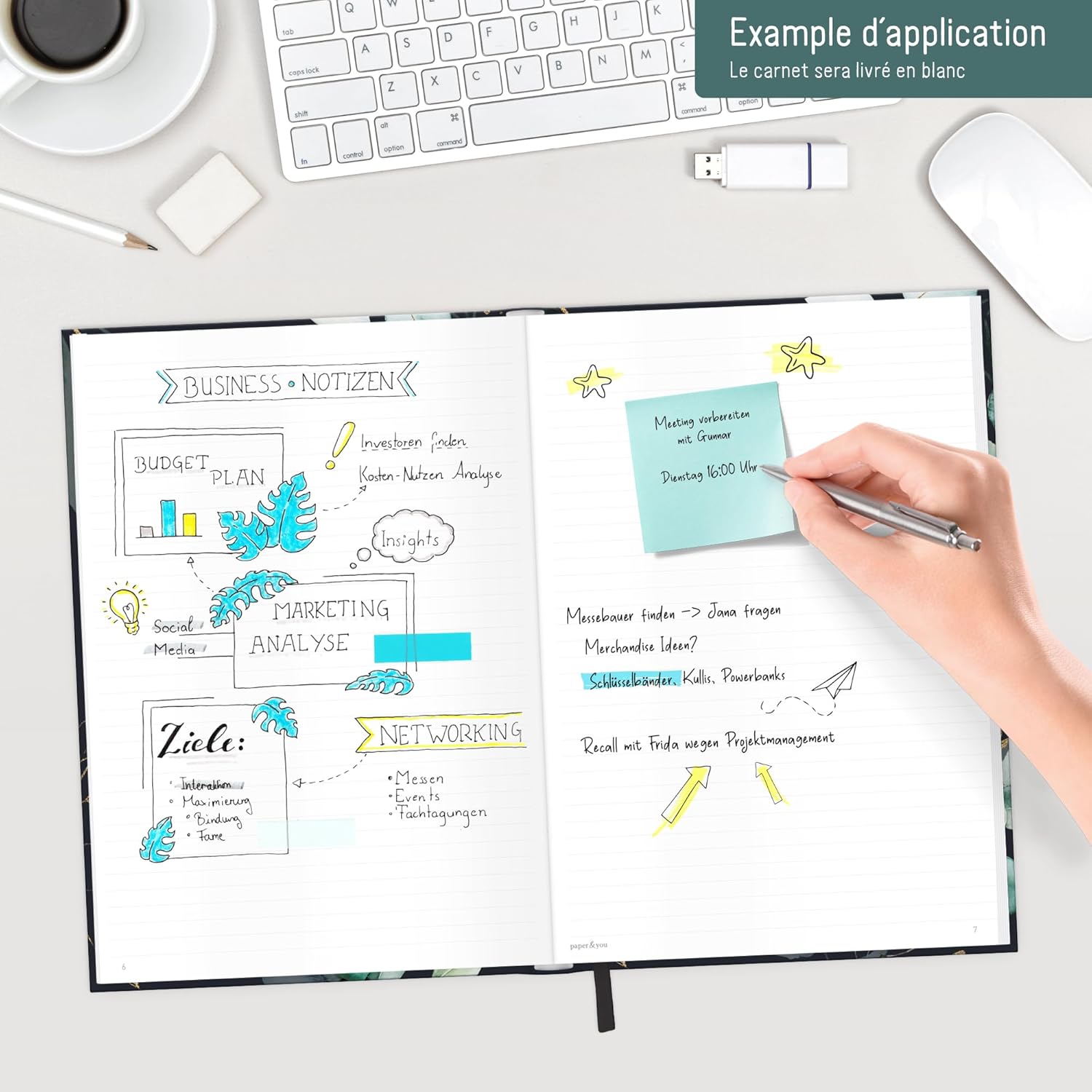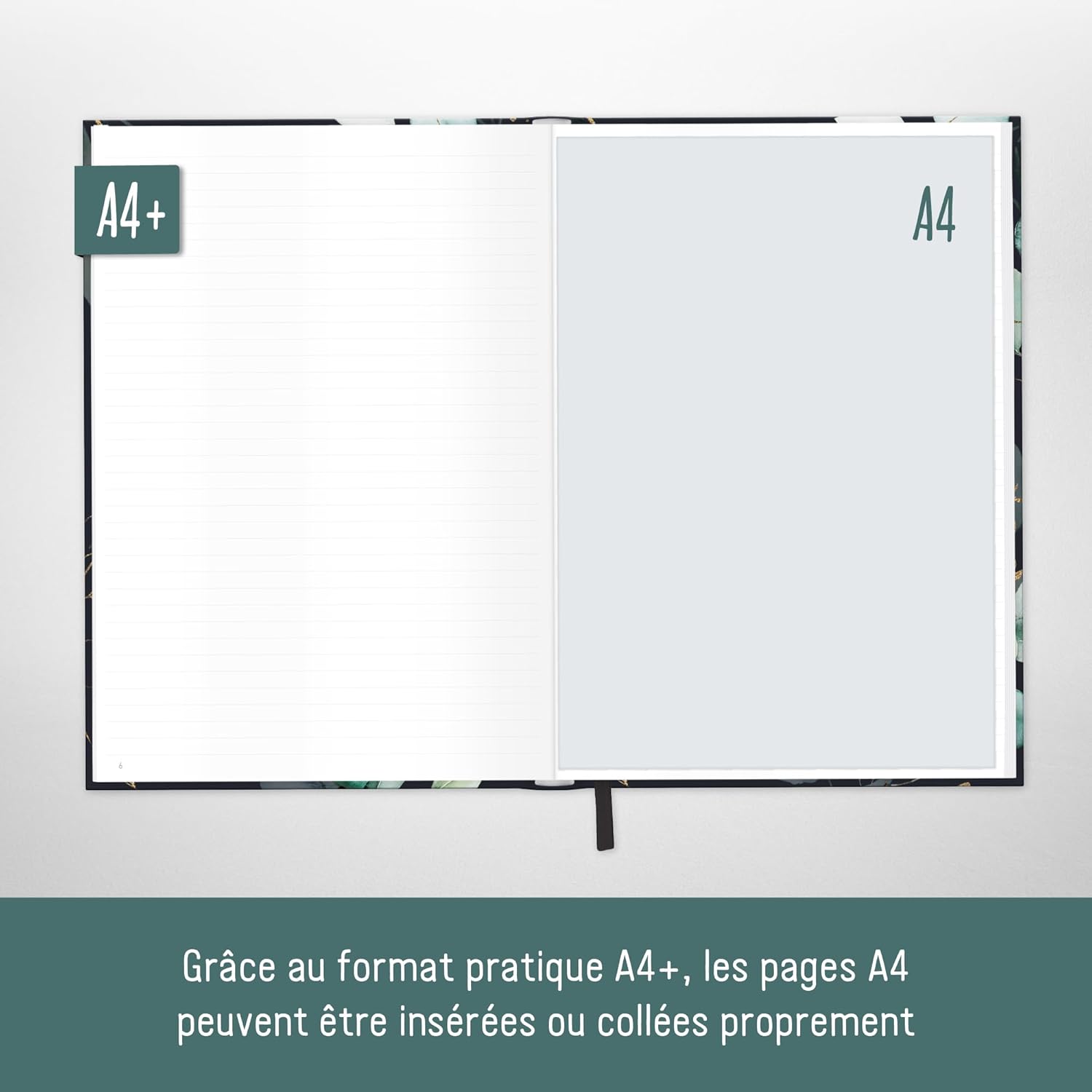 GRANDE NOTEBOOK A RIGHE A4+ - Da Häfft-Verlag con 156 pagine numerate (78 fogli), un nastro da lettura e un elastico per appunti di ogni tipo, cose da fare, obiettivi, piani e pensieri - sempre con te e a portata di mano quando i fiori dell'annuncio! SOSTENIBILE E RISPETTOSA DEL CLIMA - Prendi appunti tanto quanto i fiori amano l'ambiente, la nostra carta premium da 100 g/m² è certificata FSC (FSC N004440) e stampata in modo rispettoso del clima. UN COMPAGNO FEDELE - La copertina flexo, flessibile e resistente, combina le migliori caratteristiche della copertina rigida e della copertina morbida, è resistente agli schizzi e cancellabile. L'intricata rilegatura a filo tiene insieme le pagine in modo sicuro. FAI UN REGALO A TE STESSO E AGLI ALTRI - Ottimo per te stesso o come regalo carino - quindi dimentica lo smartphone e prendi delle penne! Perché gli studi hanno dimostrato che la scrittura a mano è più creativa e rimane nella memoria più a lungo. DIVERSI DISEGNI - Ce n'è per tutti i gusti e bello da collezionare: quaderno nel generoso formato A4+ (formato esterno: 30,8 x 22,1 cm, parte interna: 30,5 x 21,5 cm), che consente di inserire fogli A4 senza piegarli.