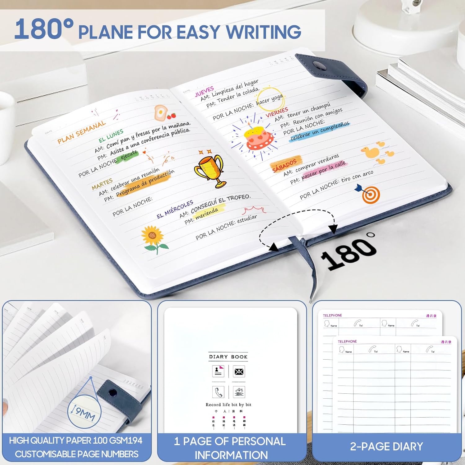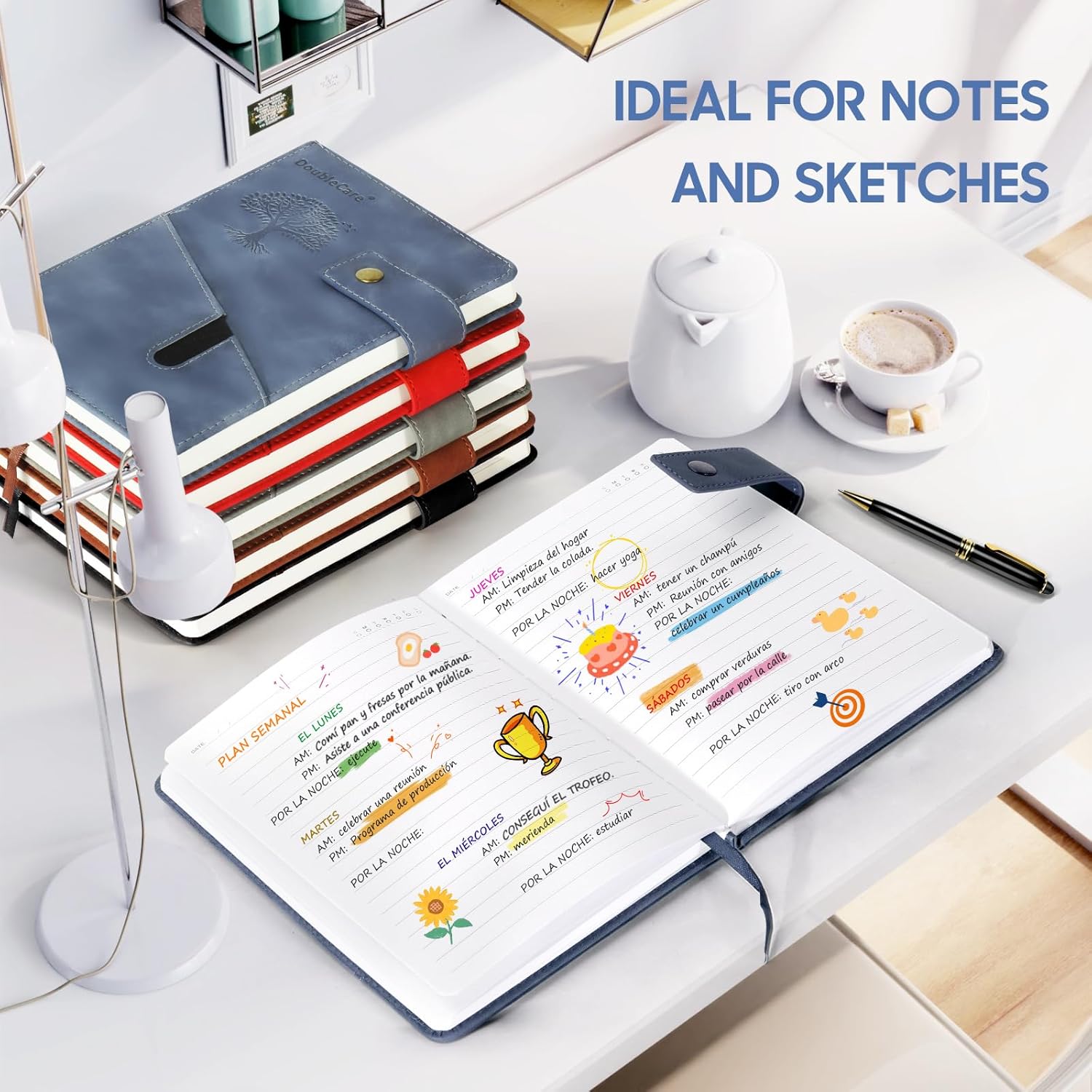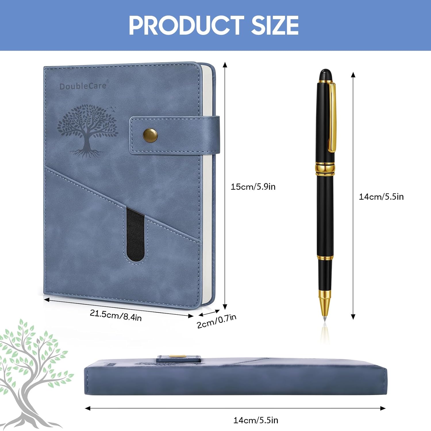 Quaderno in pelle vintage con albero della vita: questo quaderno A9 è ideale per viaggi d'affari, studio, tempo libero, appunti professionali, imprenditori e studenti. L'Albero della Vita simboleggia la vita eterna, la forza, la tenacia e l'eternità. Non importano le difficoltà o gli ostacoli, puoi sempre affrontarli con forza. Custodia espandibile: questo taccuino con copertina rigida in pelle vegana di alta qualità è realizzato in pelle PU che cambia colore di alta qualità, morbida e piacevole al tatto, robusta e durevole. La sua custodia unica lo distingue dai normali quaderni con copertina rigida. Non solo ha un aspetto elegante, ma può anche contenere telefoni cellulari, penne, appunti e altri oggetti. Il suo design estensibile impedisce anche la caduta di oggetti. Configurazione Deluxe: questo quaderno con copertina rigida è dotato di una penna in metallo con cappuccio per una facile presa e il suo design rotante lo rende facile da usare e scrivere. Inoltre viene fornito con un simpatico segnalibro a nastro per contrassegnare e tracciare facilmente. La chiusura nascosta garantisce una chiusura ermetica, protegge il contenuto e impedisce alla carta di sgualcirsi. È lo strumento ideale per annotare le tue idee preziose. Carta di alta qualità: questo taccuino a righe è realizzato in carta bianco avorio di alta qualità, 80 g/m², 100 fogli/200 pagine, con interlinea di 13 mm. Questa carta spessa, liscia e resistente alle sbavature ti offre un'esperienza di scrittura fluida e piacevole. Le pagine interne includono anche una pagina di informazioni personali e due pagine di rubrica, così puoi facilmente organizzare e trovare le informazioni che hai. Regalo ideale: il quaderno a righe con motivo "Albero della vita" è ideale per genitori, famiglia, parenti, amici, ragazzi, ragazze, insegnanti, studenti, medici, impiegati, uomini d'affari, scrittori e giornalisti. È anche un regalo ideale per l'ufficio, la scuola, i viaggi e qualsiasi altra occasione (Natale, compleanni, lauree, Ringraziamento, ecc.).