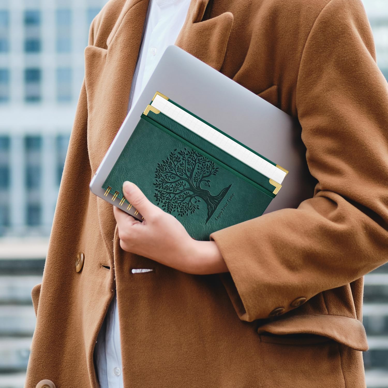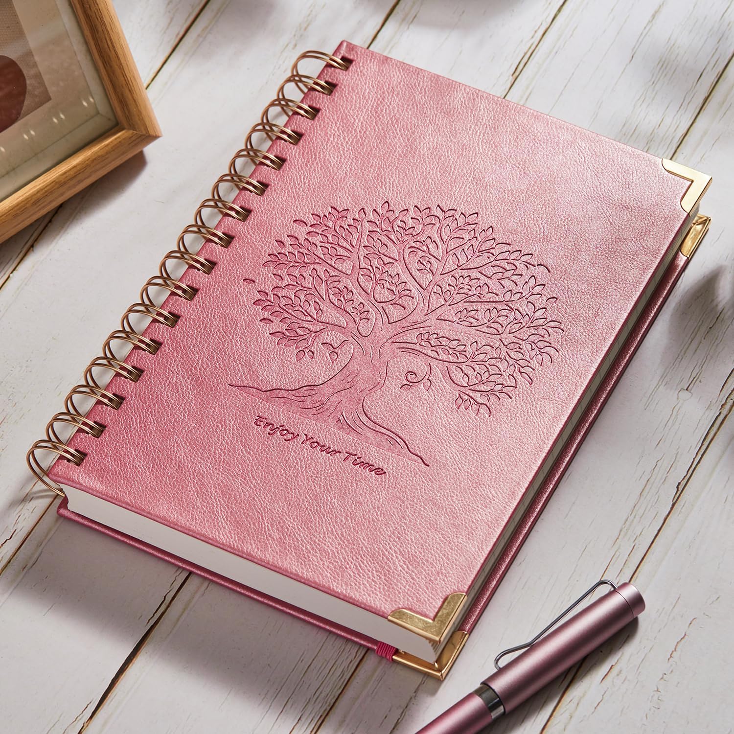 Questo quaderno a spirale A5 (dimensioni: 14,7 x 21 cm) presenta un bellissimo disegno stampato "Albero della vita", che simboleggia la crescita, la saggezza e la connessione con la natura, rendendolo un compagno perfetto per diari e appunti. La copertina rigida in pelle sintetica è morbida e confortevole al tatto, con paraspigoli in metallo per proteggere efficacemente le pagine interne del notebook. Il taccuino utilizza 300 pagine/150 fogli (incluse 6 pagine di contenuto) di carta a righe di alta qualità da 100 g/m², che non sbava e non presenta immagini fantasma. Il taccuino a righe da 7,5 mm, la carta bianco avorio non è abbagliante e offre una piacevole esperienza di scrittura. Ogni pagina ha un'intestazione della data per una facile registrazione della data. La robusta rilegatura in metallo a doppio filo consente di ruotare il taccuino di 360 gradi o di appiattirlo per scrivere, rendendo la scrittura più semplice, la lettura più comoda e la presa di appunti più efficiente. Anche se la pagina è strappata, non si allenterà né cadrà. Il design a spirale in metallo può essere utilizzato anche come portapenne per posizionare le penne. Il taccuino con copertina rigida è progettato con una fascia elastica di chiusura per chiudere saldamente il taccuino. Il diario è dotato di una tasca interna per mappe, foto e altri oggetti. Il taccuino può essere utilizzato come diario o blocco note per studiare, lavorare, disegnare, fare schizzi e prendere appunti. Perfetto per l'ufficio, la scuola e la casa per prendere appunti e mantenere il lavoro organizzato. L'estetico quaderno a spirale A5 è perfetto per donne, uomini, studenti, professionisti, viaggiatori e altro ancora. Un'ottima scelta regalo per compleanni, festa della mamma, festa del papà, Ringraziamento, Halloween, Natale, ritorno a scuola e lauree. Se si verificano problemi di qualità con il notebook ricevuto, ti forniremo un rimborso completo o una sostituzione. Siamo al vostro servizio 7 x 24 ore.
