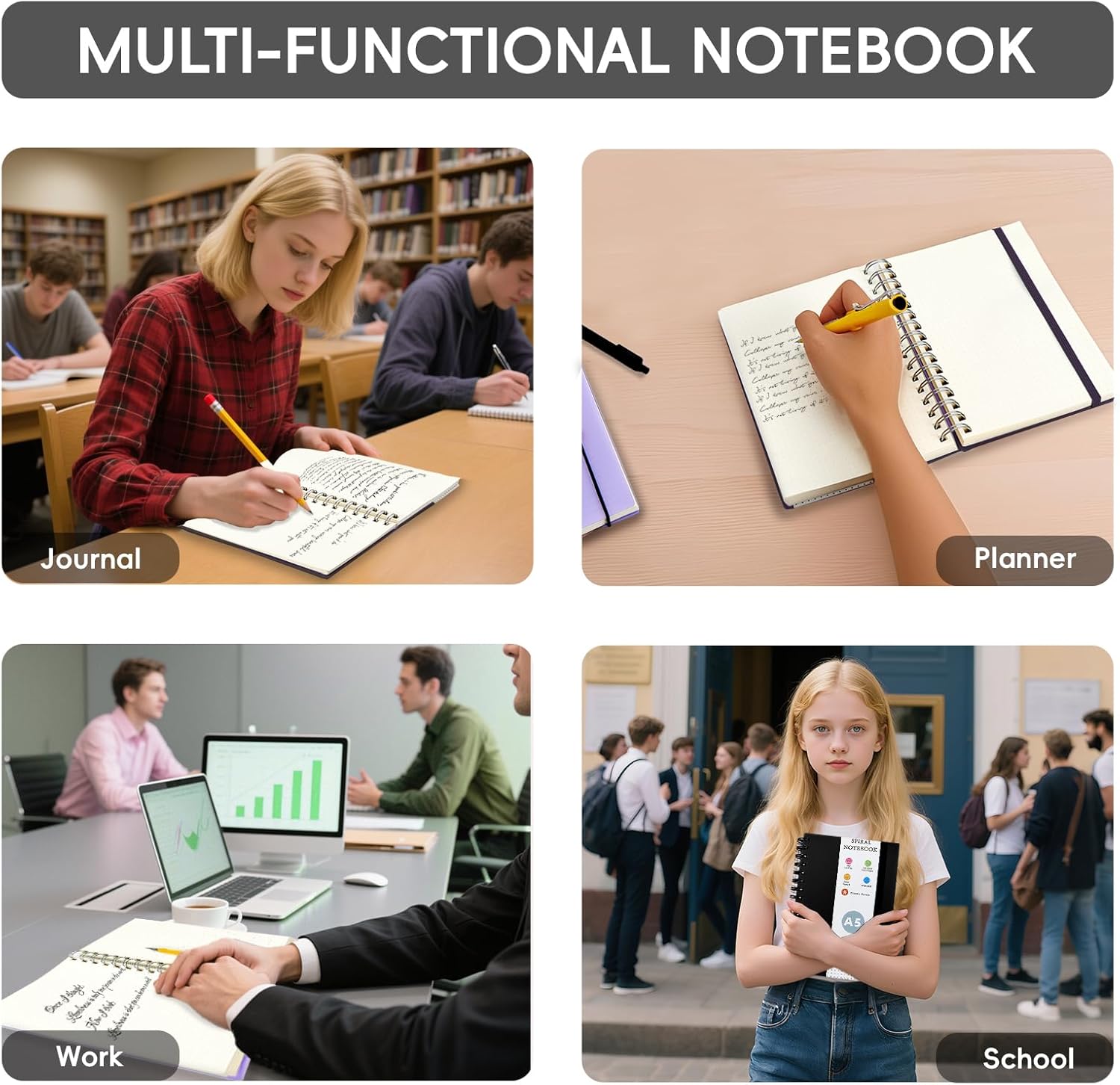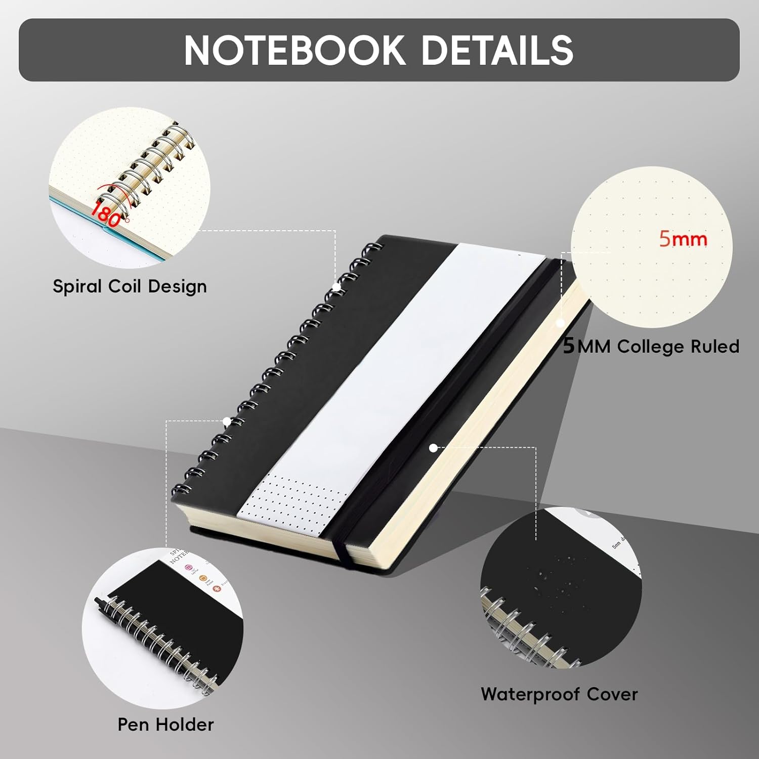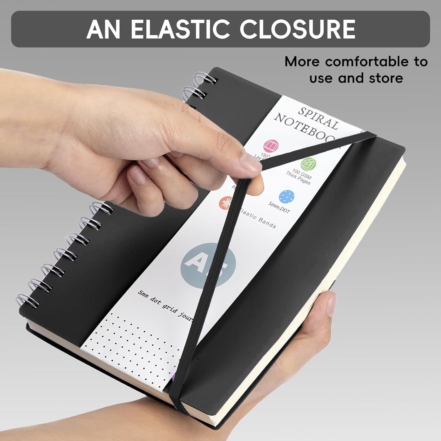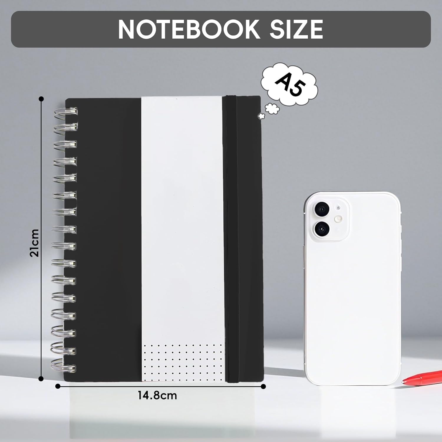 PIÙ PAGINE: quaderno A5 (148 x 210 mm). Ogni quaderno a spirale contiene 150 fogli (300 pagine) con pagine a pois. La carta liscia e di alta qualità (100 g/m²) si adatta perfettamente a matita e penna senza sbavare. RILEGATURA A SPIRALE: la resistente spirale in metallo facilita la rotazione delle pagine. Si piega a 360° o 180° per un comfort di scrittura ottimale, ideale per l'utilizzo su qualsiasi superficie. COPERTURA DUREVOLE: questo taccuino a pois ha una robusta copertina rigida che protegge le pagine interne da eventuali danni, perfetta per l'uso quotidiano intenso. PIÙ COLORI: design minimalista ed elegante. Disponibile in rosa, viola, blu, verde e nero. Trova il colore che preferisci per il tuo materiale scolastico o per l'ufficio! VERSATILE: questo quaderno a spirale A5 offre ampio spazio per prendere appunti, pianificare e inserire nel diario. Ideale per studenti (scuole medie e superiori), università, lavoro, viaggi (taccuino da viaggio) o per l'uso quotidiano. Perfetto come diario, agenda, blocco note di studio e quaderno.