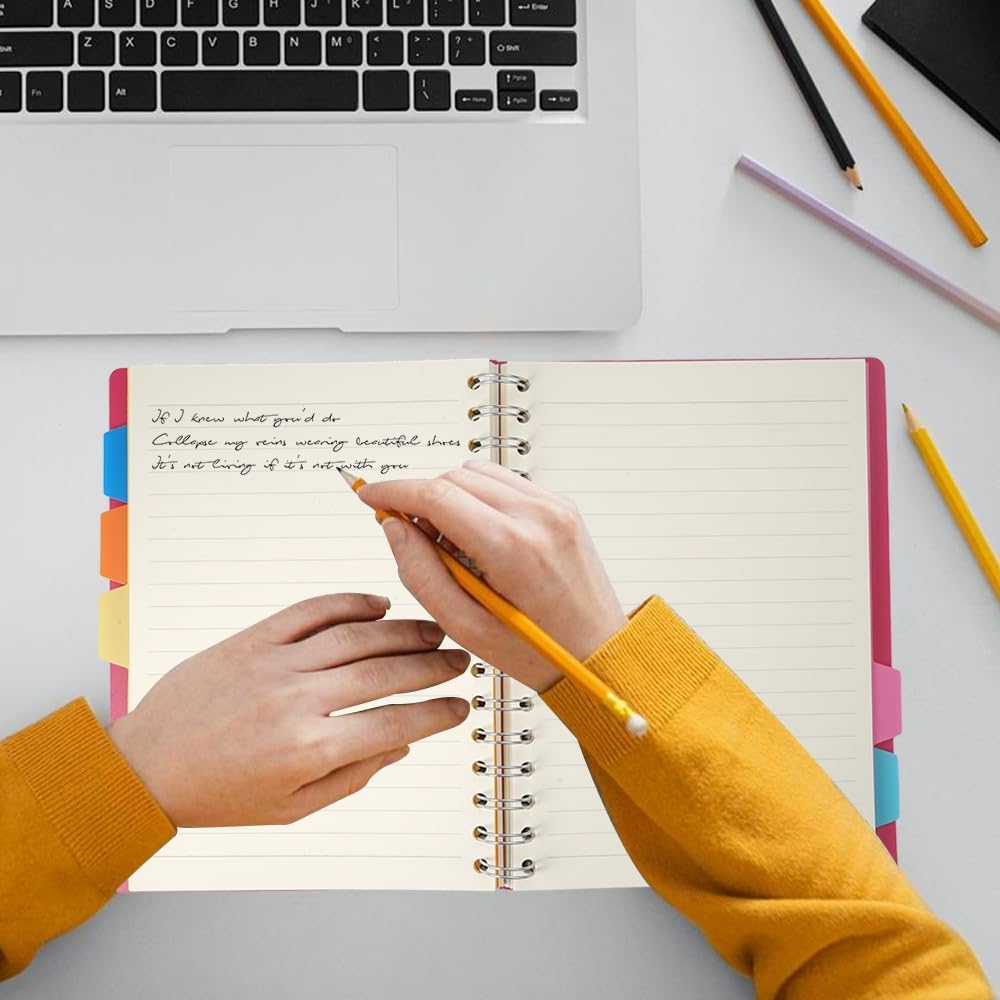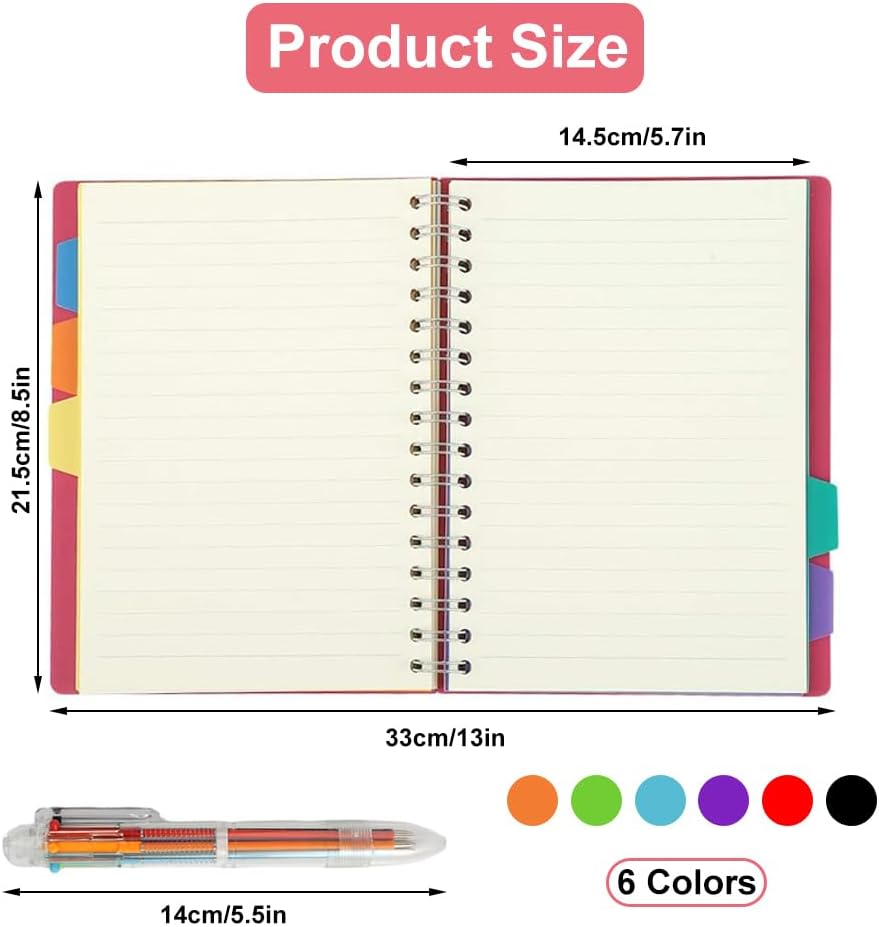 MATERIALE PREMIUM: La copertura è realizzata in carta rigida impermeabile che fornisce una protezione perfetta ed è facile da pulire. La carta di alta qualità non sbava sulla maggior parte degli inchiostri e delle penne. Ogni taccuino A5 viene fornito con una penna. Puoi cambiare il colore della penna in qualsiasi momento mentre scrivi. MATERIALE PREMIUM: La copertura è realizzata in carta rigida impermeabile che fornisce una protezione perfetta ed è facile da pulire. La carta di alta qualità non sbava sulla maggior parte degli inchiostri e delle penne. Ogni taccuino A5 viene fornito con una penna. Puoi cambiare il colore della penna in qualsiasi momento mentre scrivi. BELLISSIMO DESIGN: il blocco note A5 può essere piegato a 180° o a 360°, molto facile da usare; il quaderno A5 sta in qualsiasi borsa o zaino, puoi portarlo con te e prendere appunti in ogni momento. REGALO PERFETTO: quaderni a spirale belli e pratici, adatti per la festa dei bambini, il compleanno, il Natale per i bambini, aiutano i bambini a imparare e memorizzare meglio; adatto come quaderno da viaggio, quaderno da lavoro, diario, regalo ideale per amici e parenti. UTILIZZO VERSATILE: perfetto per prendere appunti durante le riunioni, catturare idee, progetti o registrare informazioni importanti. Puoi utilizzare il quaderno a spirale A5 per scrivere e progettare i tuoi piani, registrare i tuoi viaggi ed esperienze o tenere un diario nella tua vita quotidiana.