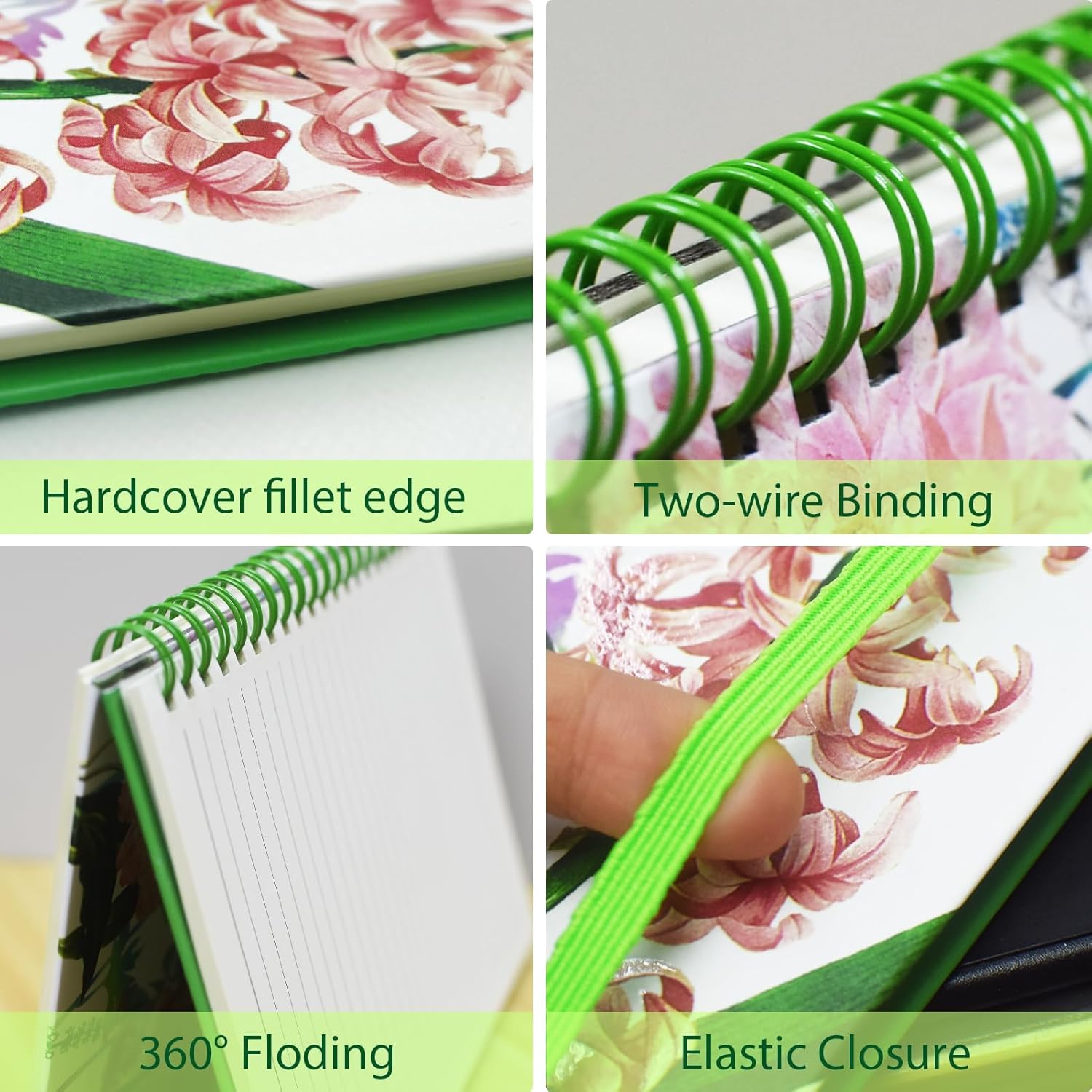 4 pratici quaderni a spirale A5 - Questo set di 4 quaderni a spirale A5 presenta un design elegante, con ogni modello con un motivo diverso per una facile identificazione. Ideale come quaderno A5 per l'uso quotidiano, scolastico o professionale. Regalo elegante: regala questo pacchetto di quaderni a spirale A5 a righe per gli amanti dello stile e della funzionalità. Il nostro quaderno A5 è il regalo ideale per compleanni, successi o momenti speciali Pagine pratiche - 160 pagine a righe in questo quaderno a spirale A5, con chiusura ad elastico. Perfetto per appunti, schizzi o elenchi Dimensioni compatte: misura 21x14,5 cm, questo leggero taccuino A5 può essere facilmente riposto in una borsa. Il tuo quaderno a spirale A5 per tutte le idee Robustezza professionale - Copertina rigida e spirale in metallo per questo quaderno A5, che ti consente di strappare le pagine in modo ordinato