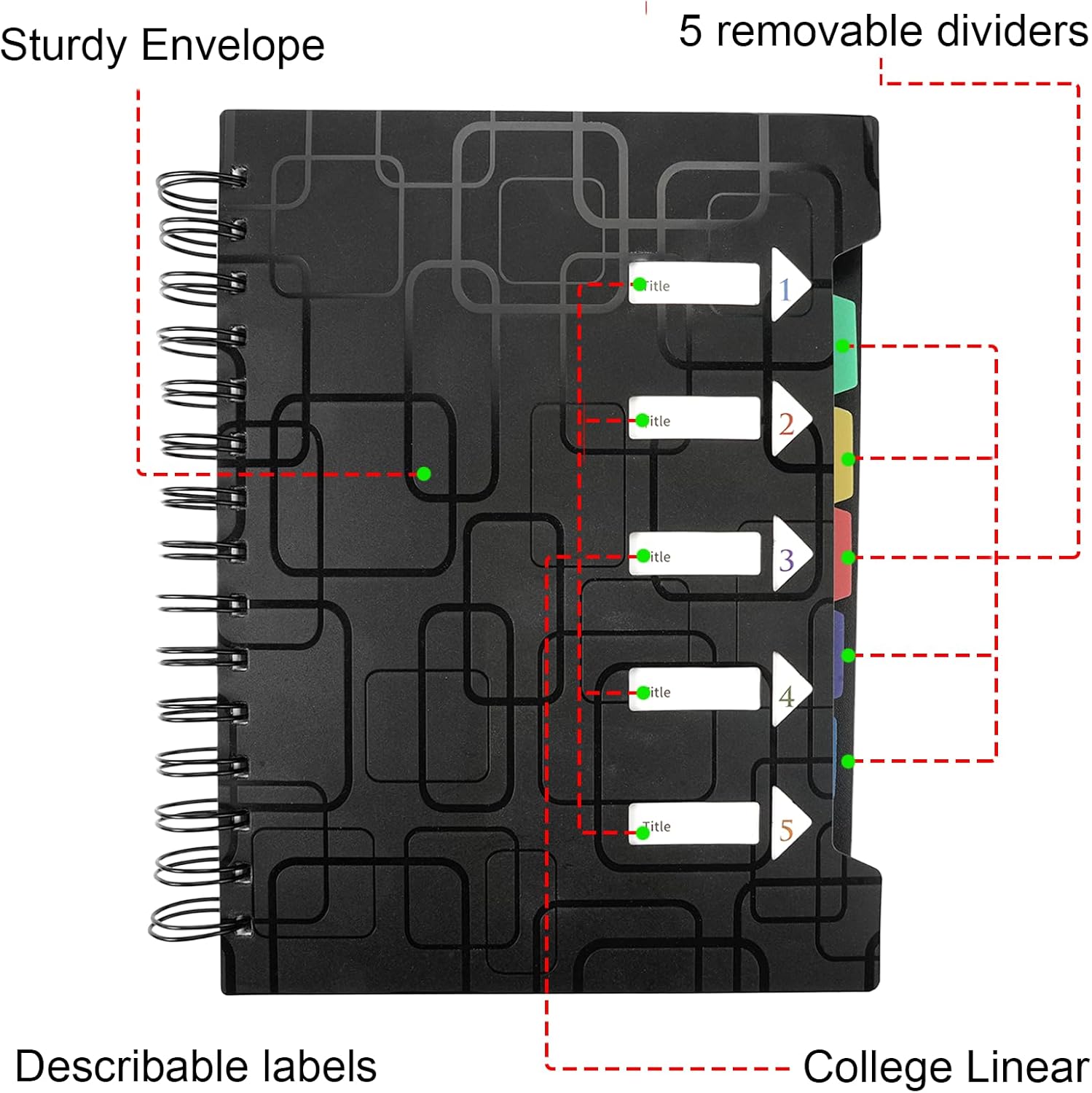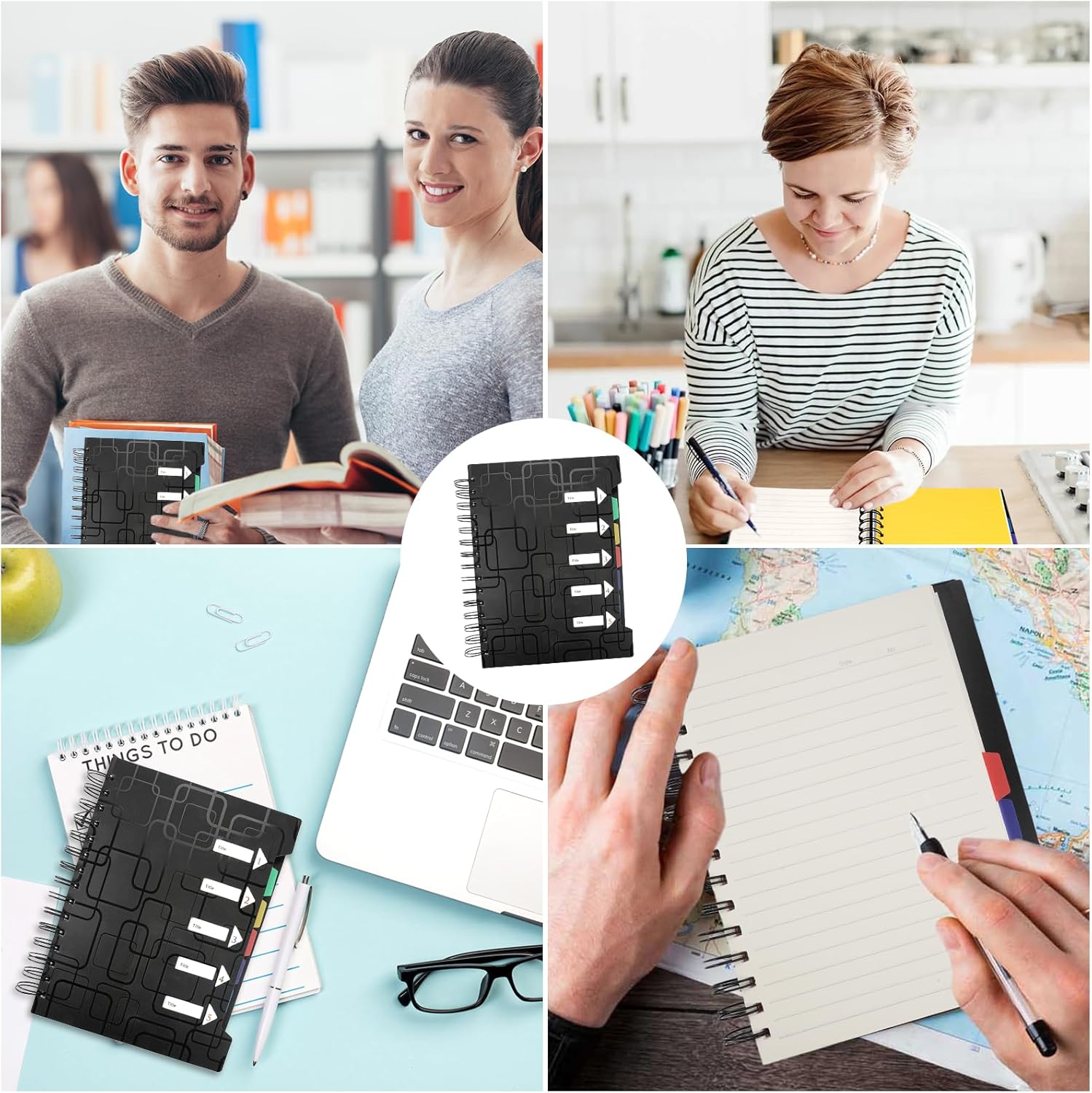 ✔ 【Dimensioni Perfette】 Ogni quaderno a righe misura 21 x 15,8 x 1,6 cm/8,27 x 6,22 x 0,63 pollici, 120 fogli/240 pagine in totale. Il diario A5 ha pagine interne a righe con molto spazio per scrivere bozze o appunti. ✔ 【Realizzato con carta di alta qualità】 Il raccoglitore per notebook è realizzato con carta di alta qualità e stampato su entrambi i lati. La copertina rigida in PP è resistente all'acqua e impedisce che le pagine interne si sporchino o si sgualciscano. La spirale a doppio filo è un robusto blocco note innovativo che impedisce la fuoriuscita di inchiostro. ✔ 【5 scomparti per un facile accesso】 Il quaderno A5 con 5 soggetti è composto da 5 diverse linguette di separazione dei colori, facili da distinguere. I marcatori colorati dei numeri di pagina all'interno del taccuino a spirale aiutano a classificare i tuoi appunti e a mantenerli in ordine, il che può aiutarti a etichettare diversi documenti e renderli facili da trovare. ✔ 【Registrazione comoda】 I foglietti A5 a spirale possono scrivere pensieri, appunti e idee di brainstorming in modo chiaro e fluido o aggiungere colore ai tuoi disegni, facili da trovare, studiare e ricordare. I quaderni per progetti a spirale sono perfetti per insegnanti di scuola, studenti, ragazze, donne in ufficio e lezioni di viaggio, appunti di riunioni o diari o pensieri ispiratori. ✔ 【Regalo ideale】 I quaderni a spirale del blocco note del diario del taccuino possono essere utilizzati come taccuino da viaggio, taccuino aziendale, diario. Con un design interno classico e pratico, il taccuino foderato per appunti da viaggio è ideale come regalo di compleanno, regalo di ritorno a scuola, regalo di laurea, regalo di viaggio per famiglia, amici e colleghi.