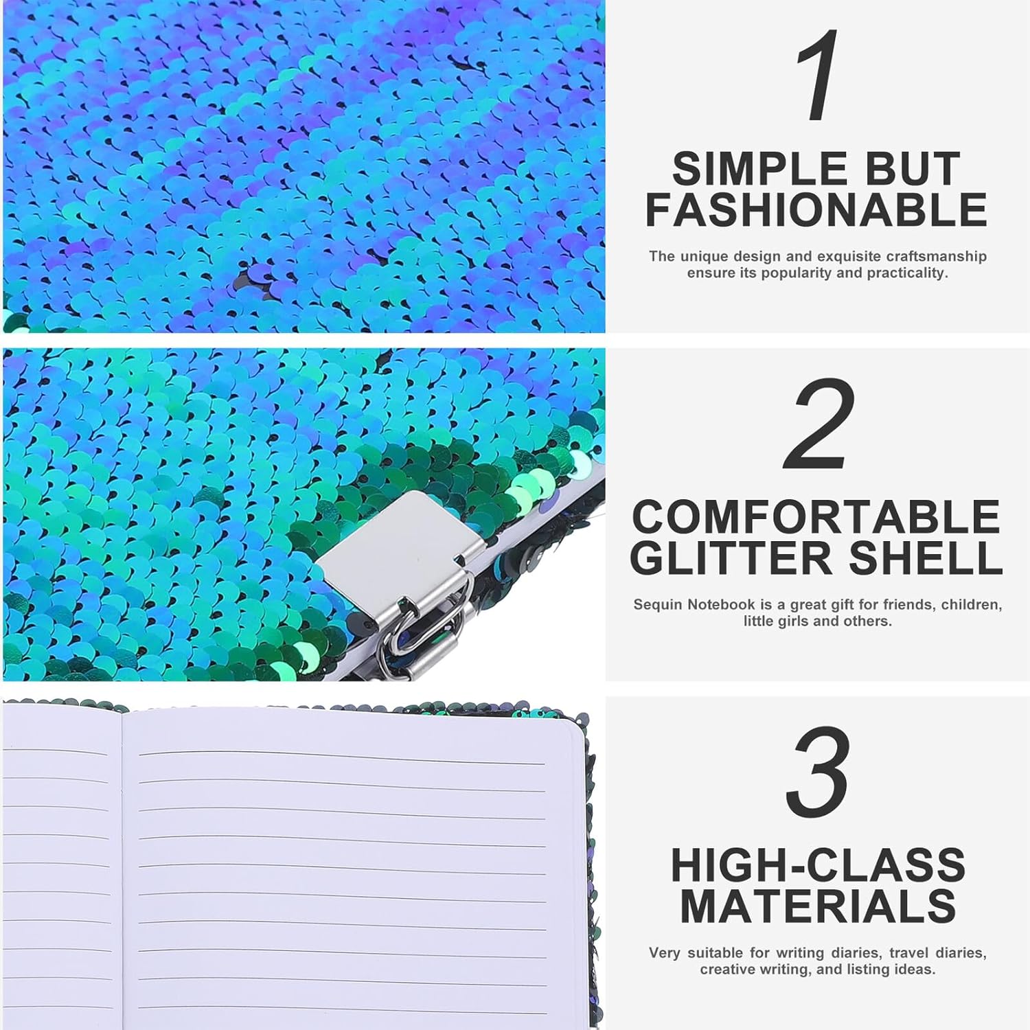 Quaderni carini: l'adorabile quaderno glitterato è davvero un'ottima idea per diverse occasioni. Diversi modelli possono essere creati lanciando paillettes, graziosi quaderni scolastici Grazioso quaderno - puoi usare questo quaderno per registrare il tuo piano settimanale, piano mensile, diario ecc., quaderno scolastico Bellissimo blocco note - carta liscia, puoi scrivere le tue meravigliose esperienze in questo quaderno, blocco note Diario blocco note - design con serratura, questo quaderno con paillettes è anche pensato per aiutare i bambini a sviluppare buone abitudini, quaderno carino Graziosi quaderni per la scuola - con una copertina in paillettes, questo quaderno sembra abbondante e adorabile, un bel regalo per le ragazze, adorabile quaderno con paillettes