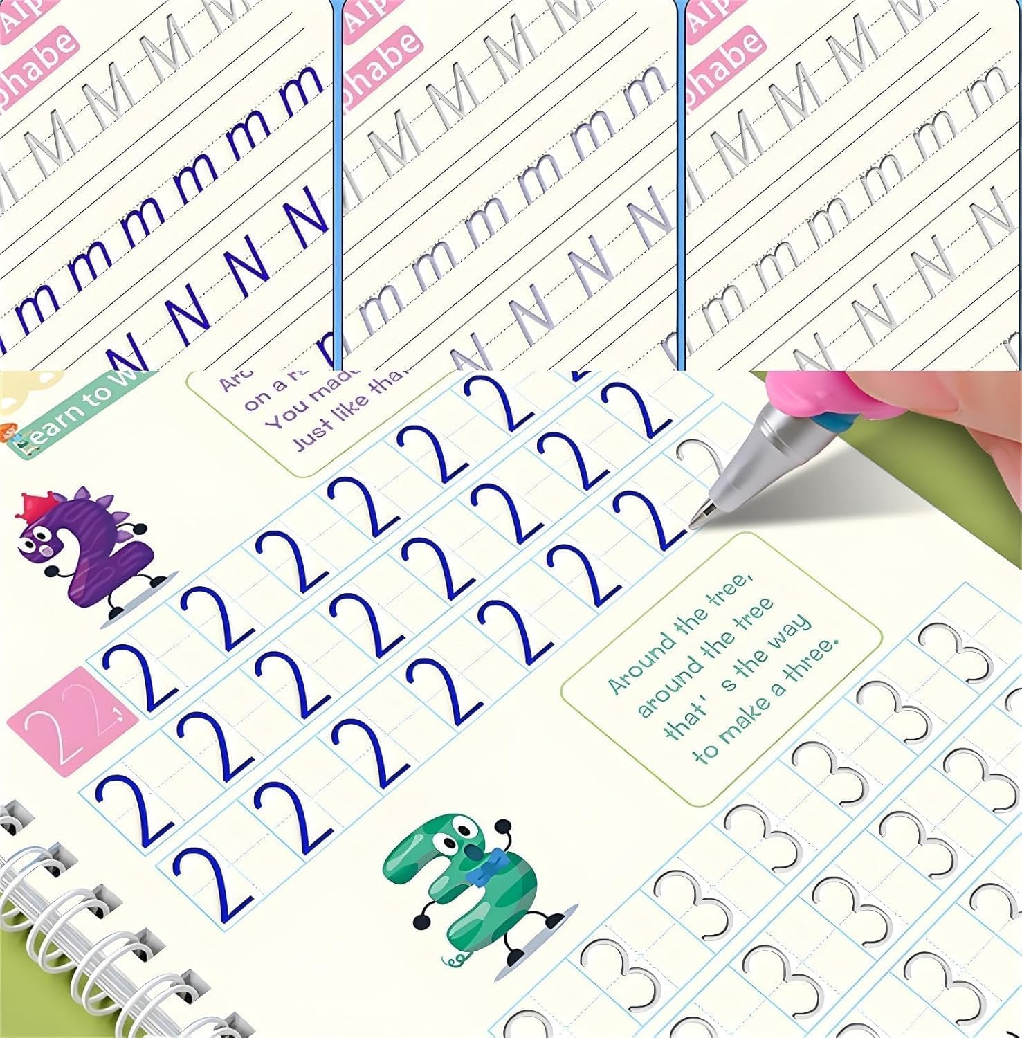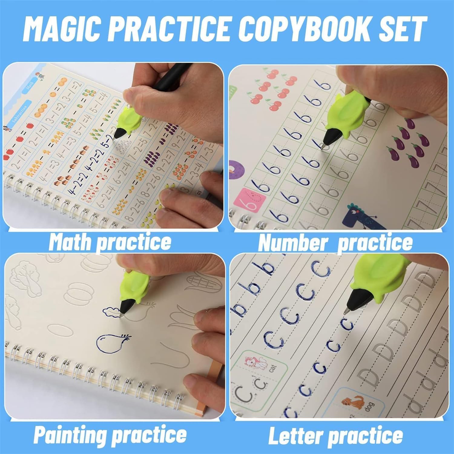 Quaderno di esercizi con scanalature magiche: i libri di esercizi magici per bambini consentiranno alla scrittura, alla matematica, alle capacità motorie e alle capacità di apprendimento generale di tuo figlio di migliorare notevolmente in una sola settimana. Inchiostro cancellabileLe caratteristiche distintive di questo quaderno di esercizi sono l'uso di inchiostro cancellabile. Il quaderno presenta linee di tracciamento scanalate che svaniscono magicamente dopo l'asciugatura, consentendo ai bambini di esercitarsi ripetutamente con la scrittura a mano senza sprecare carta. Contenuto ricco: questo quaderno di esercizi Magic Grooved contiene 26 lettere dell'alfabeto, parole di tutti i giorni, numeri da 0 a 100, semplici addizioni e sottrazioni. Progettato per migliorare le capacità di scrittura a mano, questo libro aiuta i bambini a sviluppare il riconoscimento delle lettere, il controllo della penna e le capacità motorie fini in modo interattivo. Sviluppo delle capacità: il quaderno di esercizi di scrittura a mano aiuta il tuo bambino a sviluppare la sua curiosità e motivazione a colorare, disegnare e imparare lettere, numeri, matematica e parole in modo indipendente. Strumento didattico educativo: i libri magici aiutano il tuo bambino a iniziare con matematica, scrittura a mano, capacità visive, capacità motorie, disegno e capacità di apprendimento generale, perfetti per i bambini.