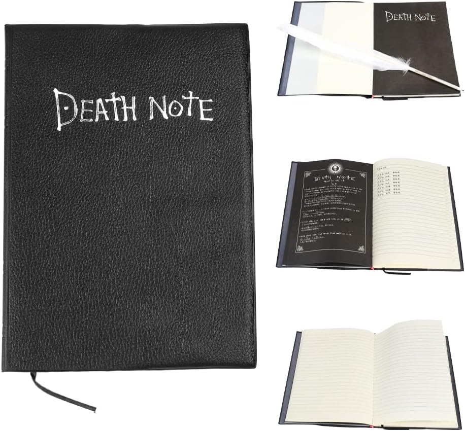[Confezione originale]: il taccuino Death Note nero è confezionato nella confezione originale giapponese, appositamente progettata per i fan fedeli. Questo è un regalo di San Valentino perfetto per i cosplayer. [Alta qualità]: il quaderno Death Note è realizzato in pelle PVC, morbida e confortevole. È molto comodo attaccare con un ago. Il taccuino Death Note è spesso, resistente e non si danneggia facilmente. [Ampio utilizzo]: può essere utilizzato come quaderno da disegno, blocco note, diario, blocco note, blocco note per riunioni e la calligrafia è ben organizzata e facile da leggere. [Miglior regalo]: Death Note è anche un regalo ideale o un accessorio per il rientro a scuola per tutti i fan di Death Note. È un diario e un taccuino ideali e il miglior regalo per gli amici. [La confezione include]: 1 penna stilografica, 1 libro della morte, 1 collana. Se non sei soddisfatto dei nostri prodotti, non esitare a contattarci.