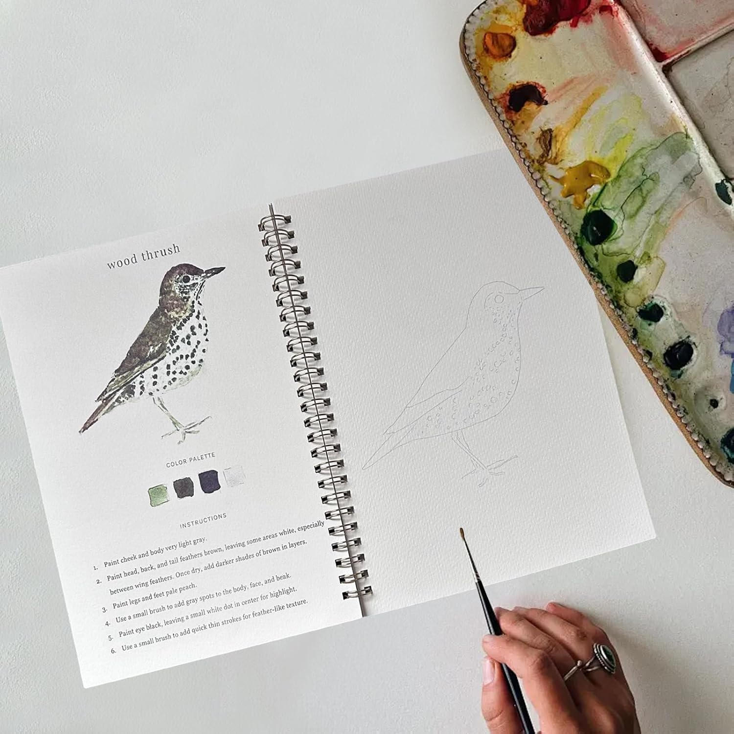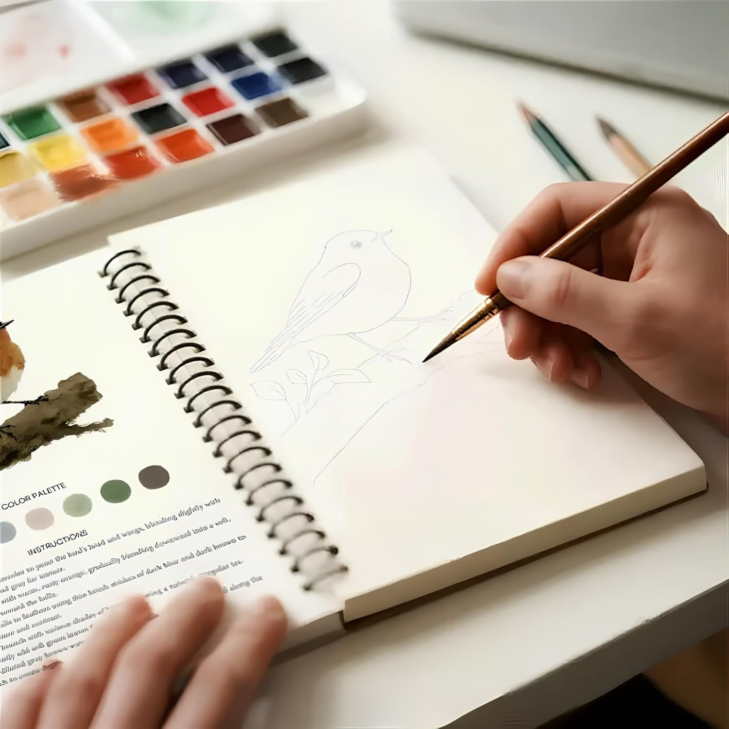 Ottimo per Tutti i Livelli di Abilità: Questo quaderno di acquerelli presenta 12 illustrazioni di uccelli leggermente abbozzate e passaggi facili da seguire, rendendolo ideale sia per principianti che per artisti esperti che vogliono migliorare le proprie capacità. Rilegatura a Spirale Pratica: Il quaderno di pittura è progettato con una comoda rilegatura a spirale che permette alle pagine di restare completamente aperte, garantendo un'esperienza di pittura fluida e senza interruzioni. Carta per Acquerello di Alta Qualità: Ogni pagina di questo set di pittura ad acquerello è realizzata con carta spessa che non sanguina e resiste alla deformazione. Perfetta per sovrapposizioni e miscelazioni di colori, offre la libertà di sperimentare e creare opere d'arte meravigliose con facilità. Quaderno di Pratica per Acquerelli: Questo quaderno è stato meticolosamente progettato per i principianti, aiutandoli a immergersi senza difficoltà nel mondo della pittura ad acquerello. Seguendo le istruzioni passo passo, creerai rapidamente splendide opere d'arte. Formato Portatile e Comodo: Con dimensioni di soli 16,5 x 23 cm, questo quaderno di disegno per acquerelli è leggero e compatto. Puoi facilmente infilarlo nella tua borsa per dipingere ovunque ti ispiri, a casa, in un caffè o in viaggio.