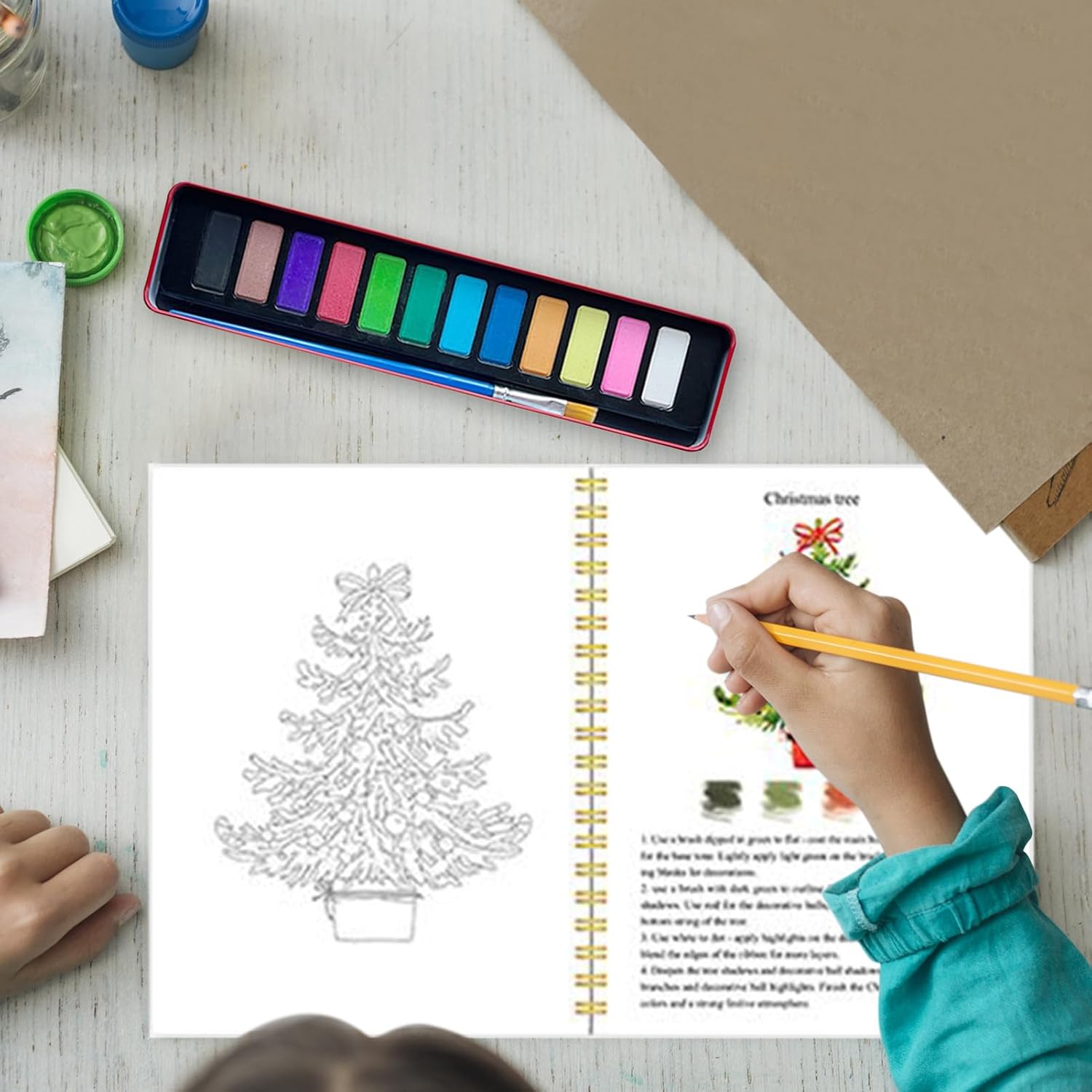 Temi Diversificati: Esplora un'ampia gamma di spunti artistici con temi come fiori e animali, ideali per risvegliare la creatività e migliorare naturalmente le tecniche acquarello attraverso disegni variati che incoraggiano la crescita artistica continua Sviluppo Abilità Facilitato: Tutorial passo dopo passo promuovono progressione costante delle abilità, con contenuti dedicati ai principianti arricchiti da consigli di colorazione per affinare le tecniche in modo efficace Opere pronte per cornici: La carta acquarello professionale resiste al rigonfiamento, mantenendo l'perfettamente piana e ideale per essere incorniciata, elevando l'esperienza creativa Gesti pittorici naturali: Grazie alla rilegatura a che ne facilita l'apertura, questo quaderno d'arte portatile e durevole offre una distribuzione uniforme delle pagine migliorando l'esperienza durante i progetti artistici. Prestazioni dei Pigmenti Ricchi: Transizioni morbide, ottenute con pigmenti eccellenti, assicurano risultati ricchi across 12 tonalità vibranti mentre promuovono sessioni di apprendimento creativo prolungate. La consistenza uniforme facilita la pratica continua.