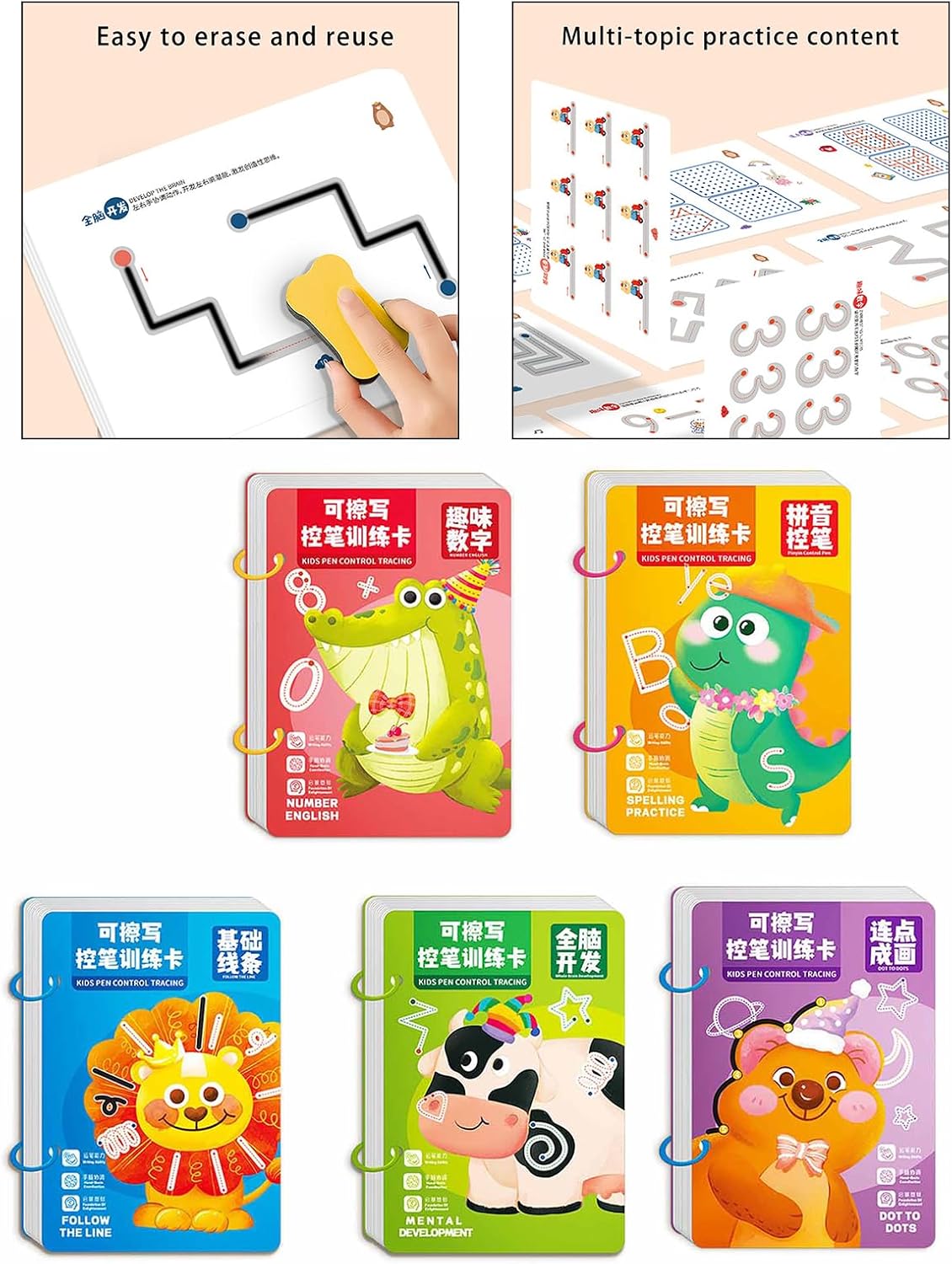 Ideale per i bambini di 3 anni, in particolare per coloro che si preparano per la scuola materna, questo prodotto supporta lo sviluppo educativo precoce Perfetto per l'istruzione domestica, per insegnanti di scuola materna o attività interattive per genitori, consentendo anche di esercitarsi in viaggio Questo set include 4 matite e gomma, usa materiali amichevoli per un uso duraturo Incoraggia la creatività e l'apprendimento con questo coinvolgente giocattolo da disegno, pratica e costruisci un'ottima base per le future capacità di scrittura Migliora la coordinazione della mano dei tuoi bambini e le capacità di controllo della matita con i nostri bambini Libro di illustrazioni per la prima infanzia, disegni riutilizzabili per far imparare ai bambini