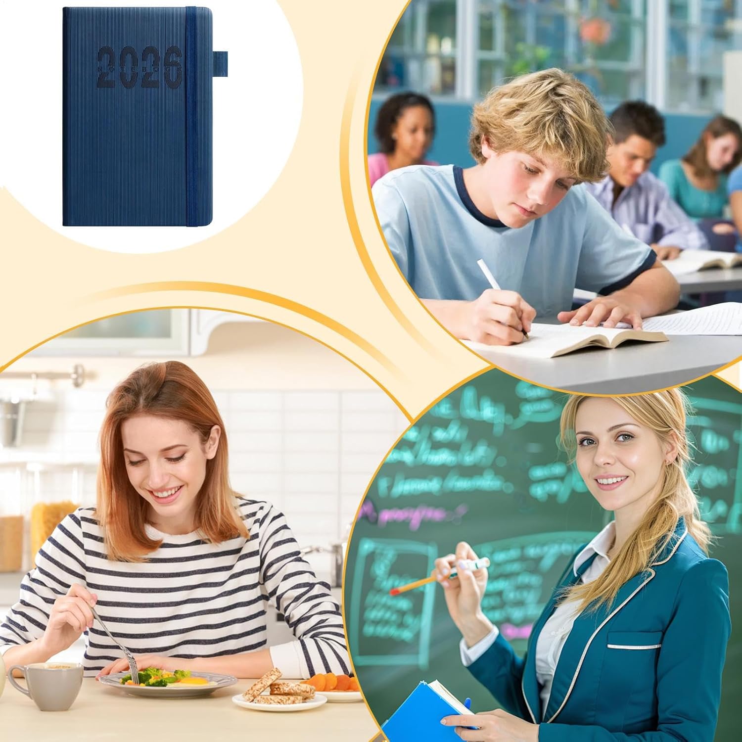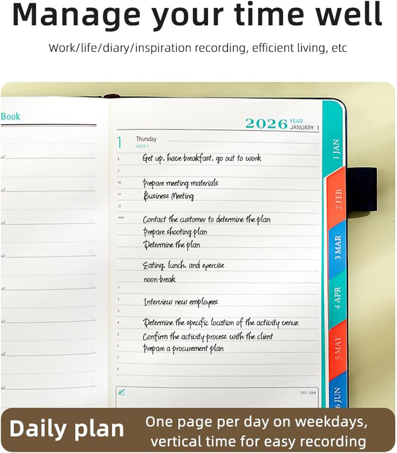 Leggero e portatile: agenda da viaggio in formato A5. La copertina in pelle e la fascia elastica mantengono i tuoi appunti e appuntamenti sempre organizzati. Il design sottile ti consente di riporlo ordinatamente nell'angolo della borsa. Equilibrio tra lavoro e vita privata: ti aiuta a pianificare tutto l'anno con modelli strutturati per giorni feriali/festivi. L'agenda cartacea promuove l'efficienza aziendale e gli obiettivi personali con il monitoraggio delle attività su una pagina Design multifunzionale: agenda innovativa per piani di viaggio e cartelle cliniche. Fornisce usabilità stabile e comodità per rendere la gestione quotidiana più efficiente. Versatile con pagine di consultazione integrate Design in cartone: carta stabile con eccellente comfort di scrittura distribuisce la pressione in modo uniforme. Previene l'affaticamento anche dopo lunghi periodi di scrittura e previene il trasferimento di inchiostro e consente un comodo utilizzo sul retro della pagina. CONVENIENZA PRATICA: la versatilità incontra la moda in questa agenda. Il design classico e sobrio si adatta a gusti diversi e lo rende comodo per l'uso quotidiano. Offre anche un'esperienza di scrittura fluida