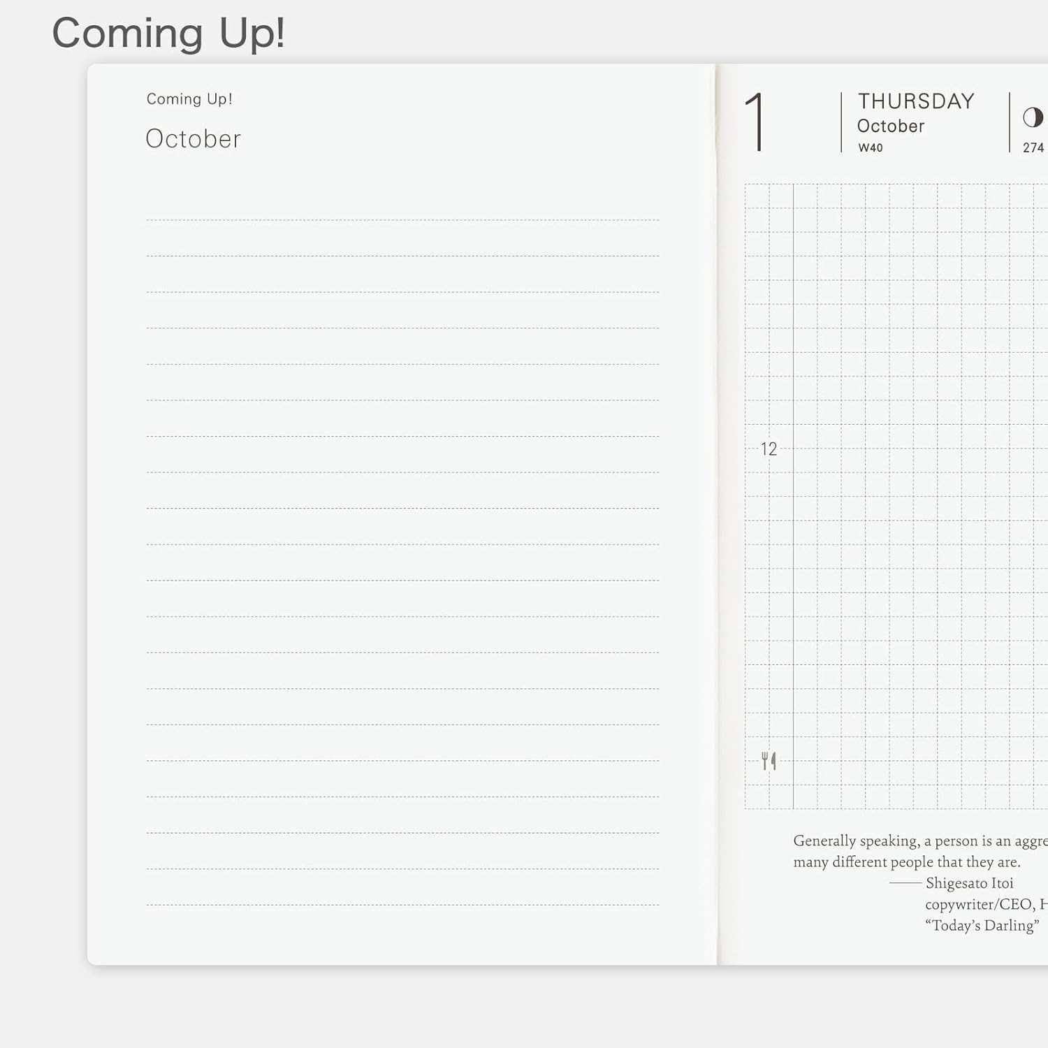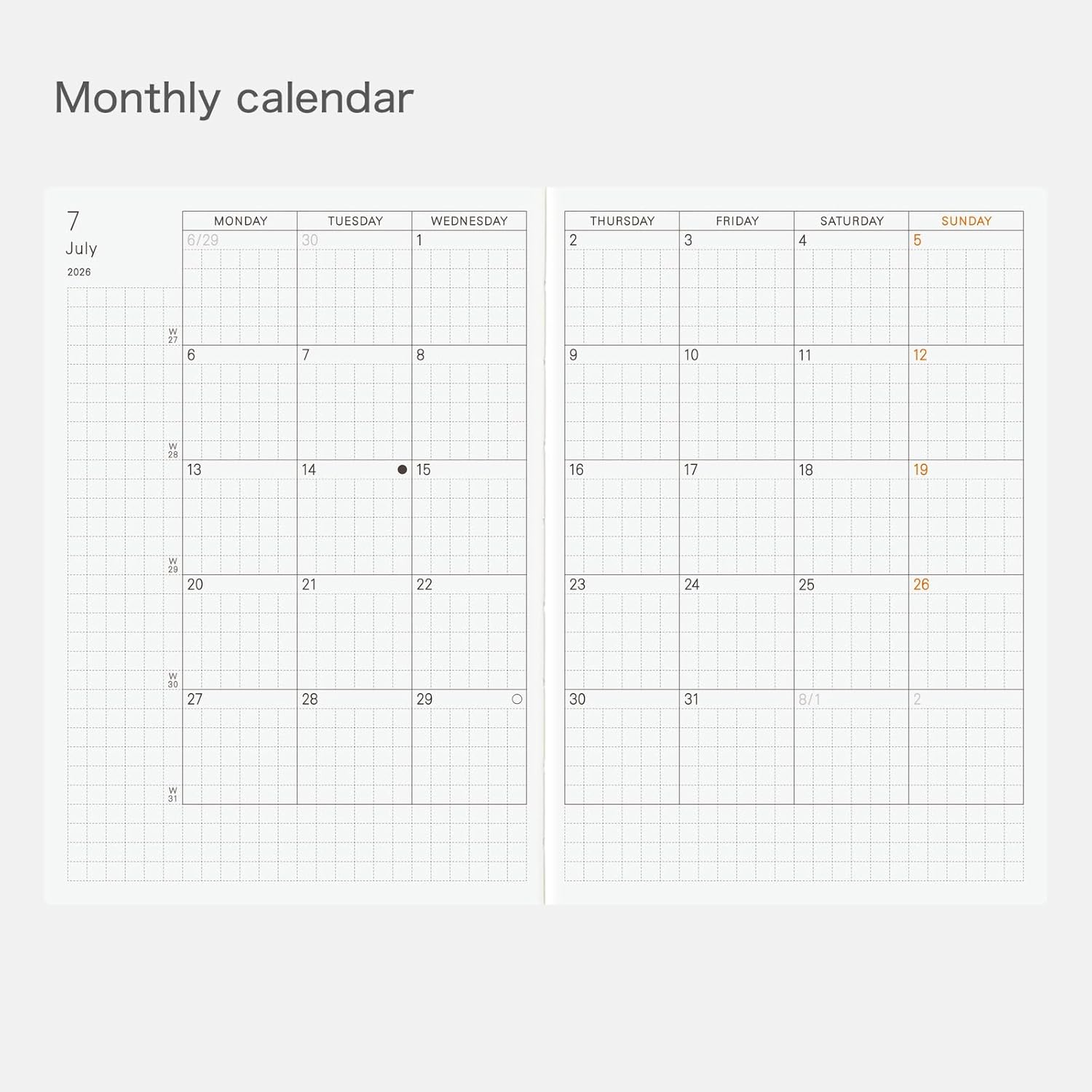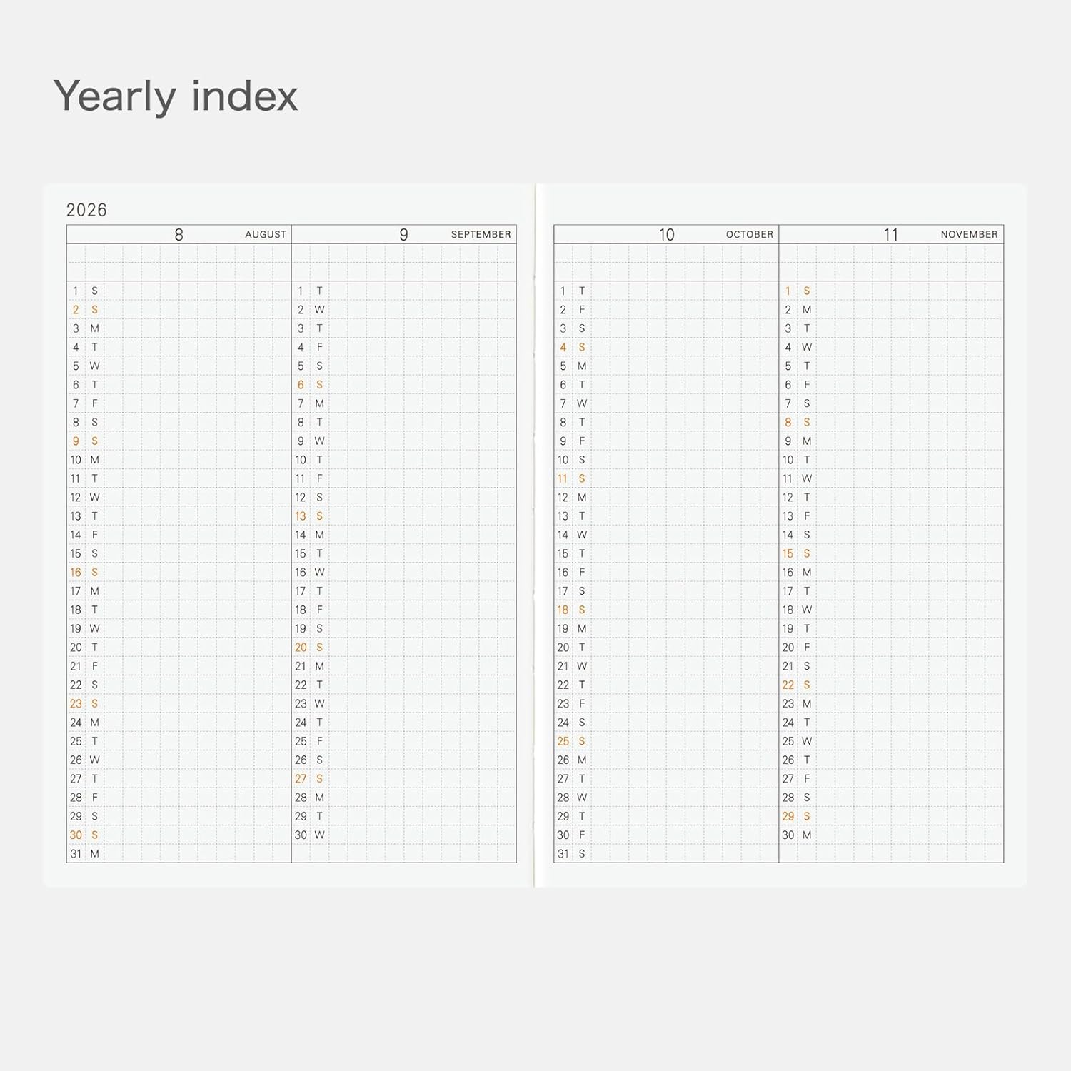 Hobonichi Techo Planner - Arts & Science Led English Edition - Questo planner presenta le stesse pagine e contenuti giornalieri dell'Hobonichi Techo Original (edizione inglese). È stato appositamente progettato sotto la direzione creativa di Sonya Park, proprietaria della boutique Arts & Science con sede a Tokyo. Semplificato per un uso globale – Raffinato e semplificato per un facile utilizzo in tutti i paesi e in tutte le lingue, l'agenda include un layout pulito e minimalista, una combinazione di colori distintiva grigio antracite e rosso e pagine bonus esclusive di questa edizione, elementi che la rendono pratica e meravigliosamente unica. Il libro utilizza carta Tomoe River sottile, leggera ma resistente. Copertina in tessuto opaco con dettagli in lamina d'oro - La copertina presenta una finitura in tessuto opaco con goffratura dorata dei caratteri giapponesi per "" (techo) e del logo "chiave" di Arts & Science. Il bordo è stampato in oro con l'anno "2026" e la parola "HOBO", rendendo facile identificare l'anno dell'agenda. Utilizza una rilegatura cucita resistente, che consente al libro di restare piatto senza dover essere tenuto aperto. Formato A6 (148 x 105 x 15 mm); ca. 190 g; 448 pagine; Inglese Realizzato con carta Tomoe River e rilegatura cucita. Carta millimetrata da 4 mm; Lunedì inizia la settimana. Include: calendari annuali per il 2025 e il 2026; indice annuale (da dicembre 2024 a marzo 2026, 8 pagine); calendari mensili (da dicembre 2024 a marzo 2026, 32 pagine); pagine giornaliere (dal 1 gennaio al 31 dicembre 2025, 377 pagine); pagine settimanali non incluse. *Le dimensioni effettive possono variare leggermente.