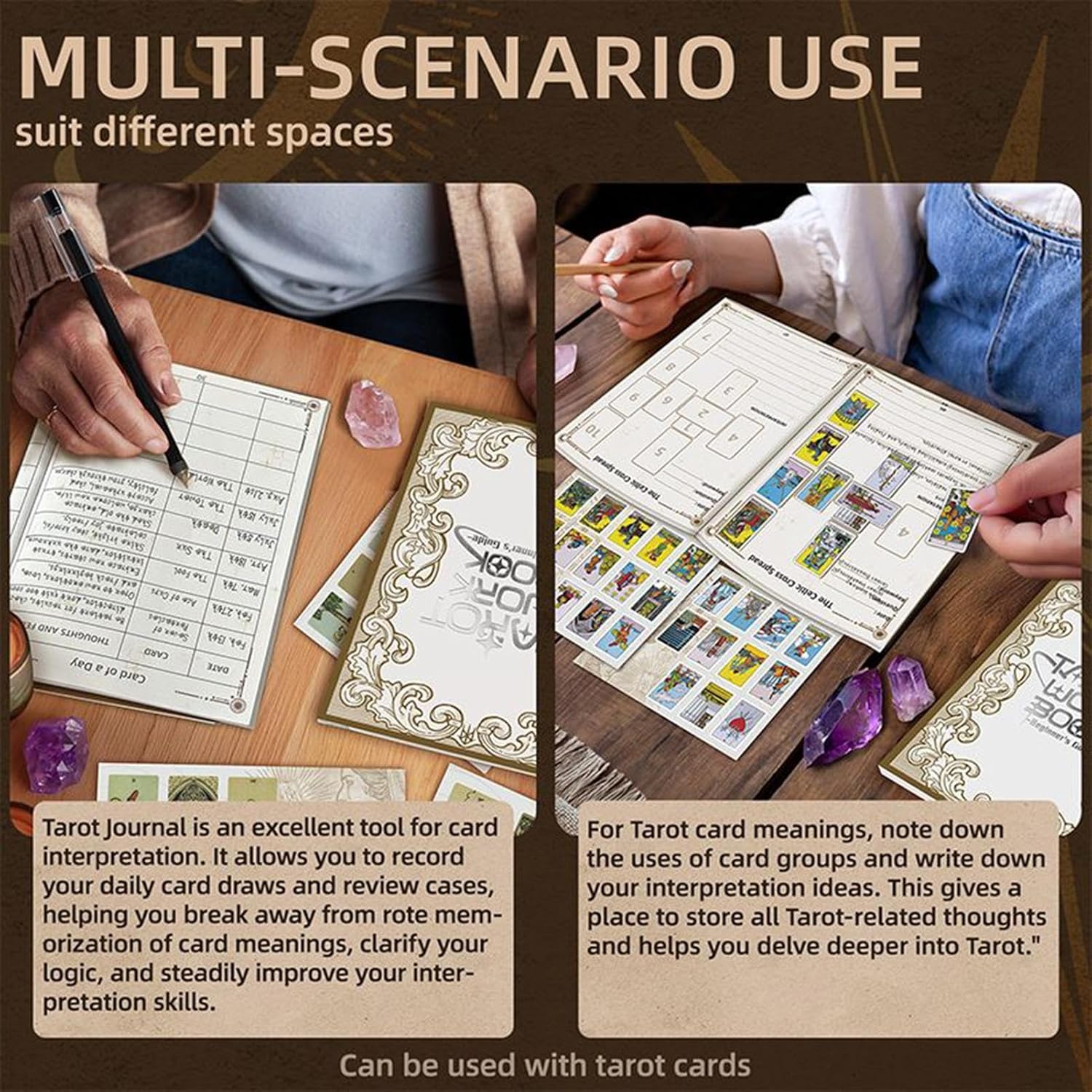 Strumenti per Tarocchi Integrati: Modernizza le letture quotidiane con layout guidati e moi incorporati, progettati per mantenere la coerenza rituale e favorire un'osservazione accurata 'energia spirituale nel Padronanza Bilingue: Tecniche di memorizzazione rinforzata e strategie cross-linguali assistono la guida bilingue, assicurando progressi costanti nella padronanza linguistica con metodi pratici e coinvolgenti Transizione Intuitivo-Analitica: Pagine con moduli di registrazione distinti supportano l'apprendimento avanzato guidando gli utenti dalle intuizioni iniziali alla comprensione analitica approfondita attraverso un approccio metodico e progressivo Supporto all'Interpretazione Pratico: Caratterizzato dalla compatibilità con il Waite, semplifica l'interpretazione e carte e supporta l'apprendimento strutturato attraverso spazi dedicati per annotazioni, ideali per approfondire la comprensione e l'analisi personale. Legatura Affidabile: La rilegatura cucita garantisce longevità e la copertina resistente all'usura assicura che il diario resti per un utilizzo mobile facile, mantenendo la durata durante viaggi o attività quotidiane, per gli amanti del tarocco all'aperto che cercano funzionalità e convenienza